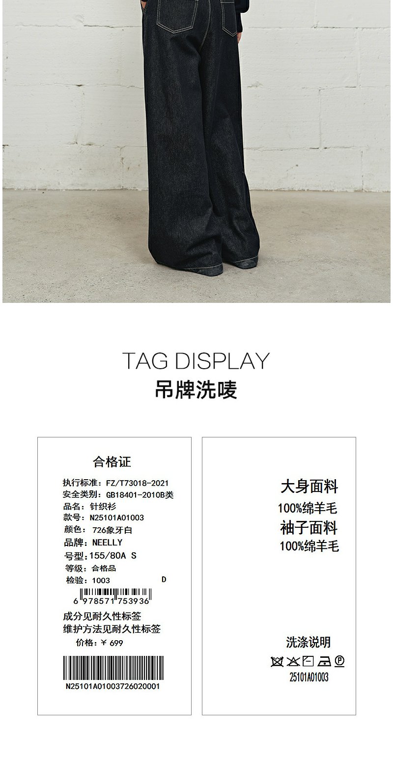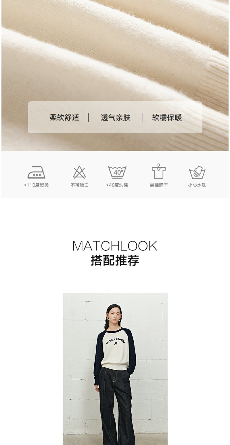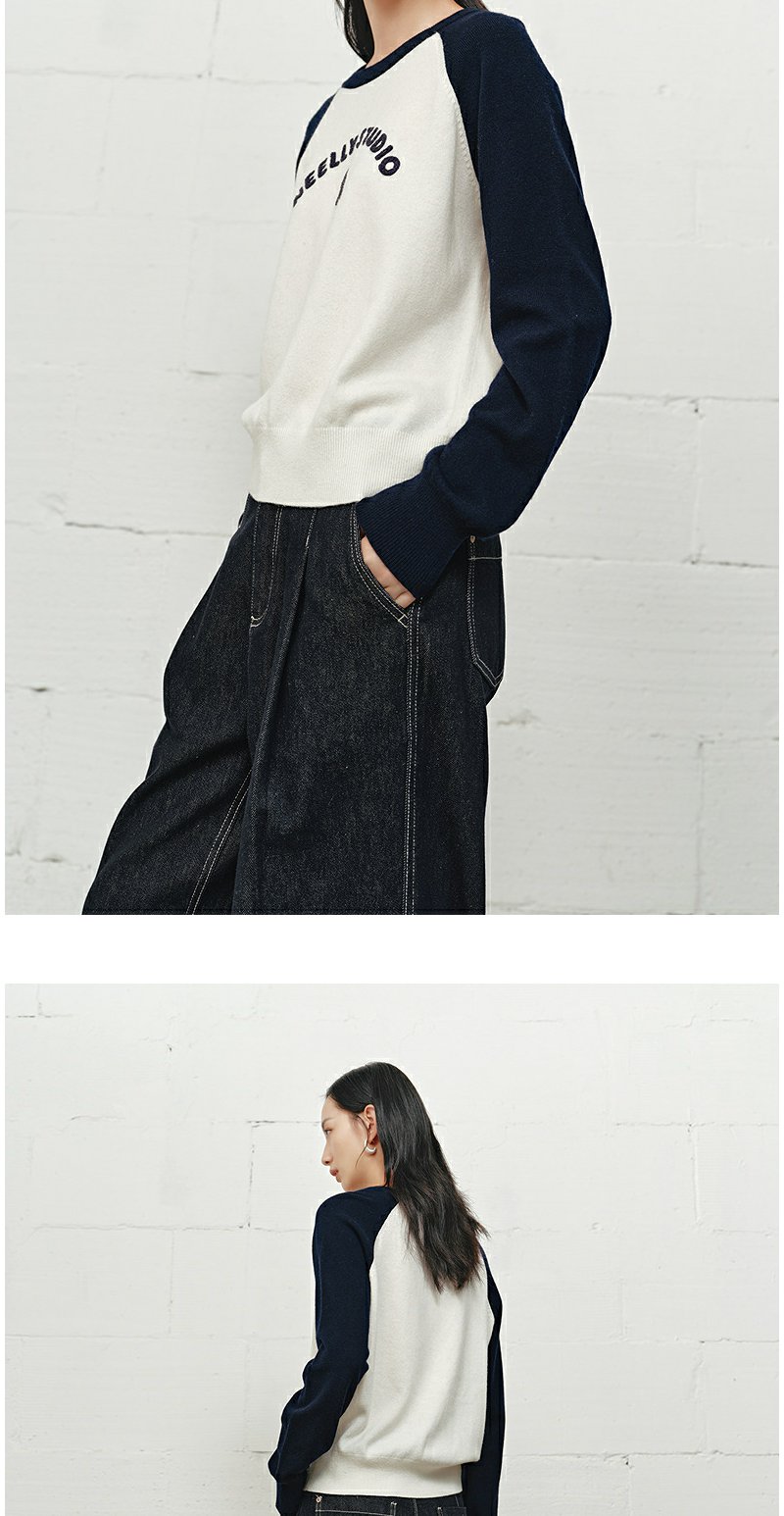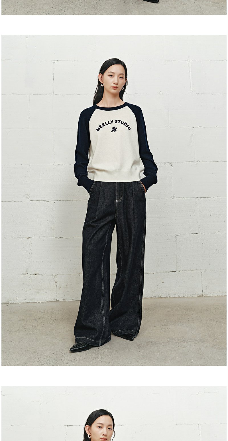 NEELLY纳俪商场同款冬季新款时尚字母插肩袖针织衫女撞色复古上衣N25101A01003