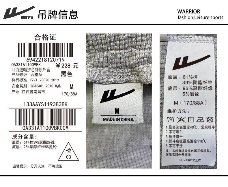 回力连帽夹克男2025秋冬新款潮牌重磅运动服休闲卫衣开衫上衣外套