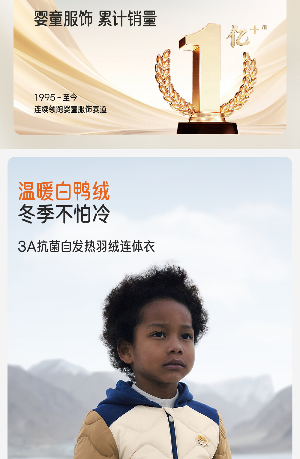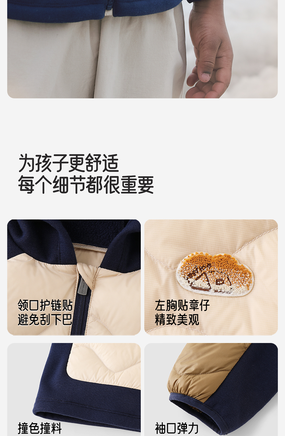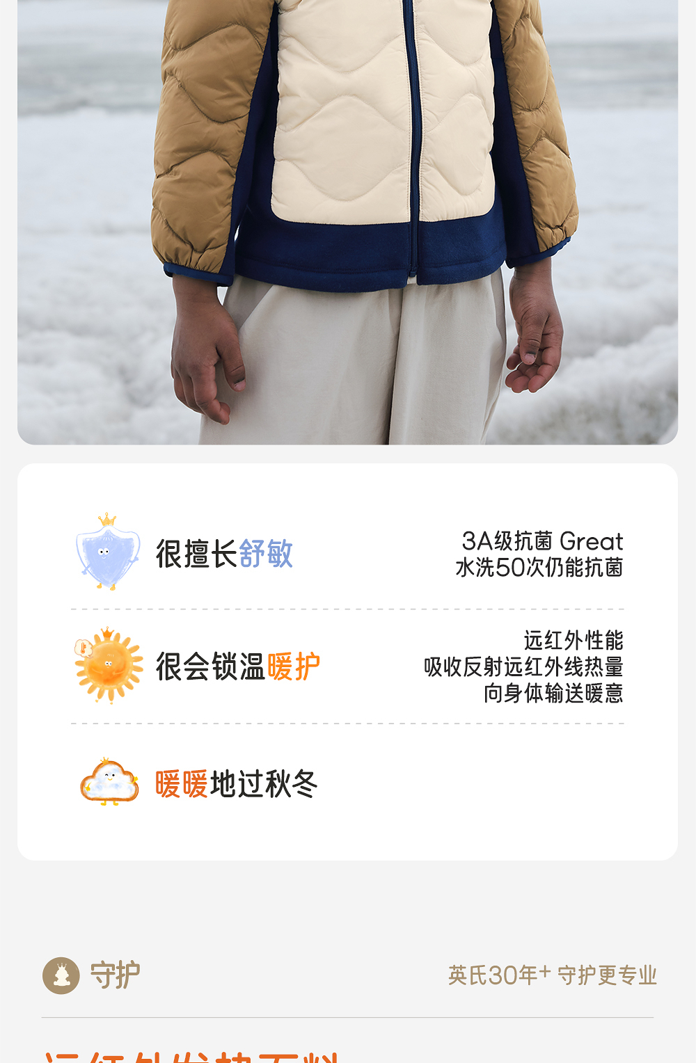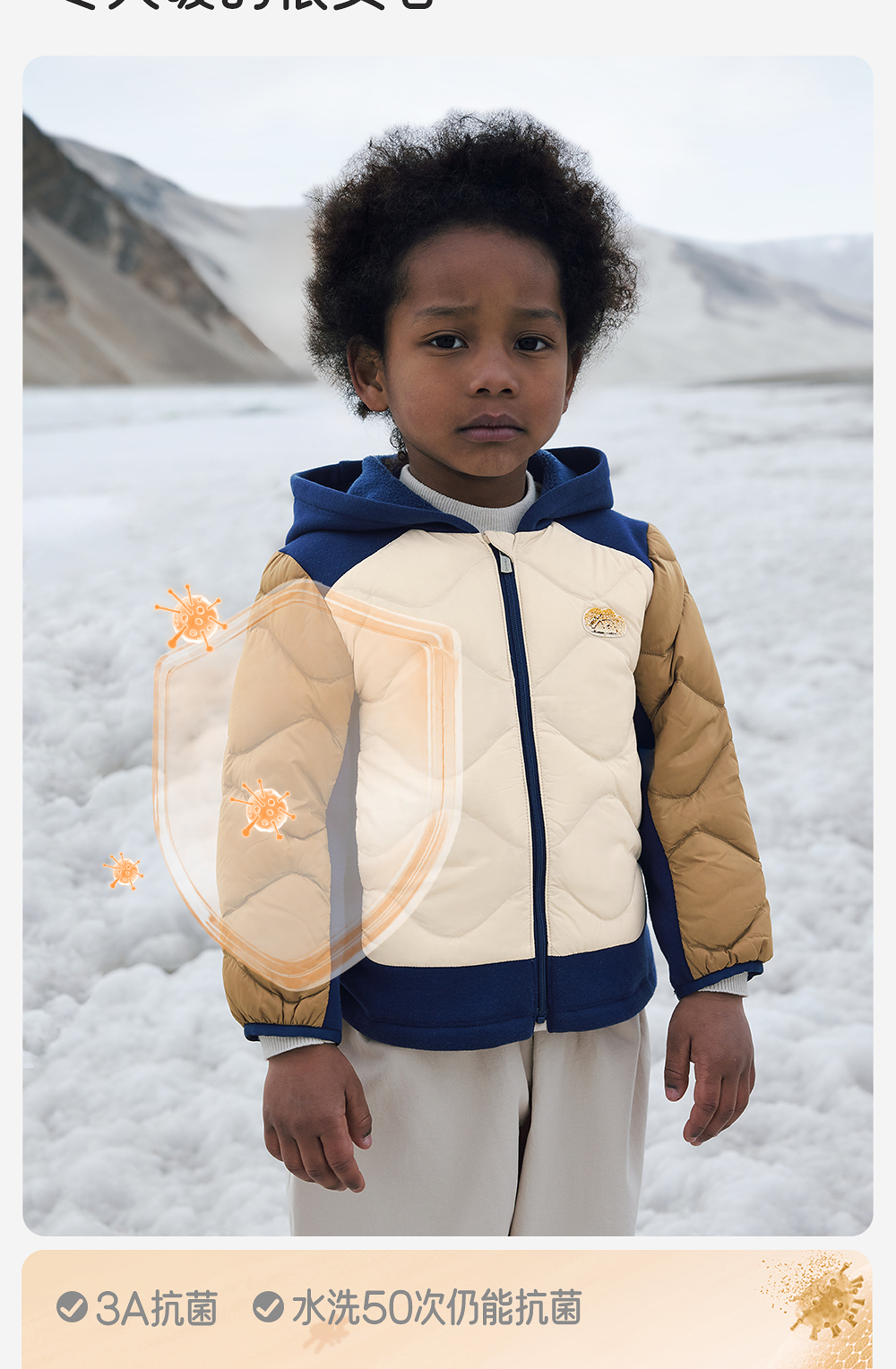 英氏超韧绒儿童羽绒服秋冬保暖抗静电男童连帽外套YRWSJ4R022A
