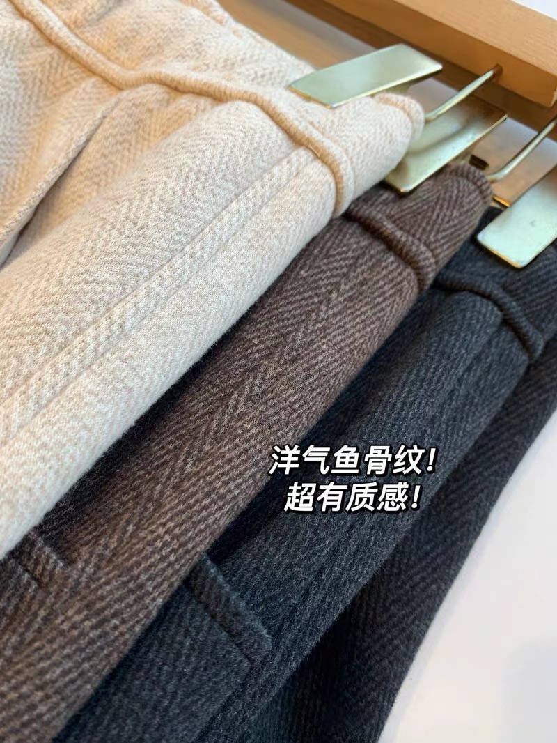 【百图lulu定制】【预售10天发】【鱼骨纹羊毛裤】羊毛 醋酸混纺 有质感 休闲裤