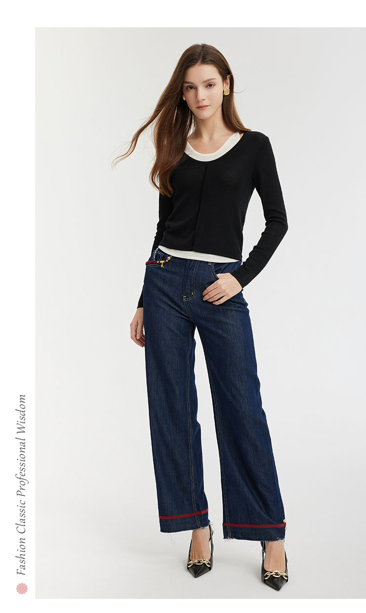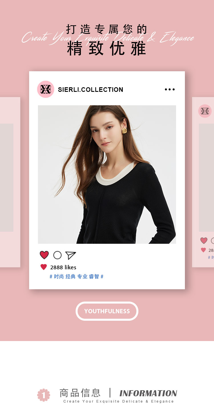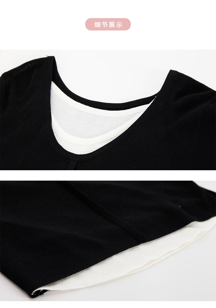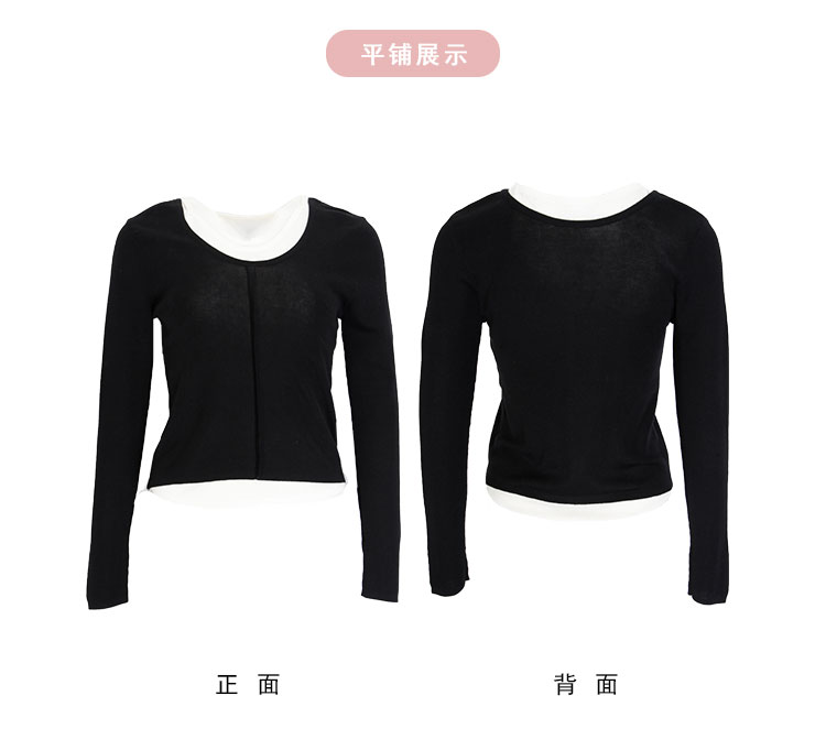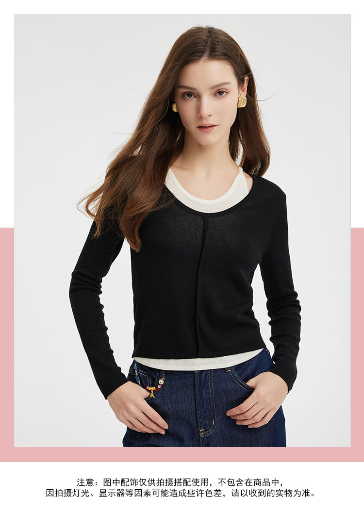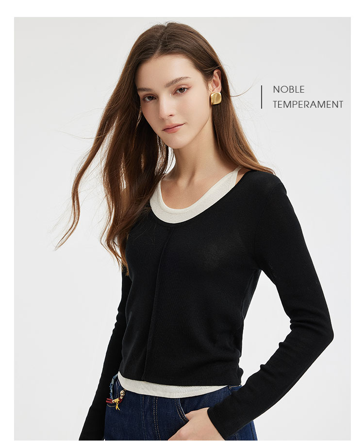 PE636斯尔丽2024新款撞色假两件轻薄显瘦时尚百搭针织上衣