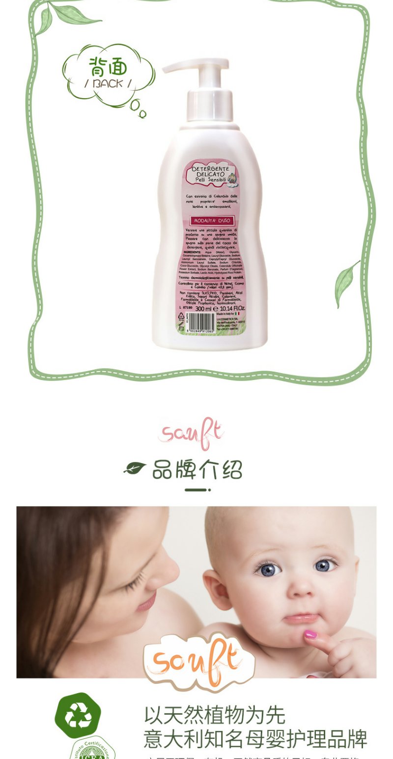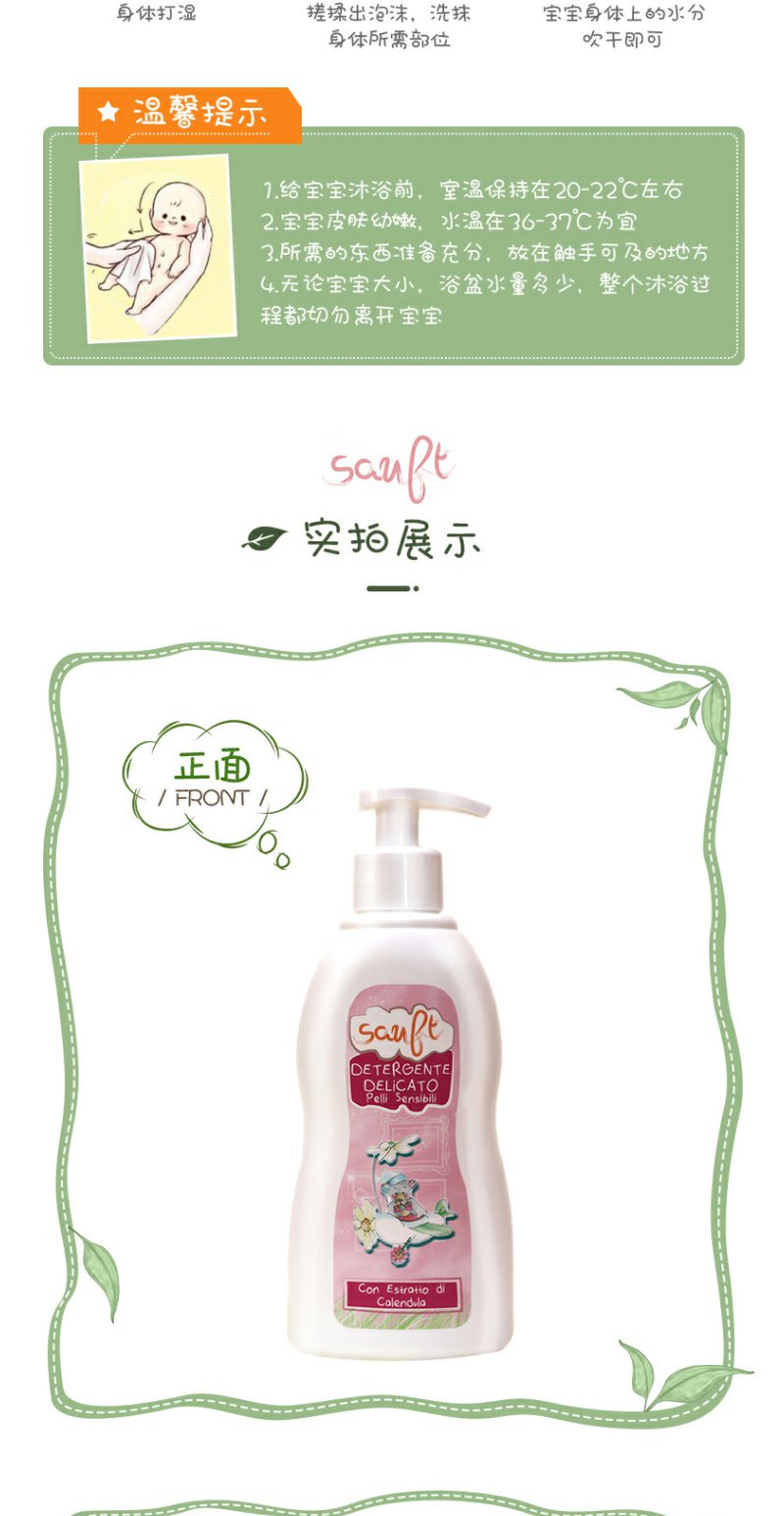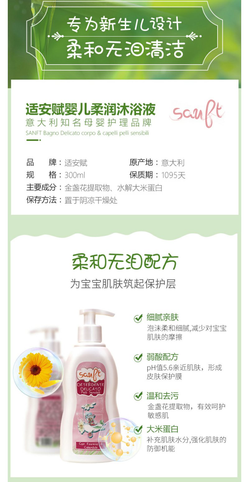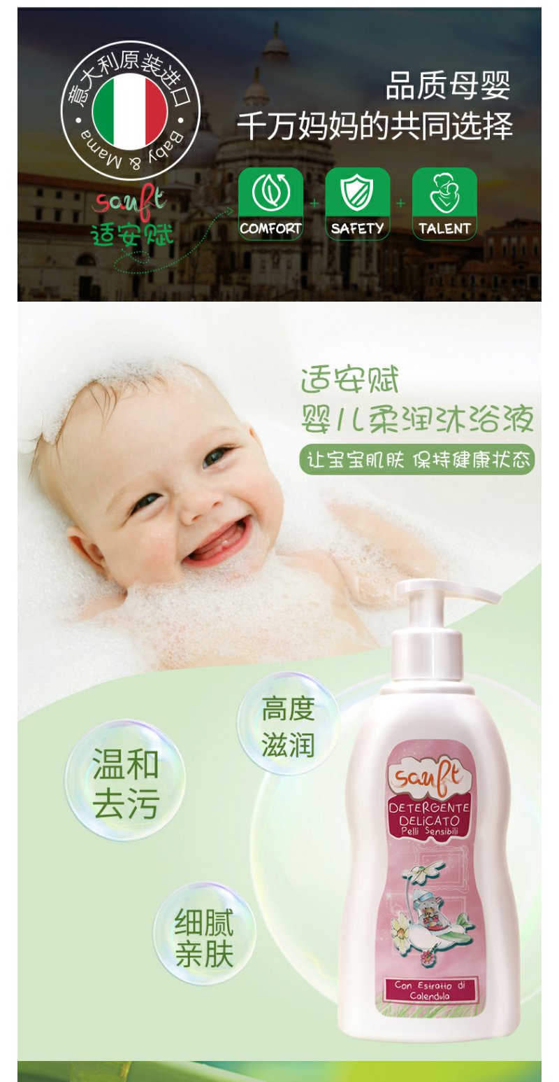 意大利适安赋 婴儿沐浴露新生儿柔润沐浴液300ml宝宝洗澡天然温和