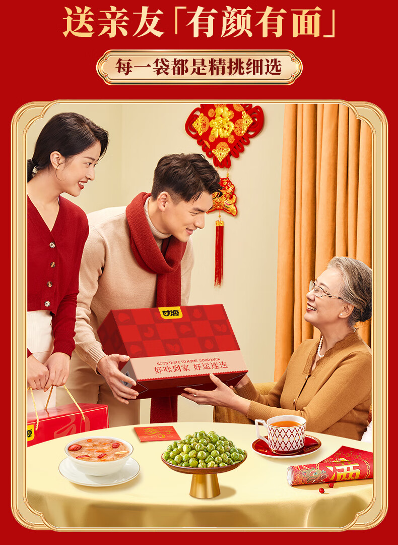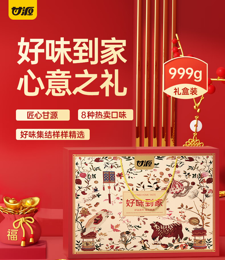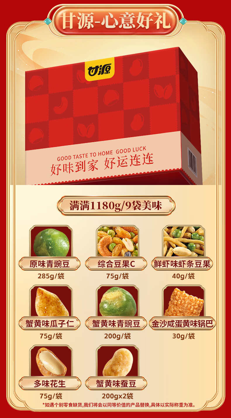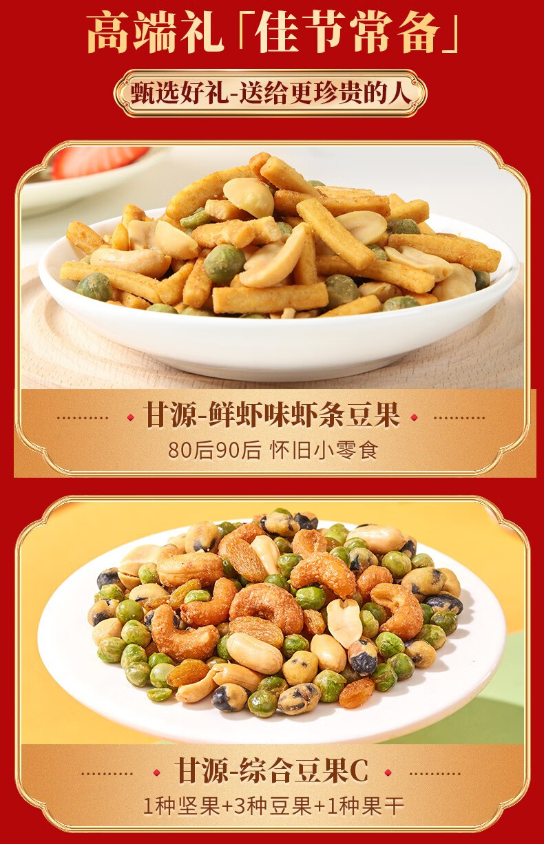 甘源坚果礼盒 零食礼包青豌豆瓜子仁虾条豆果 节日送礼年货团购 927g团圆好味坚果礼