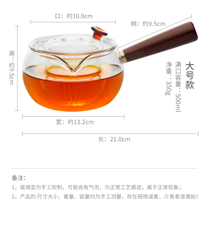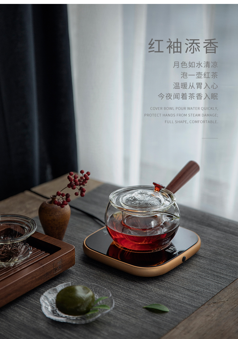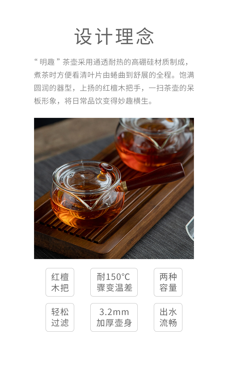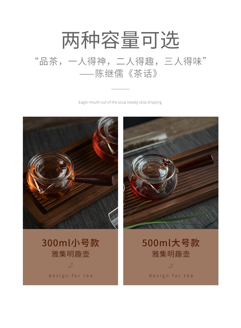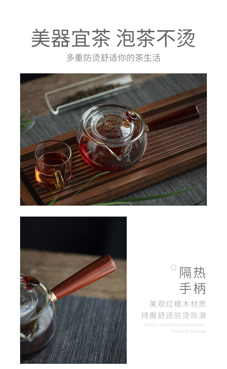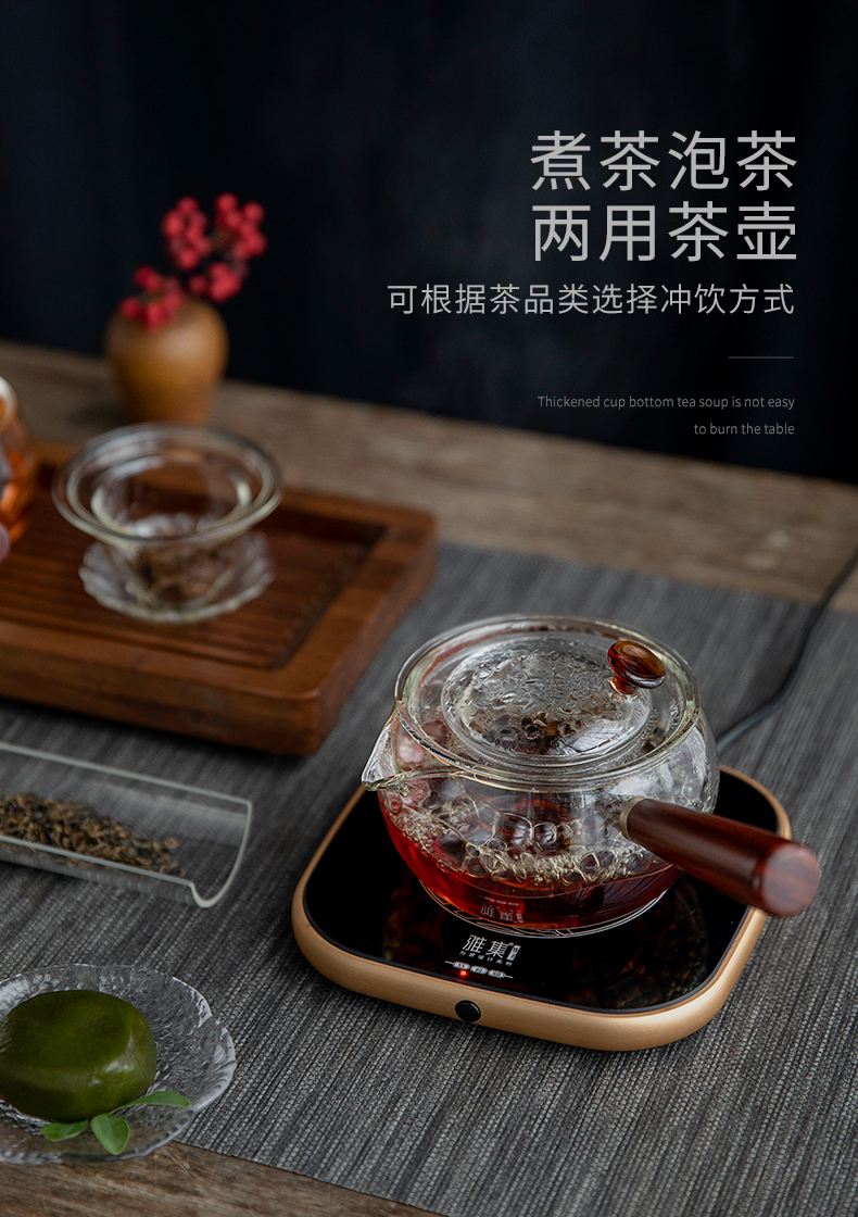 雅集茶具明趣泡茶壶500ml(木柄侧把)