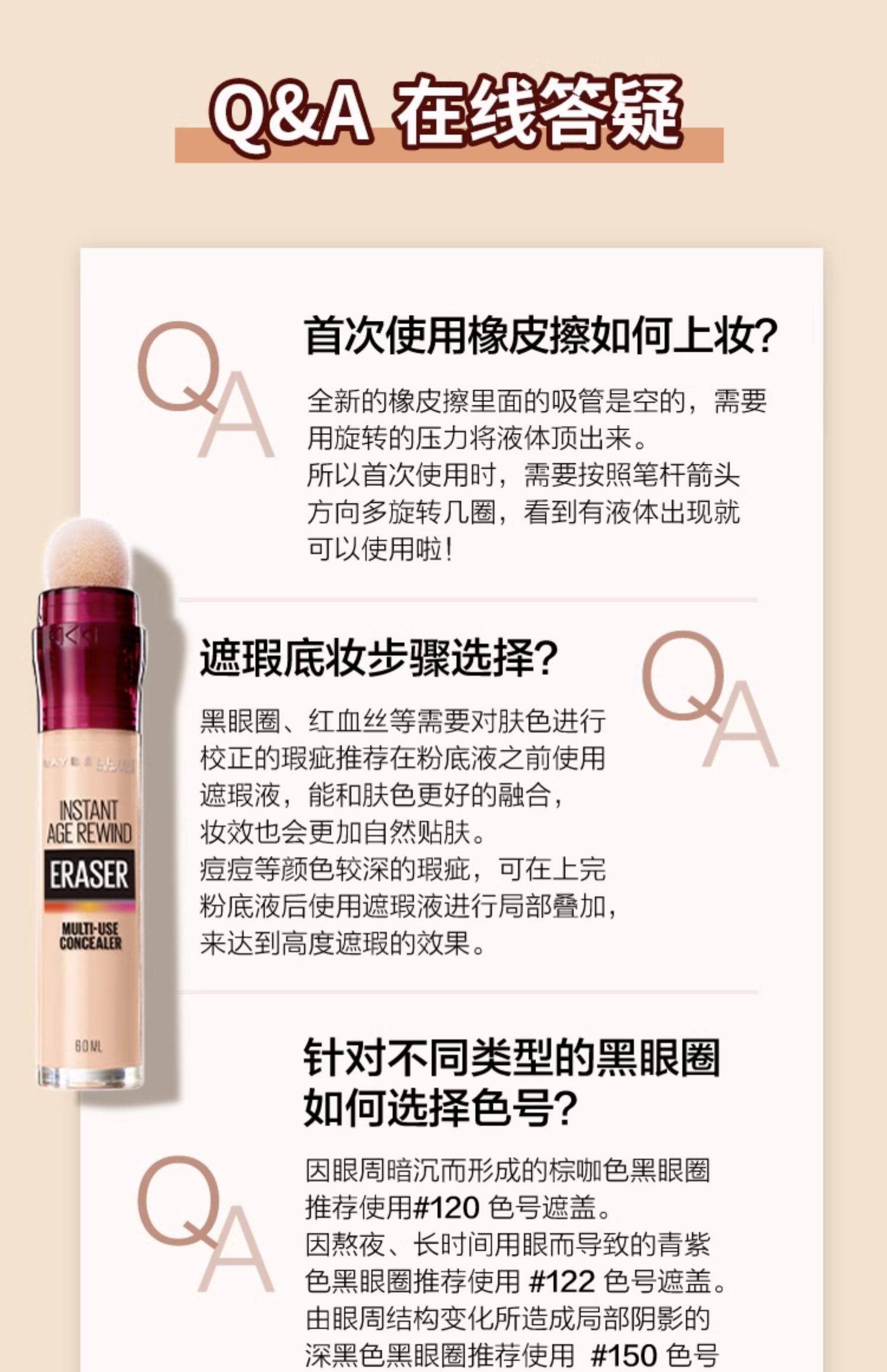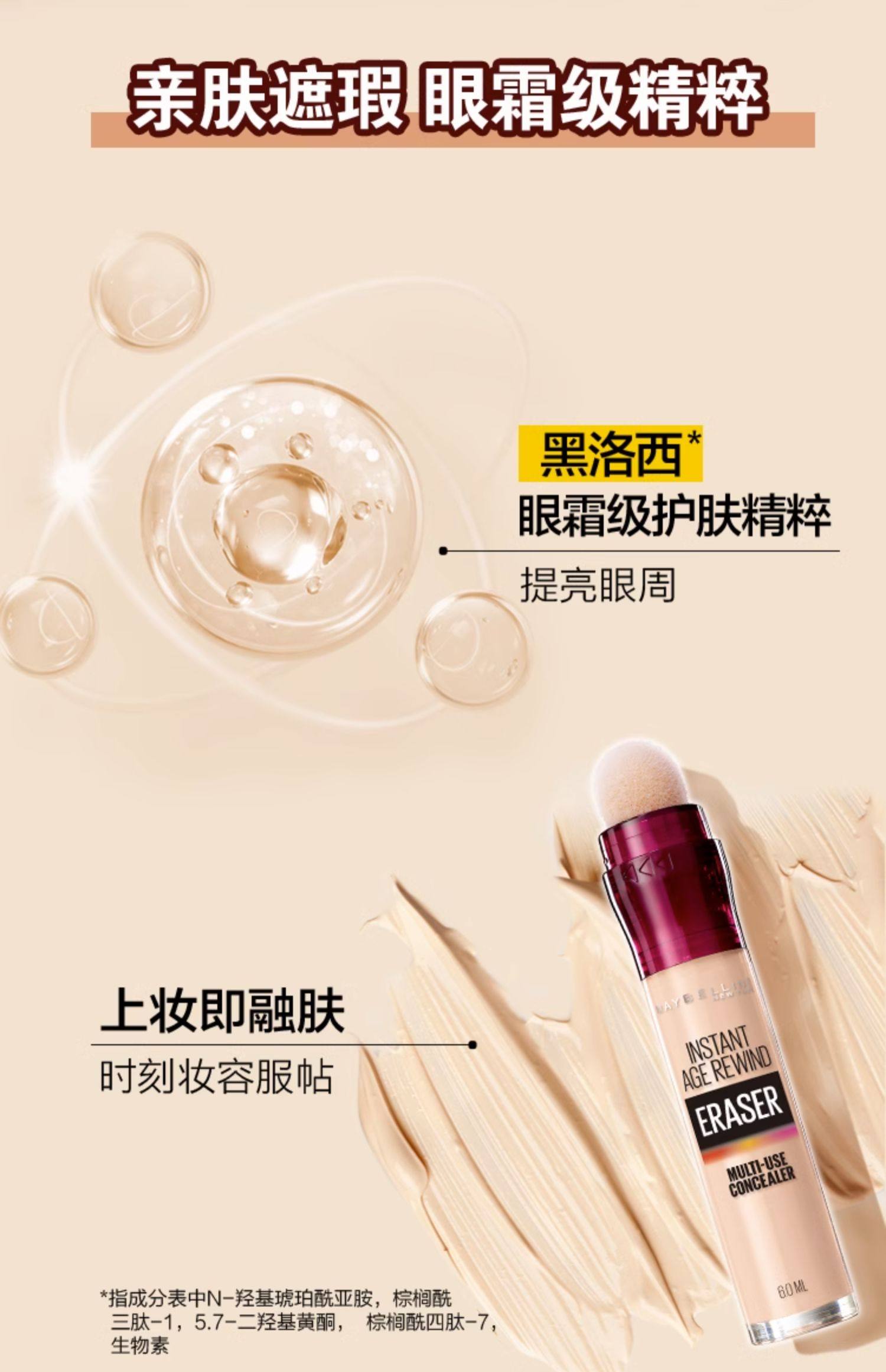 美宝莲纽约橡皮擦遮瑕膏 痘印斑点黑眼圈不卡纹服帖自然持久不脱妆