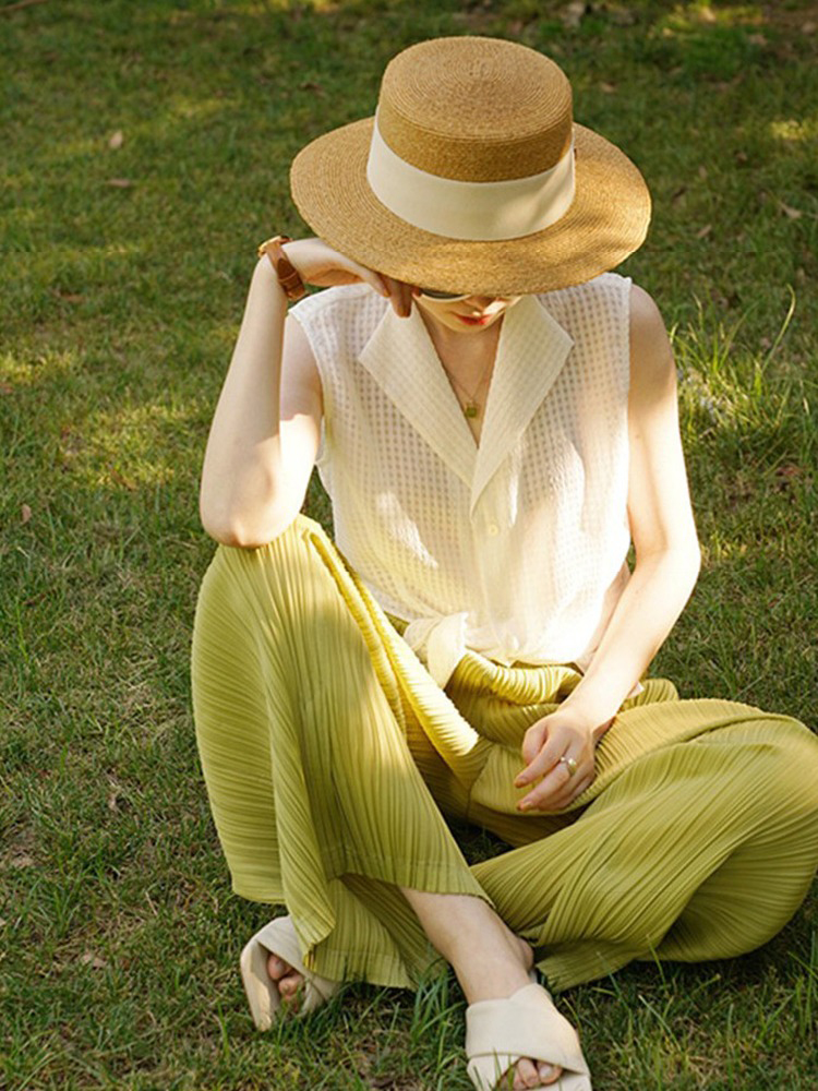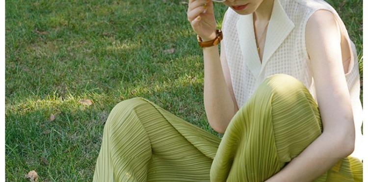 三宅褶皱裤空气裤薄款宽松百褶直筒裤阔腿裤冰丝休闲凉凉裤子女夏