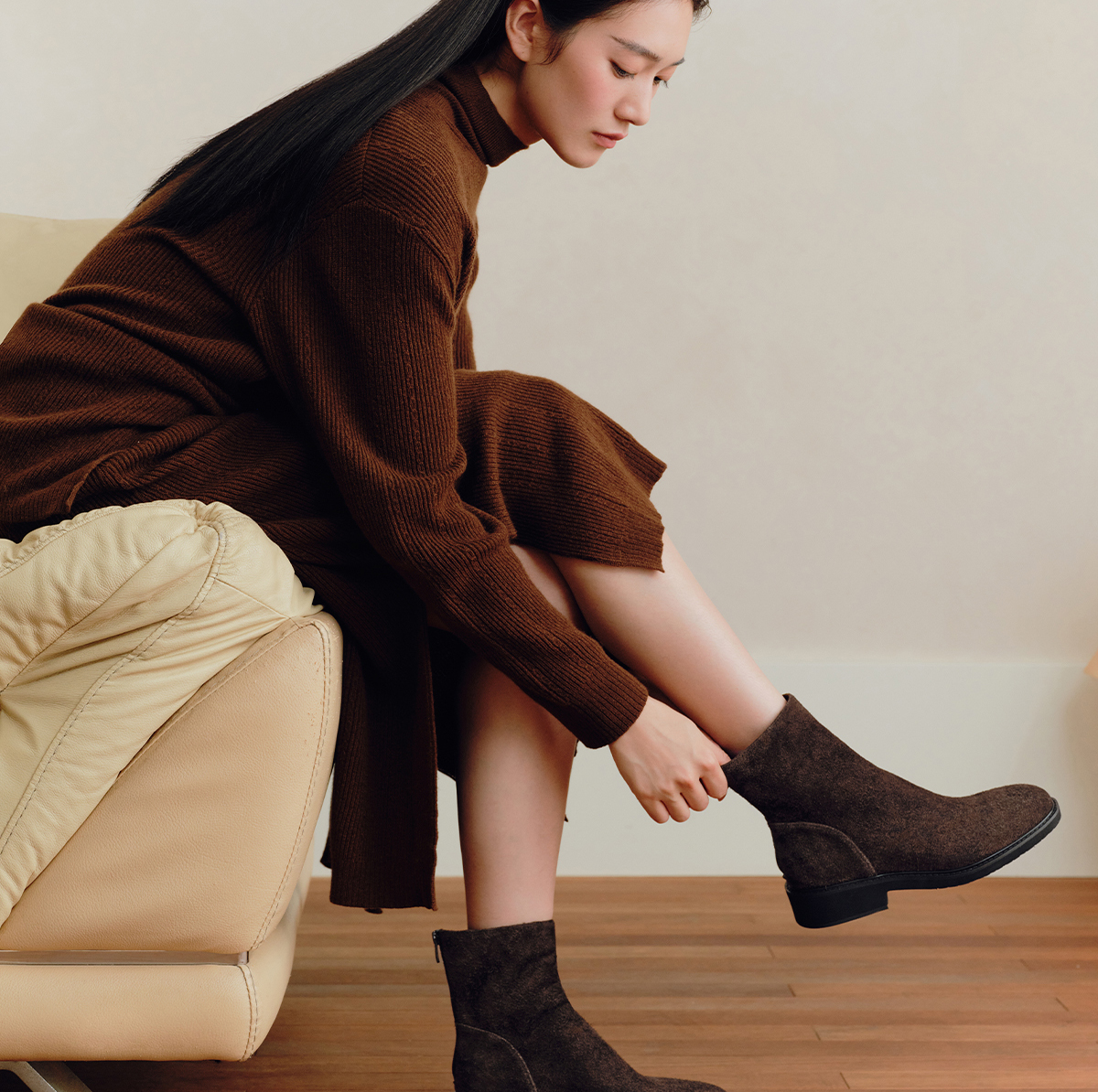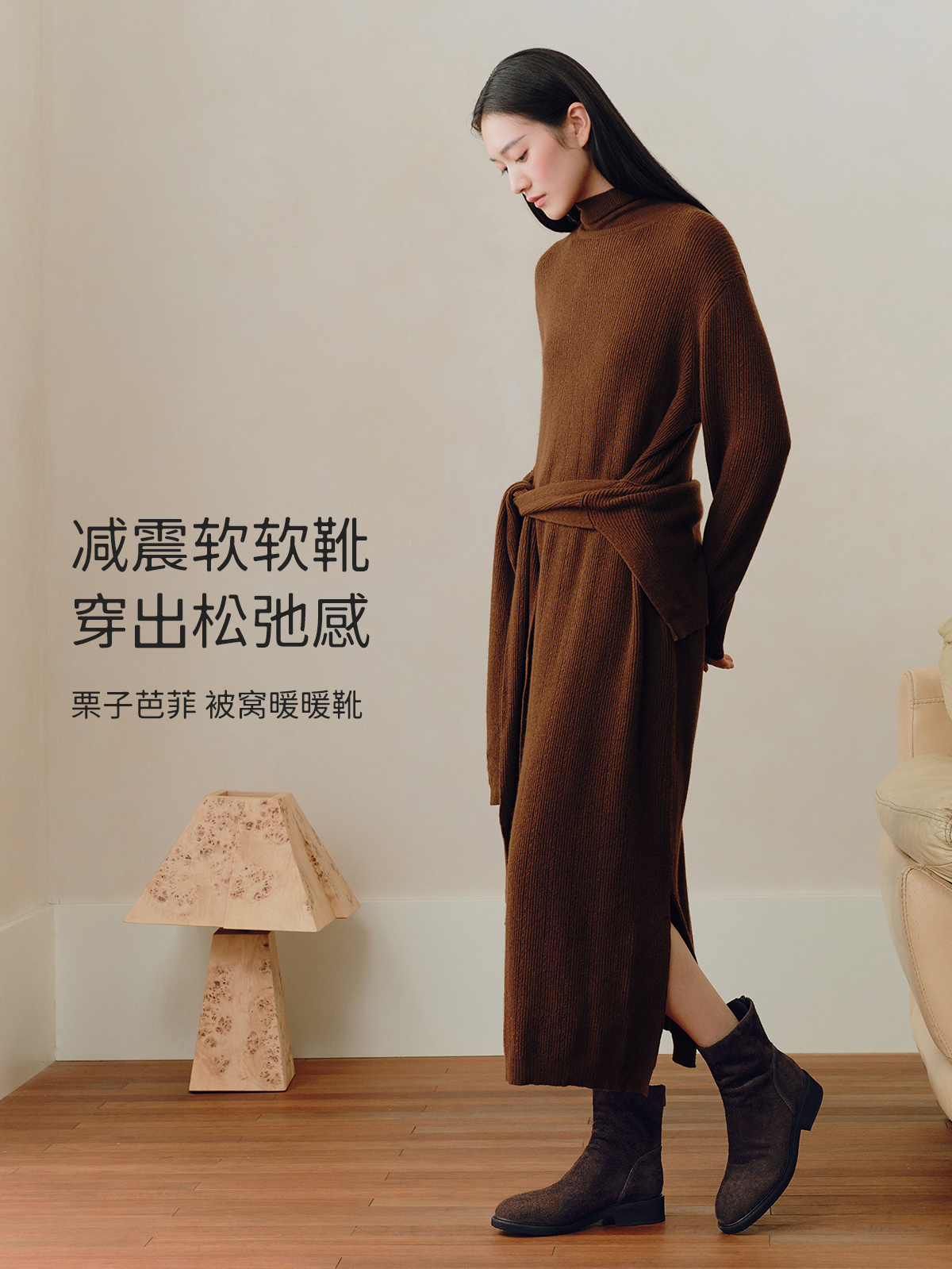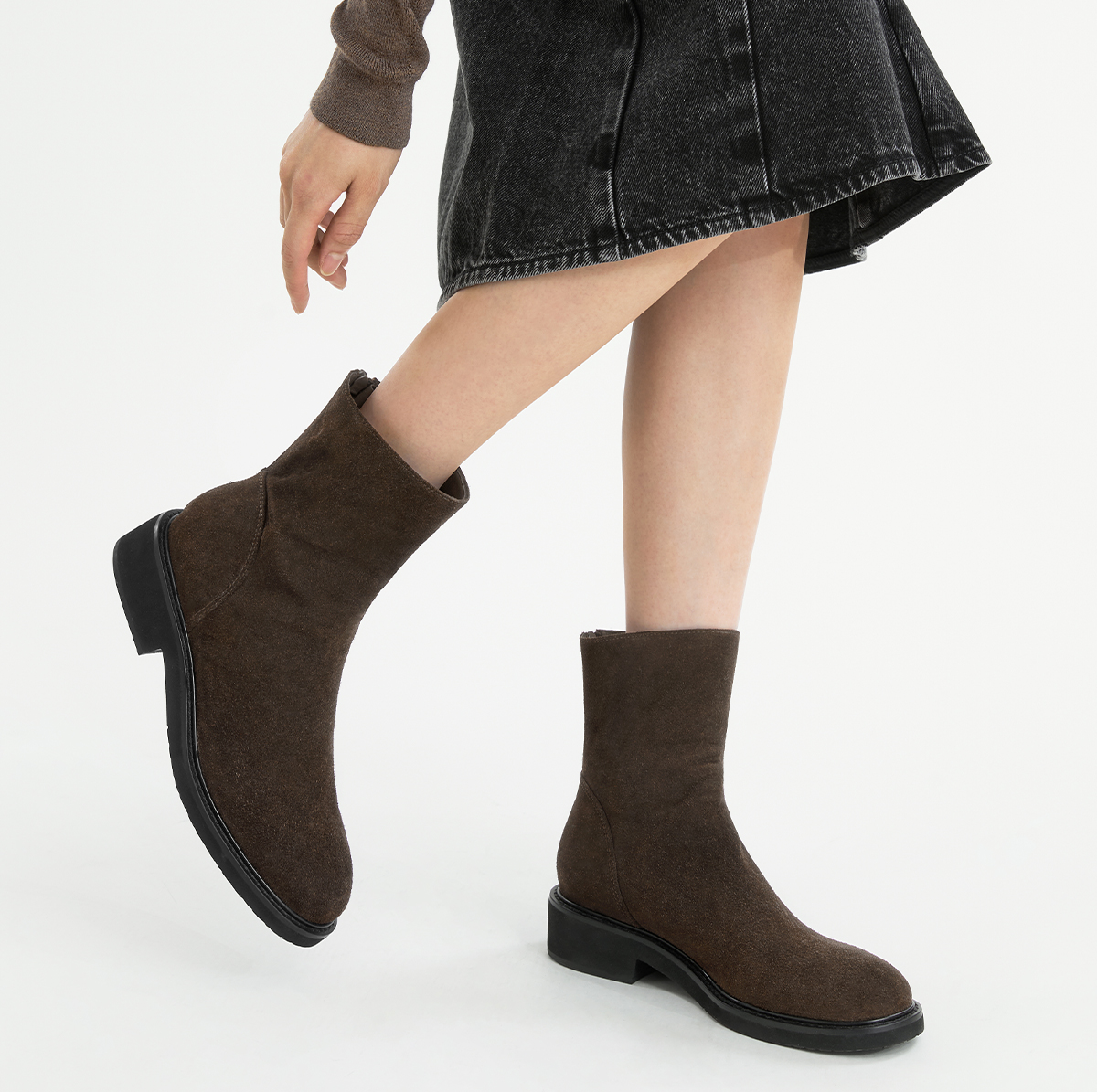 7or9马丁短靴秋冬圆头通勤栗子芭菲(跟高3.5cm)