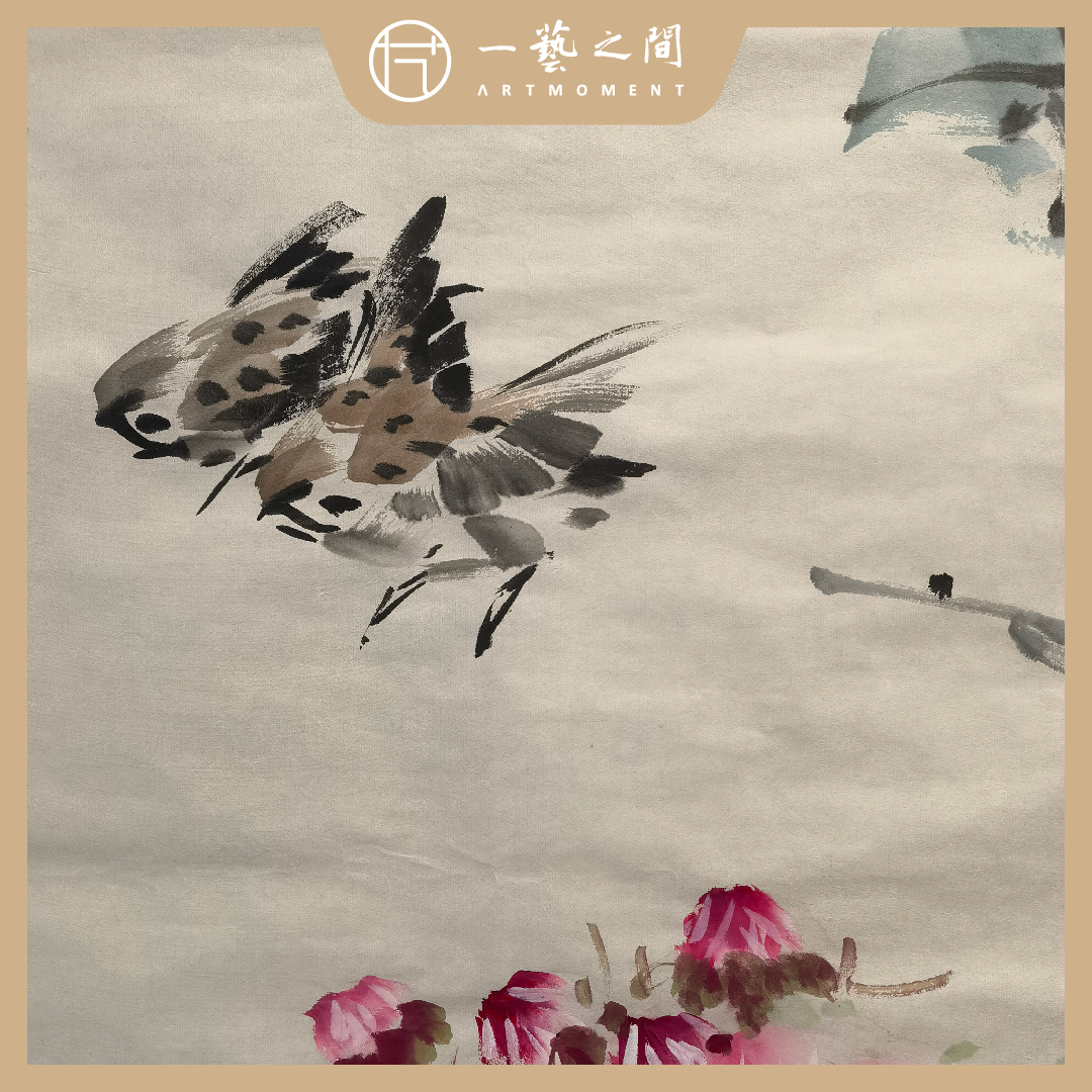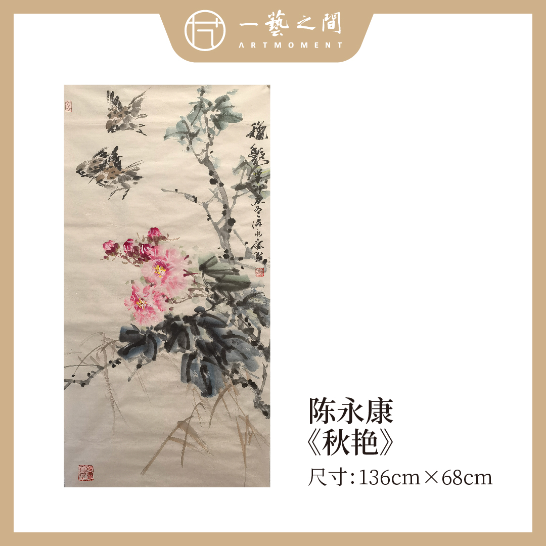 0元起!陈永康《秋艳》136x68CM 八平尺 四尺整纸 竖屏 花鸟国画手绘纸本宣纸作品,仅1张