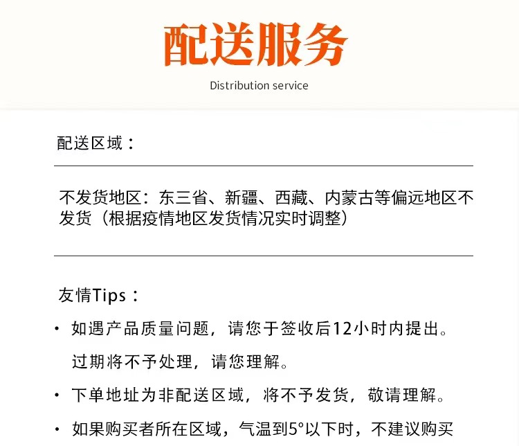 3.如果购买者所在区域,气温到5°以下时,无售后,不建议购买。