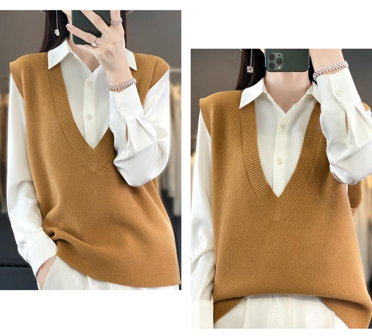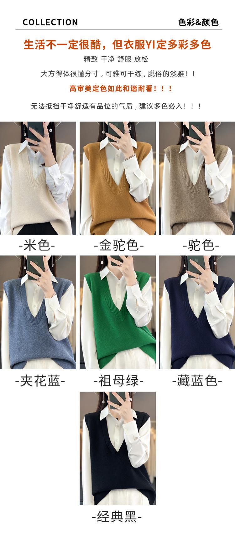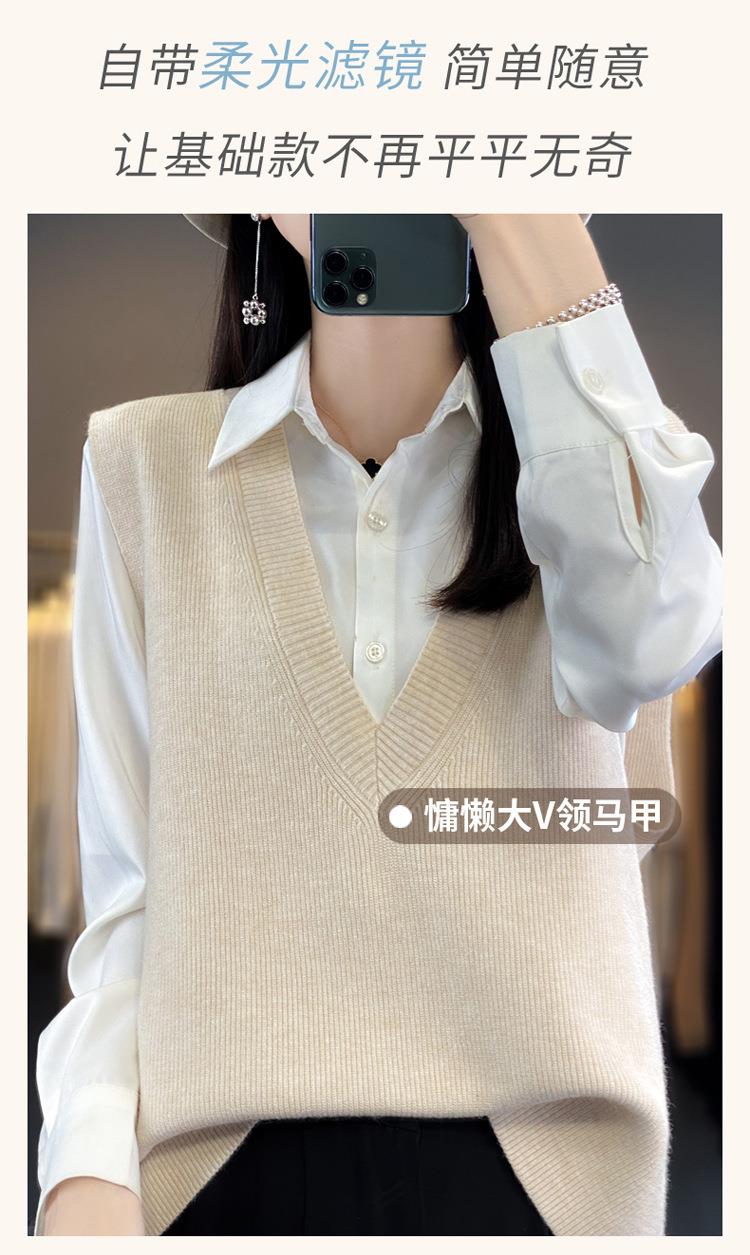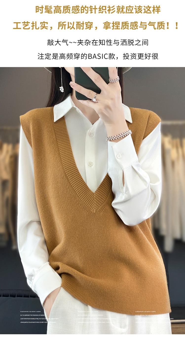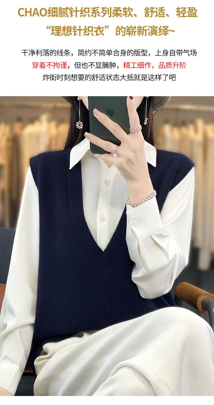 2023秋冬新款韩版女士包芯纱大V字领无袖针织马甲女套头外穿坎肩