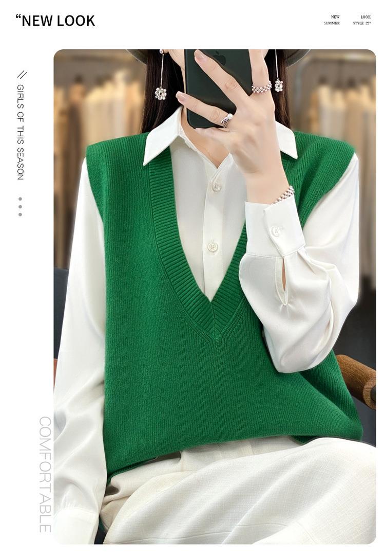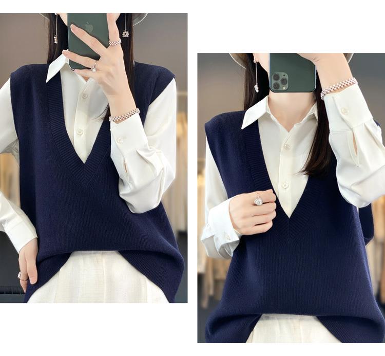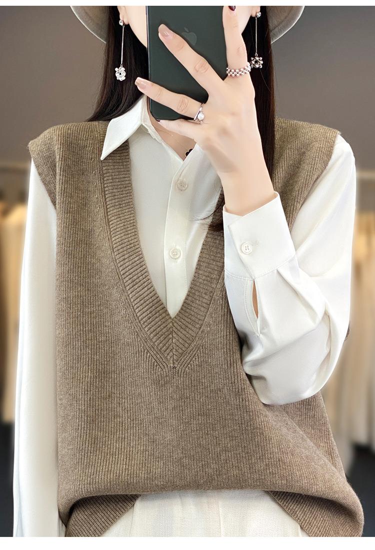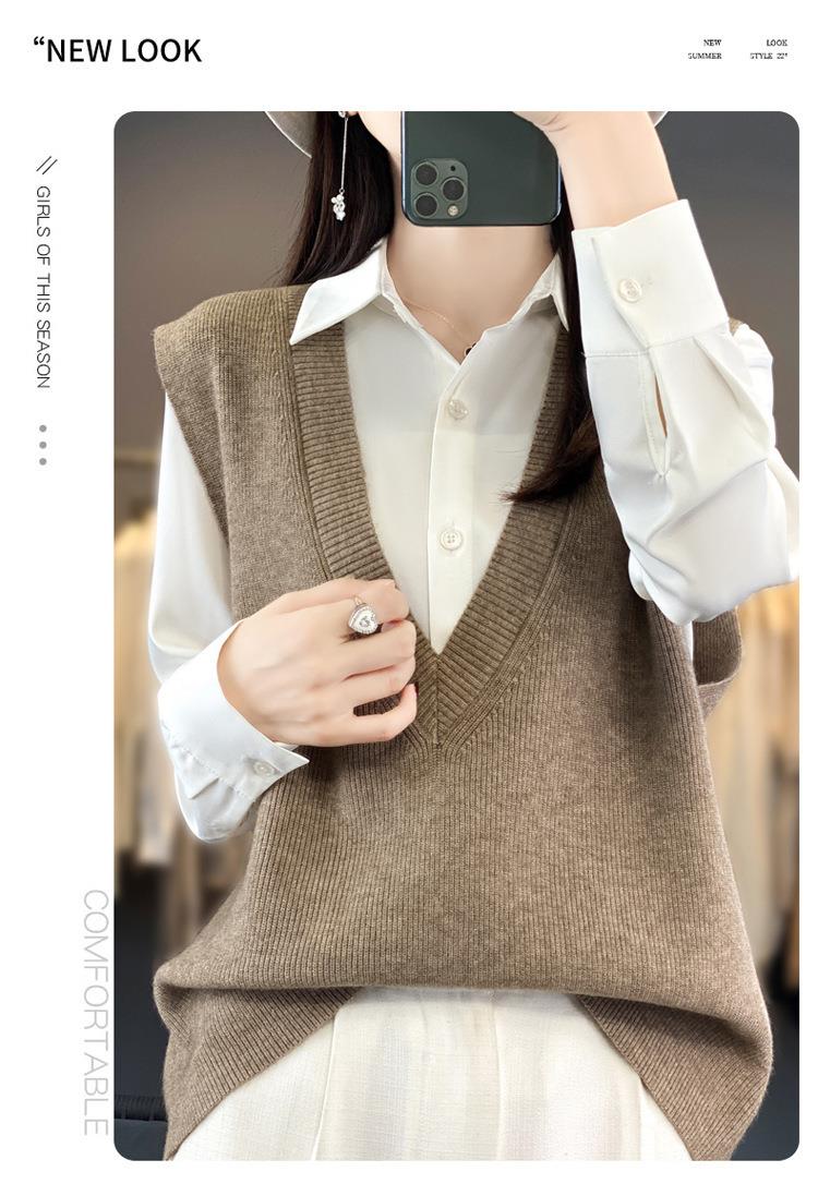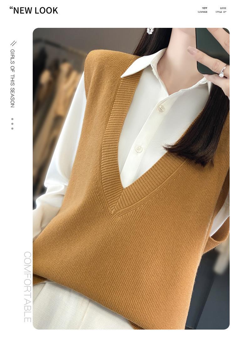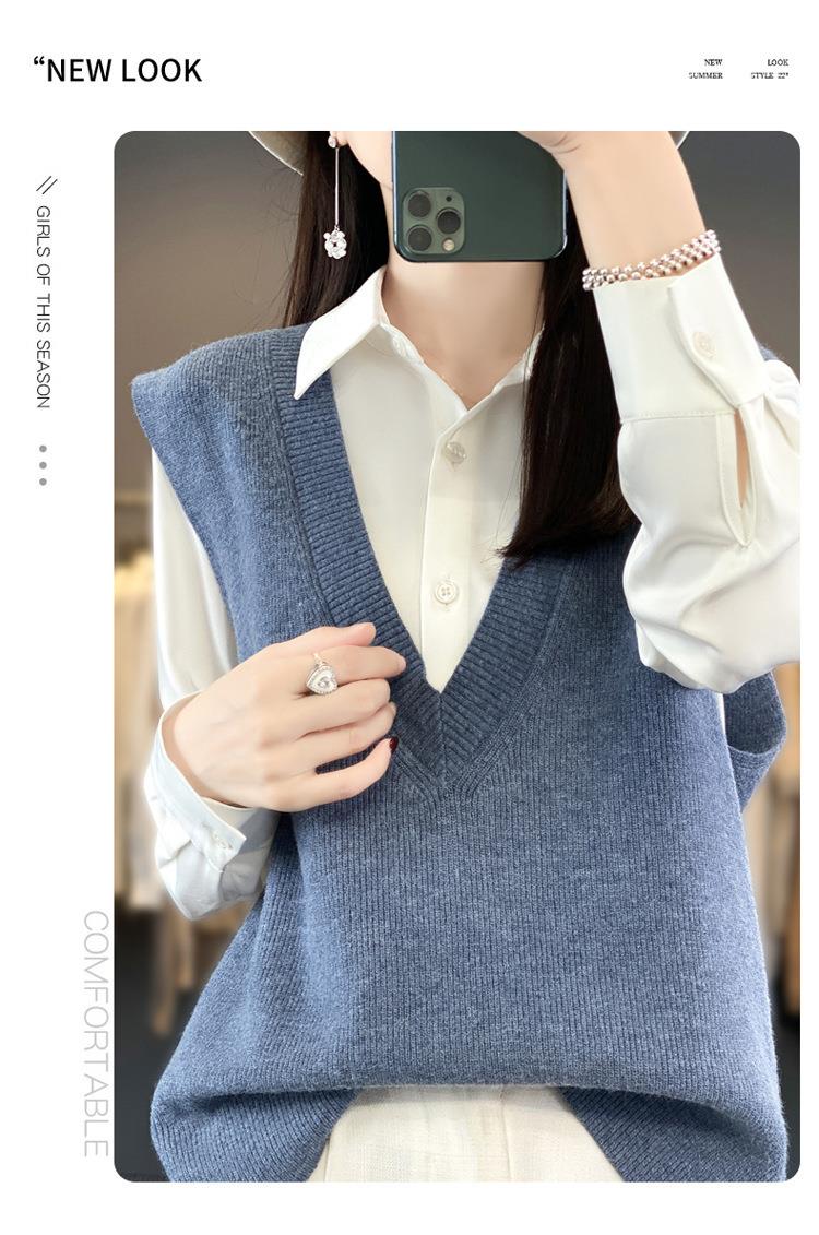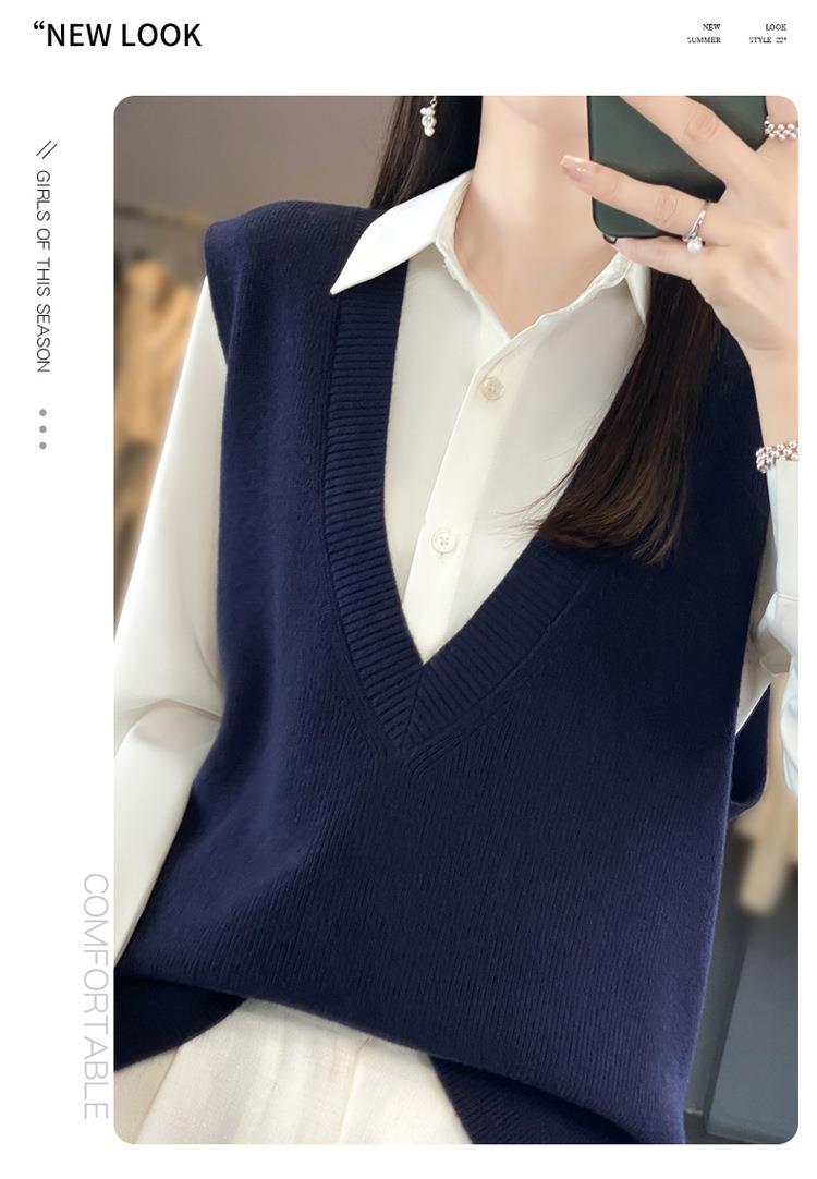 2023秋冬新款韩版女士包芯纱大V字领无袖针织马甲女套头外穿坎肩