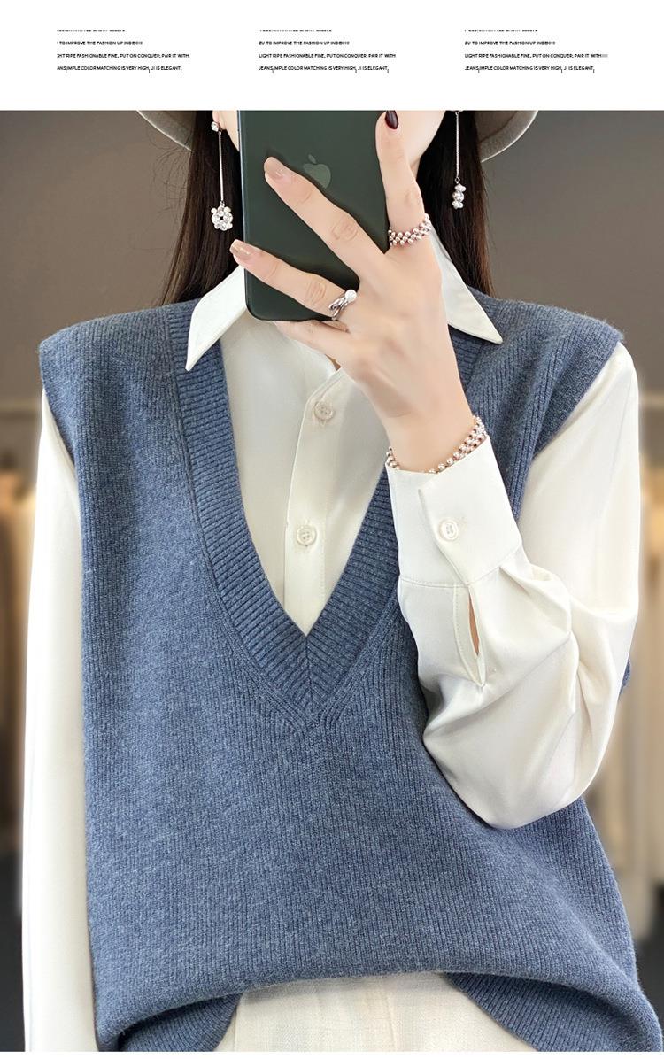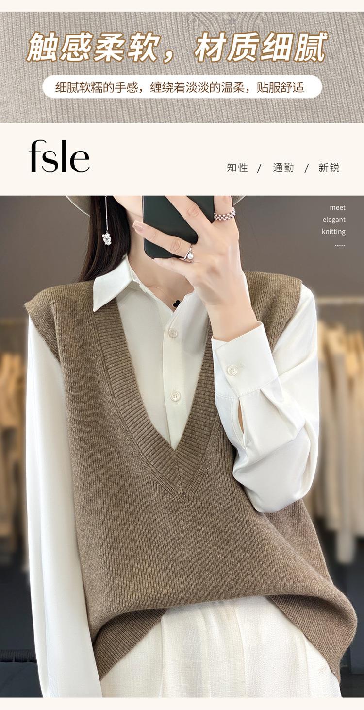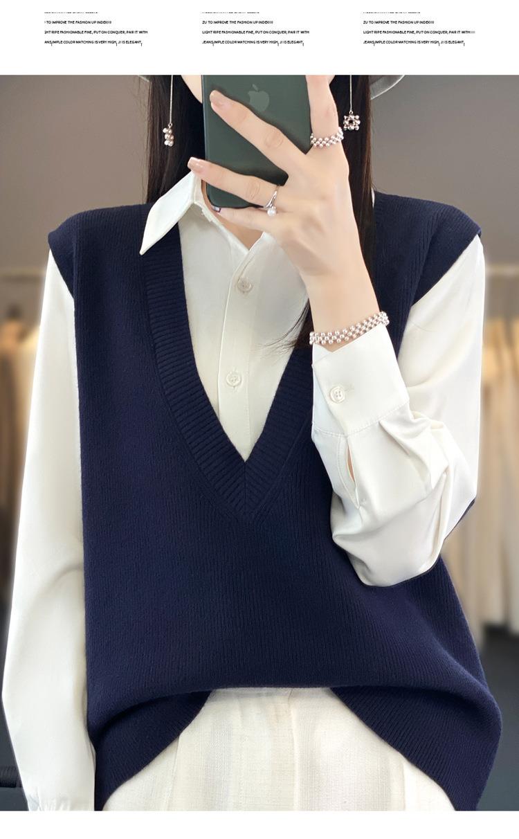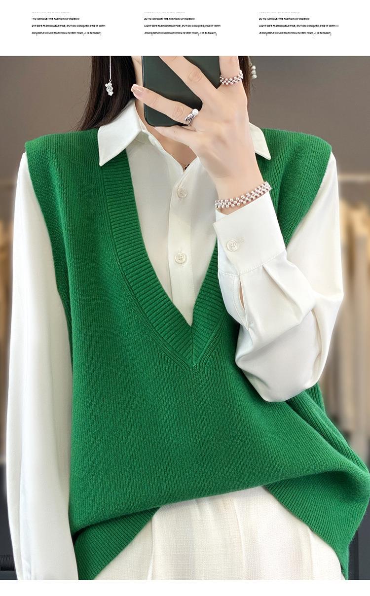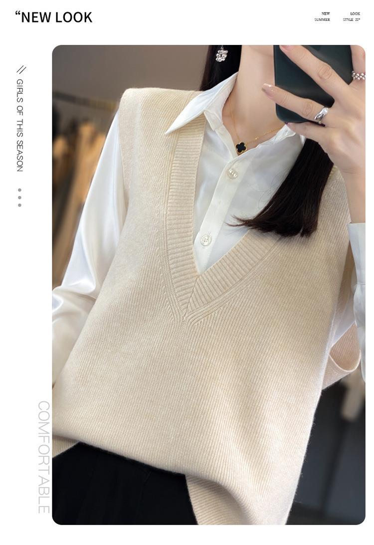 2023秋冬新款韩版女士包芯纱大V字领无袖针织马甲女套头外穿坎肩