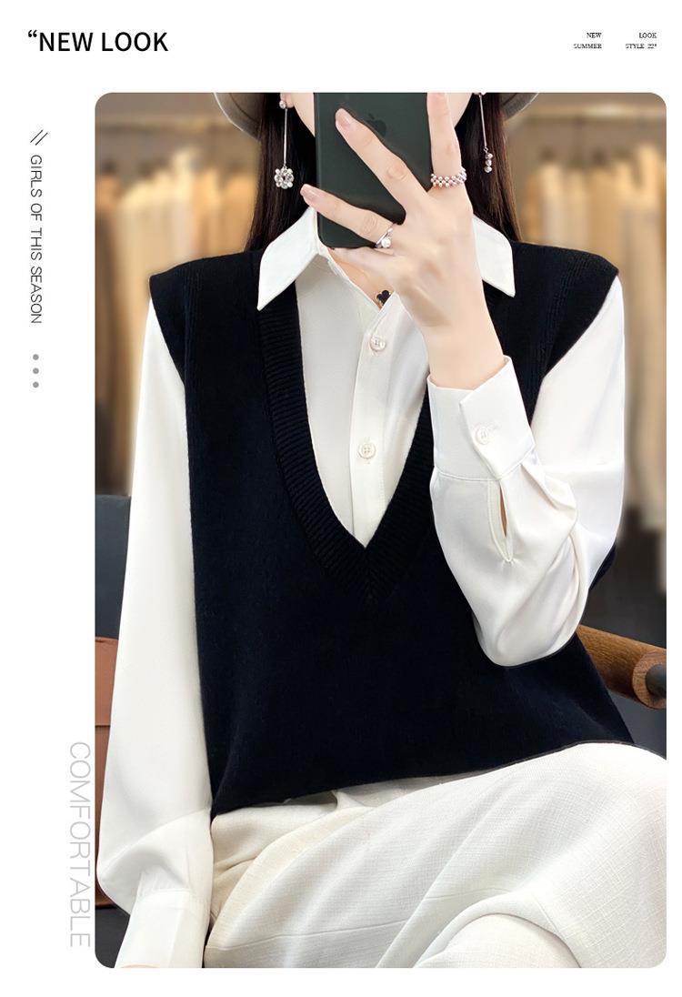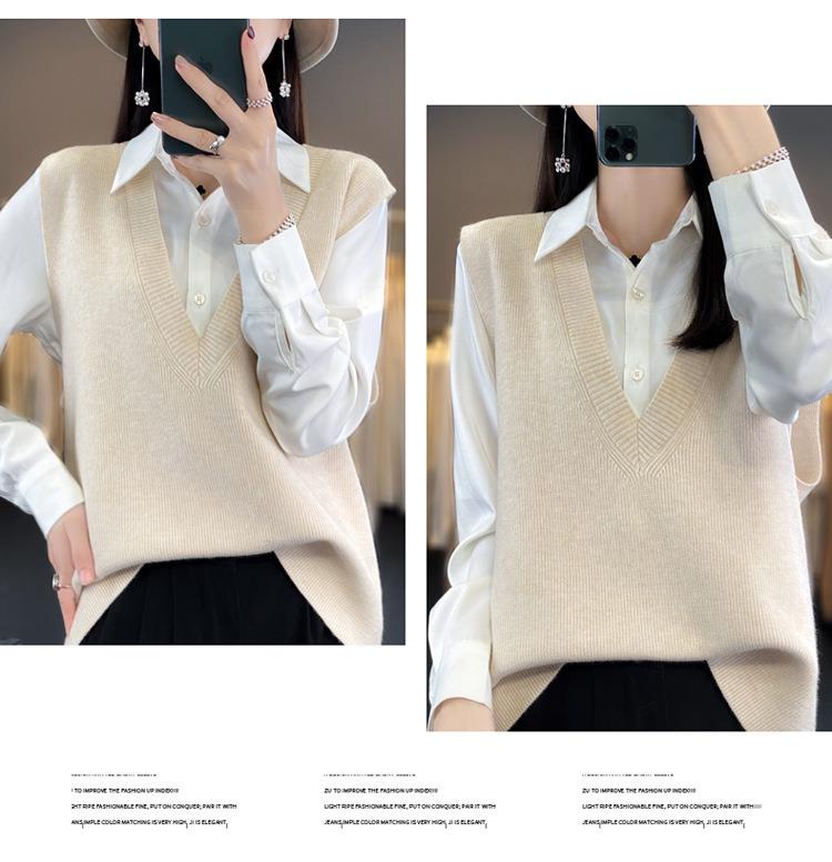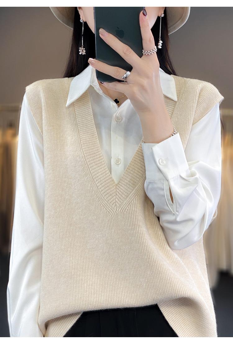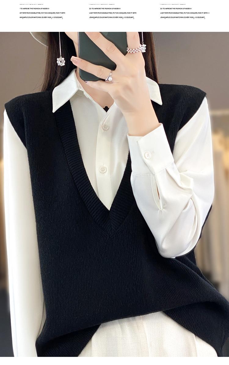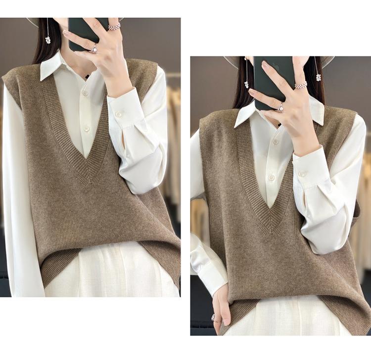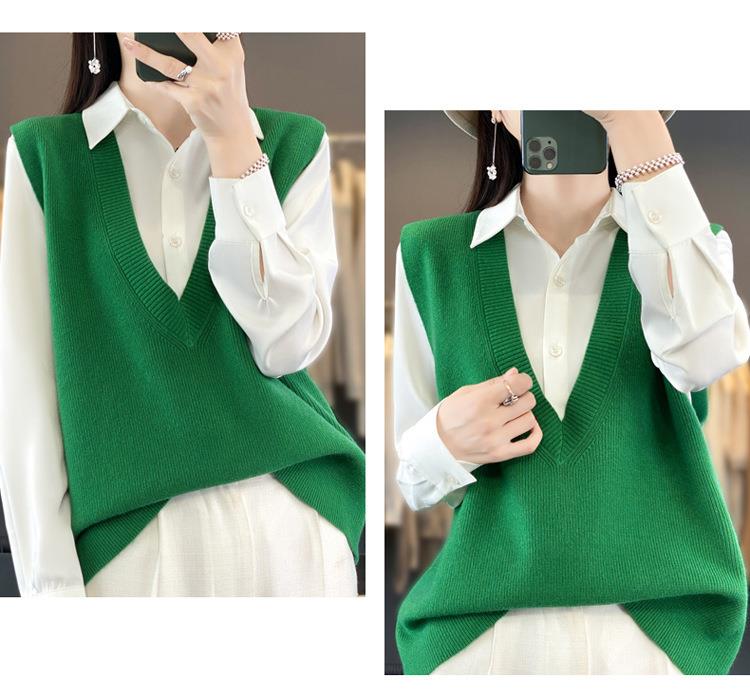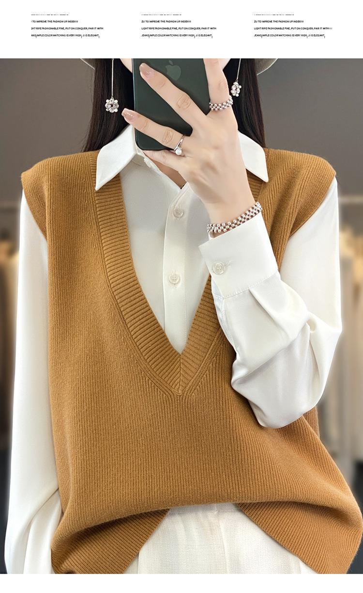 2023秋冬新款韩版女士包芯纱大V字领无袖针织马甲女套头外穿坎肩