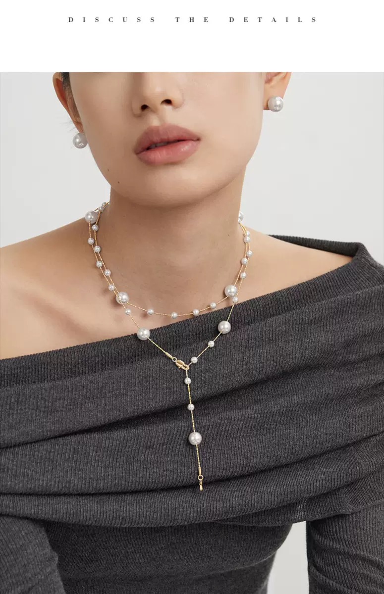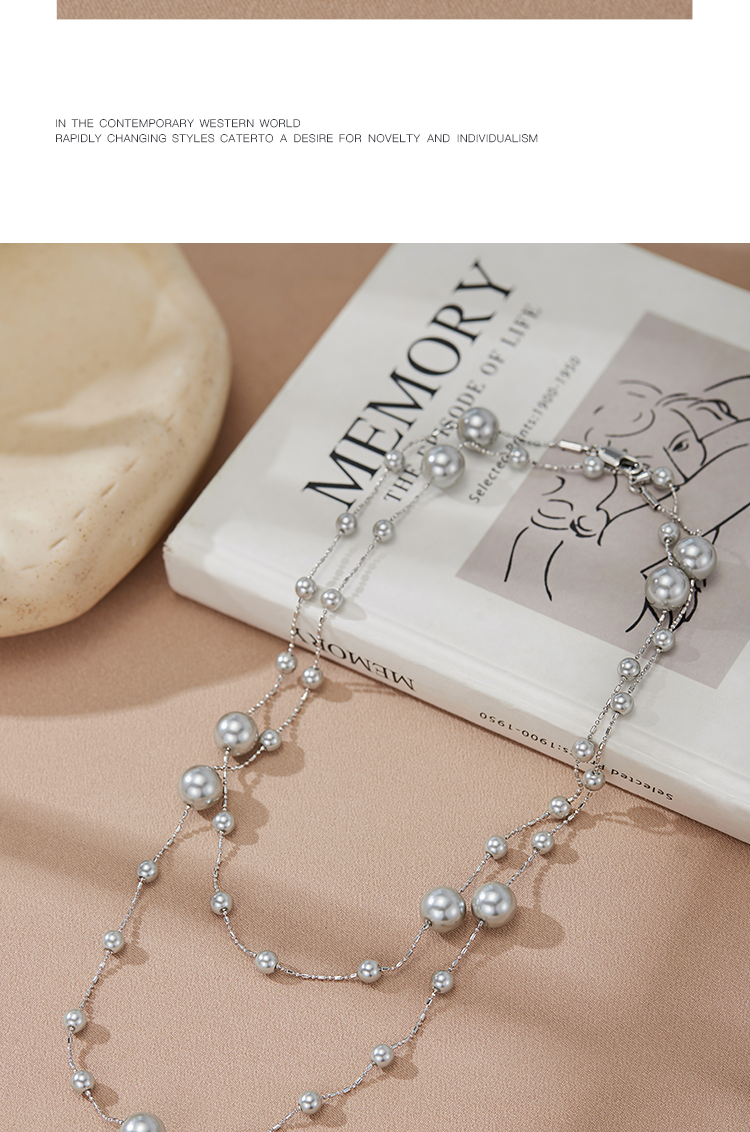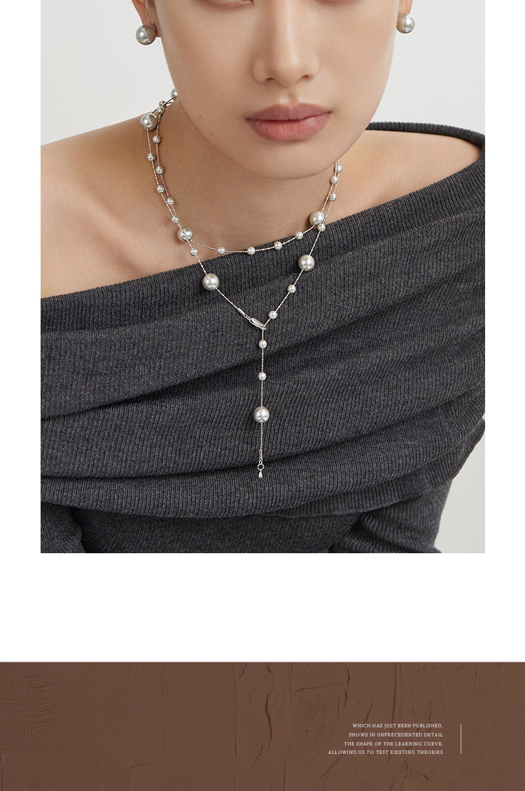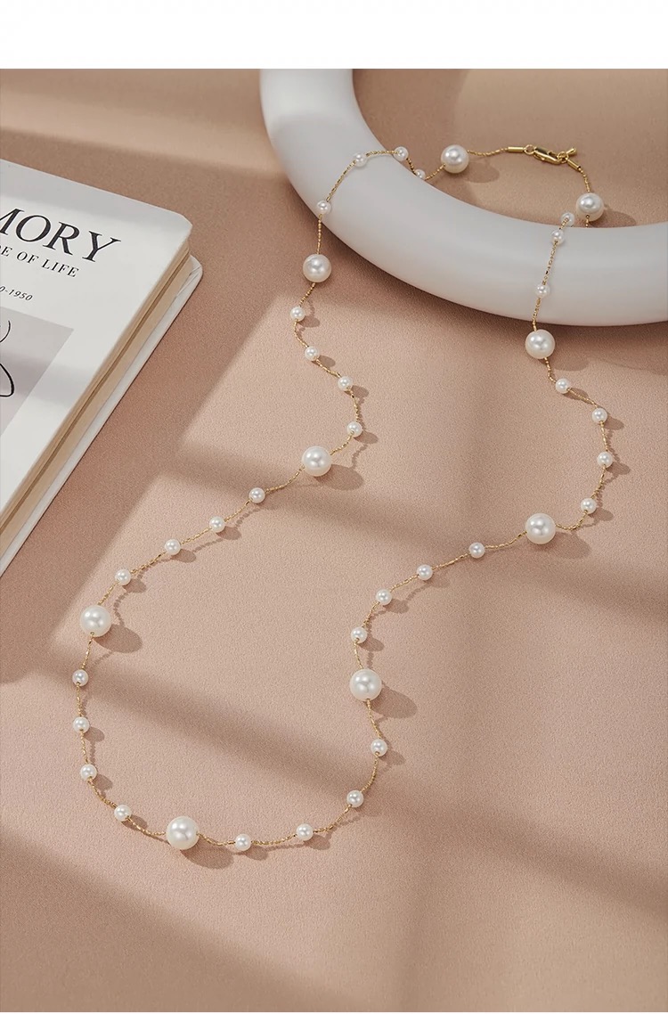 Oflye潮流饰品 满天星珍珠项链女小众设计感气质颈链时尚长款毛衣链秋冬