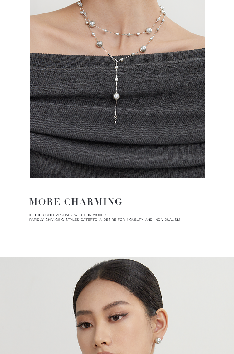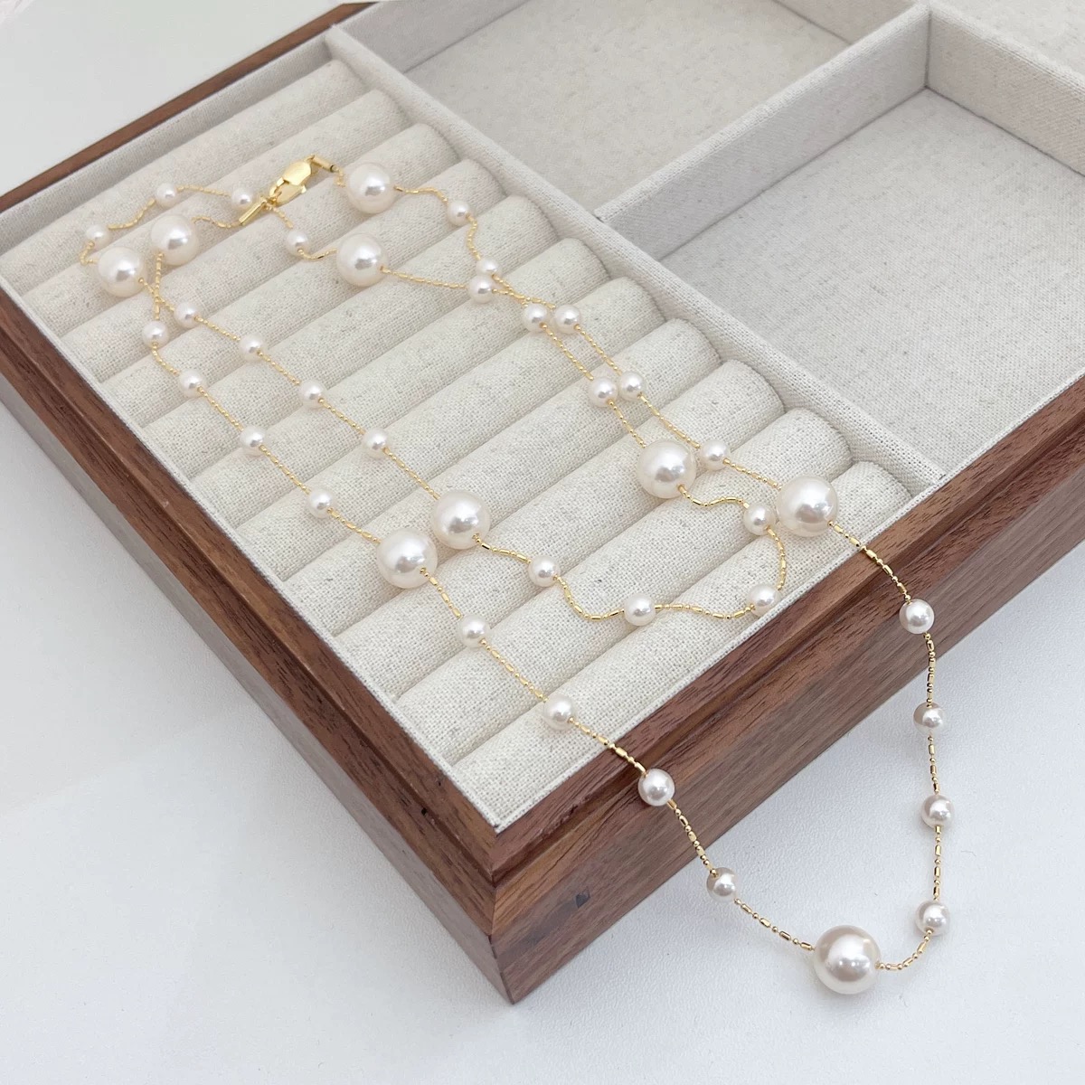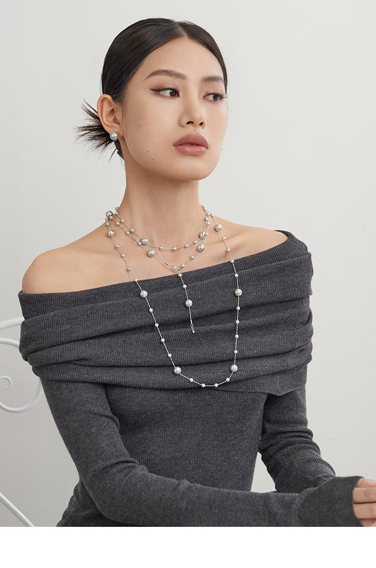 Oflye潮流饰品 满天星珍珠项链女小众设计感气质颈链时尚长款毛衣链秋冬