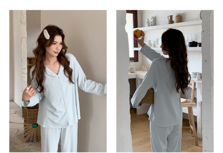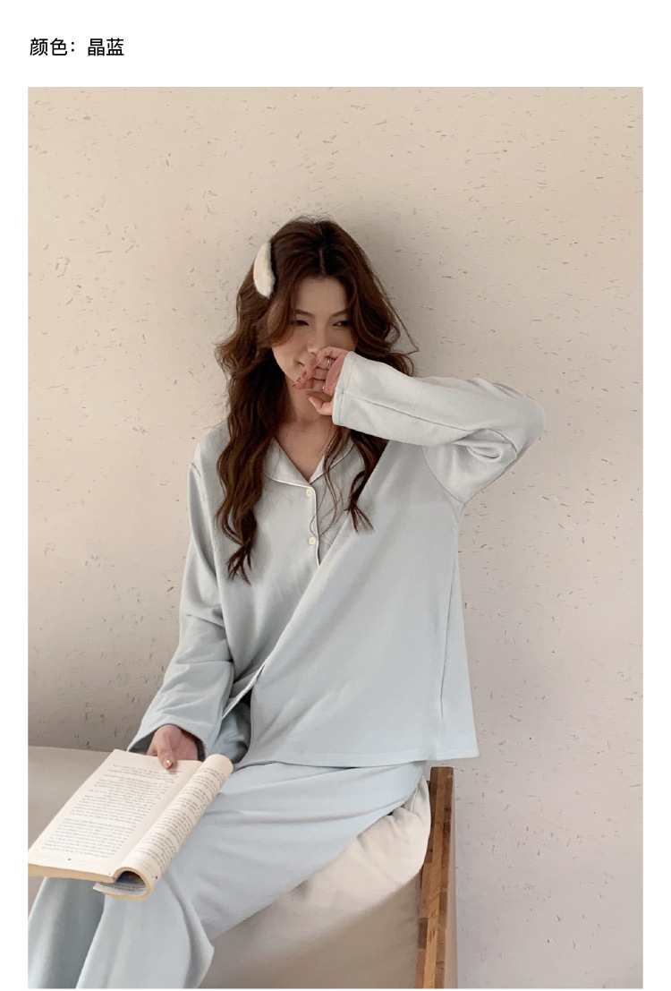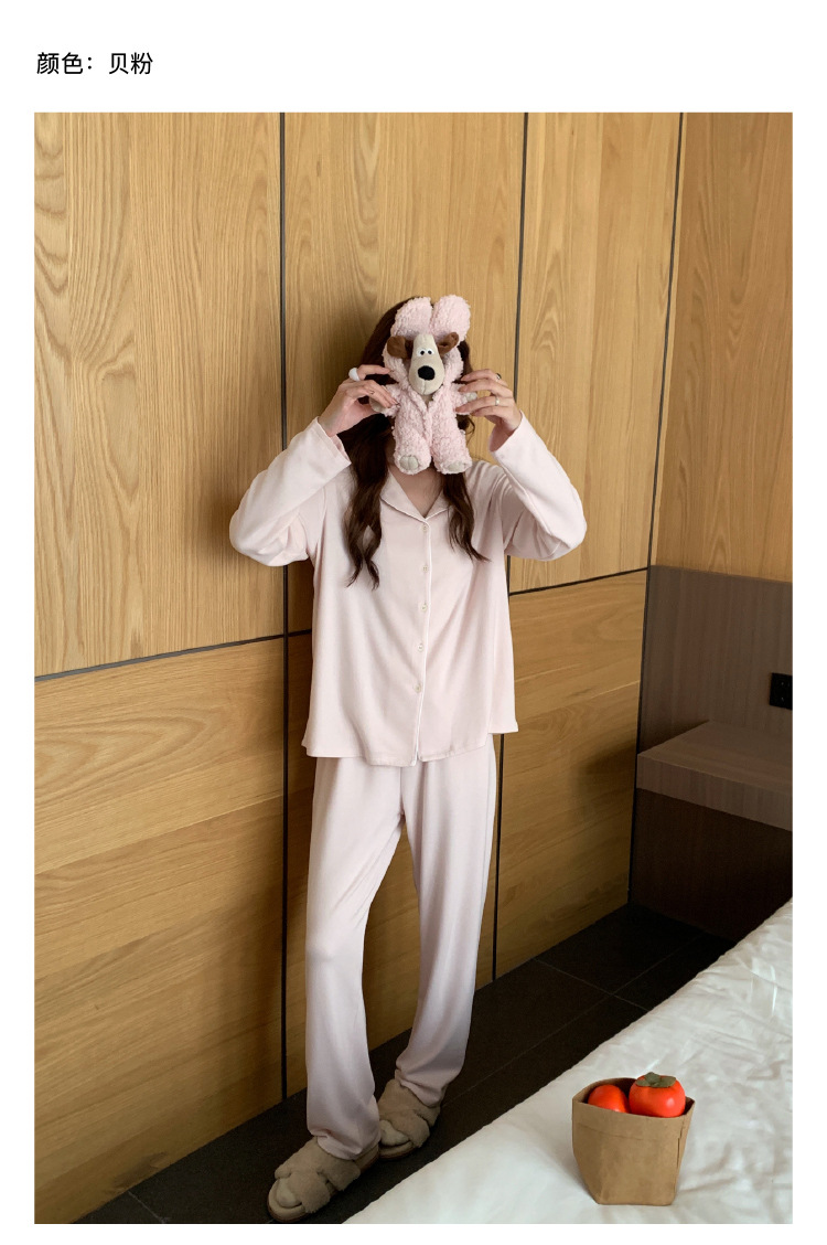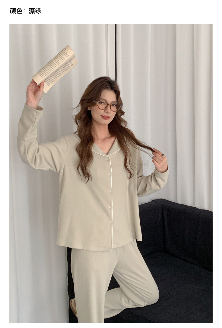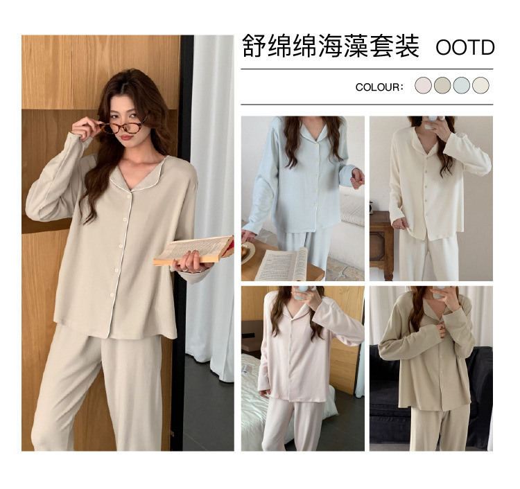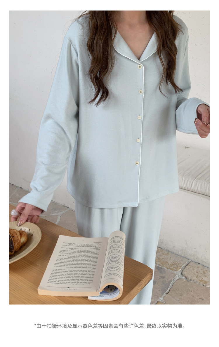 森岛秋冬海藻纤维加厚睡衣 防螨润肤纯色保暖开衫家居服