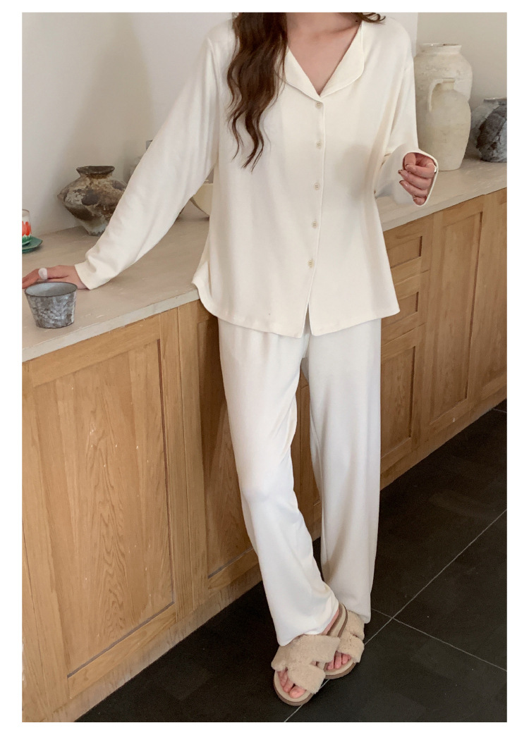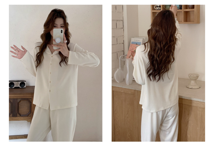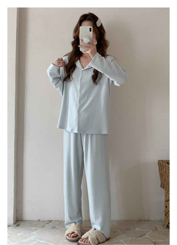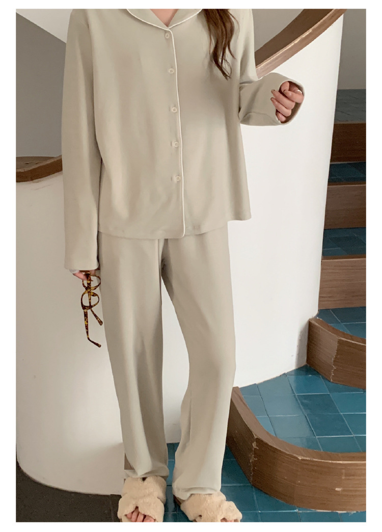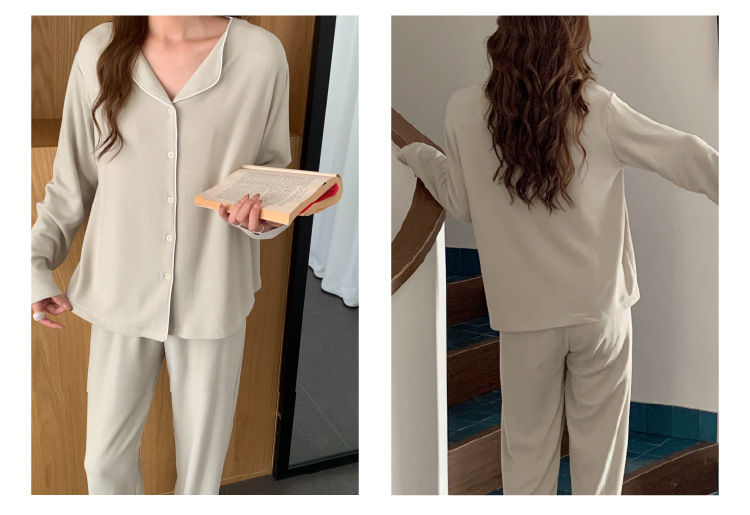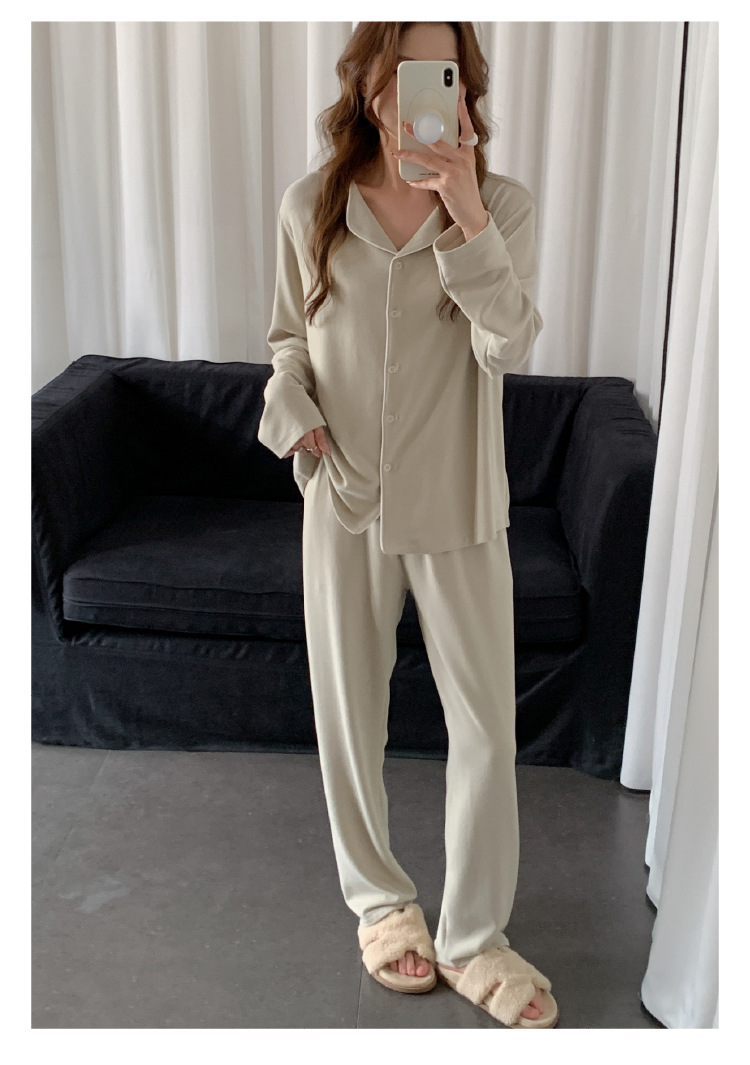 森岛秋冬海藻纤维加厚睡衣 防螨润肤纯色保暖开衫家居服
