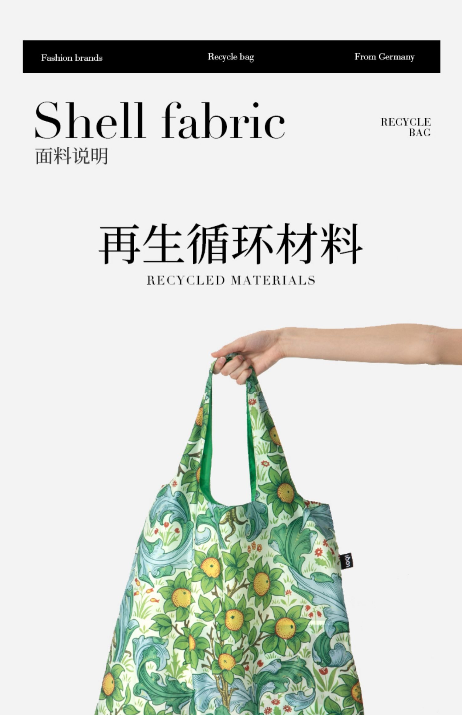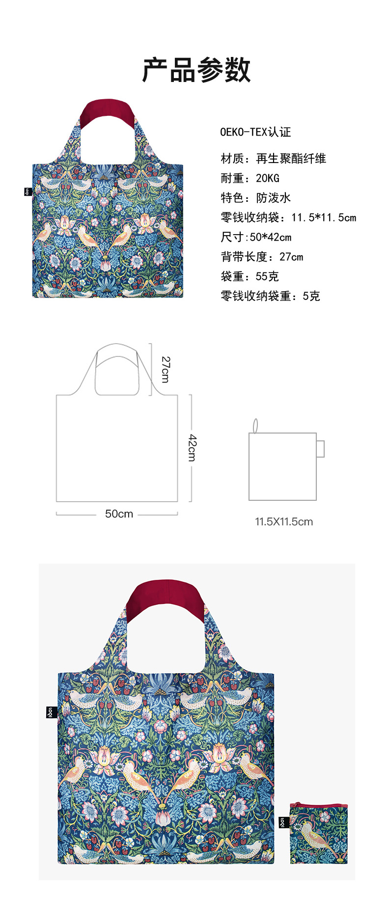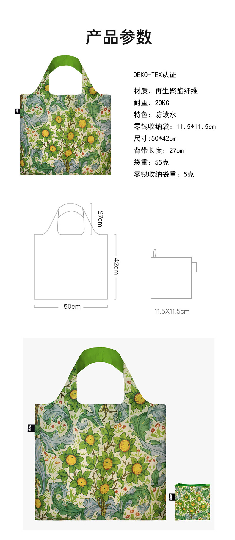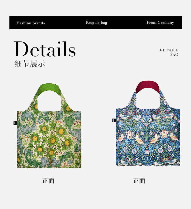 德国LOQI 博物馆系列 果园WM.OR 时尚艺术环保万用袋 折叠大容量单肩手提购物袋承重40斤防泼水 威廉·莫里斯