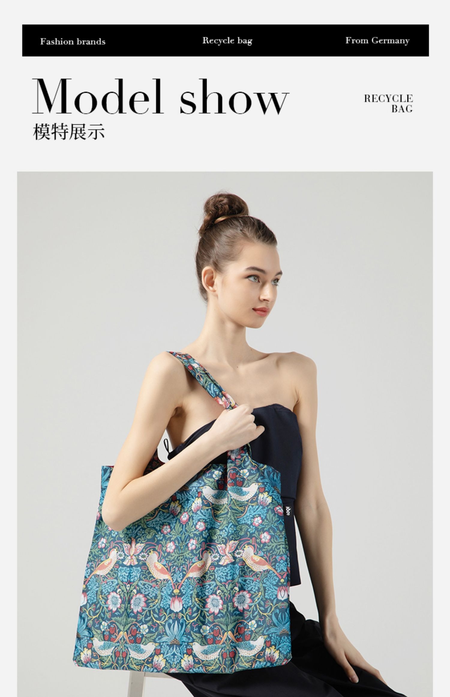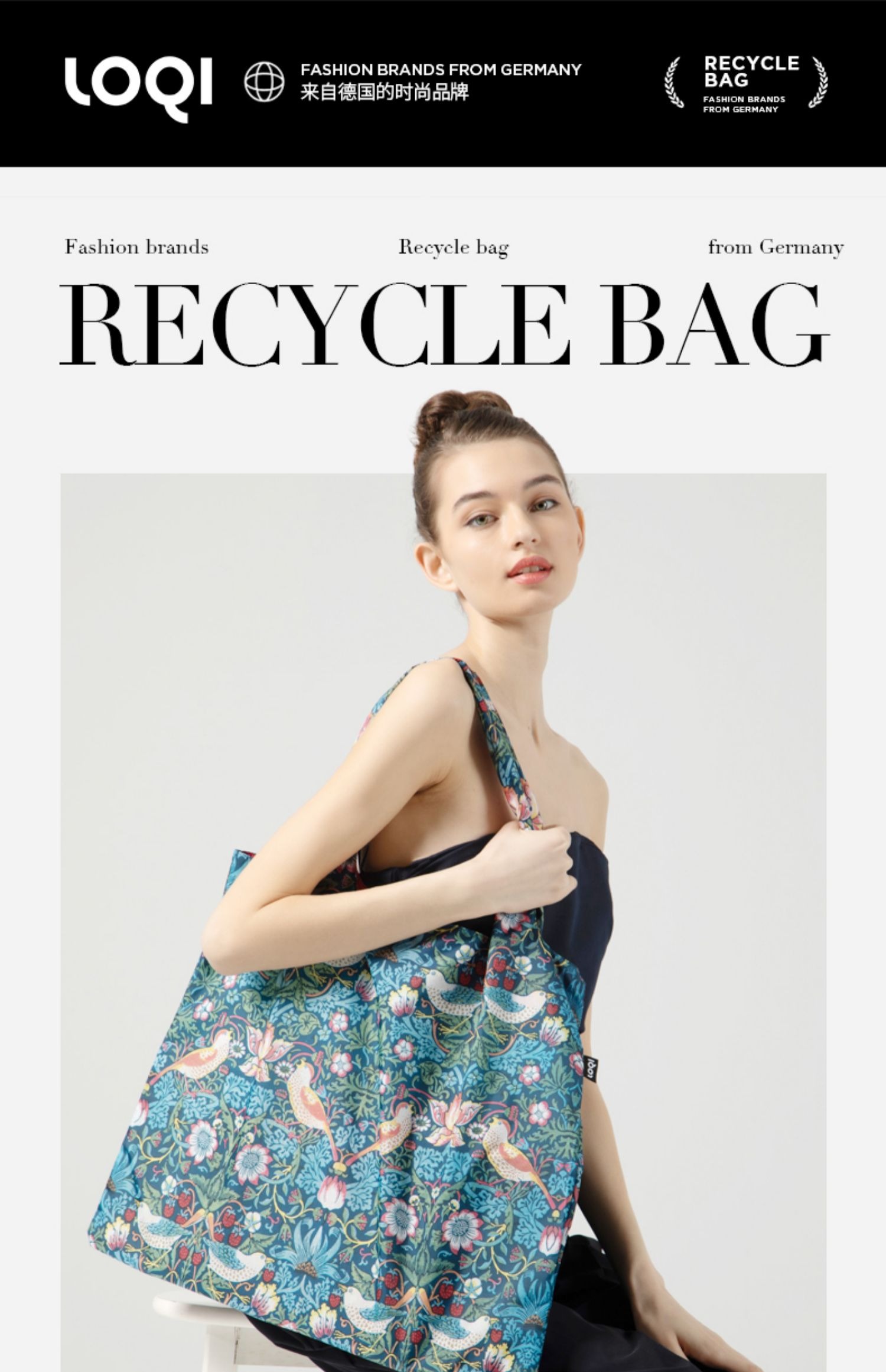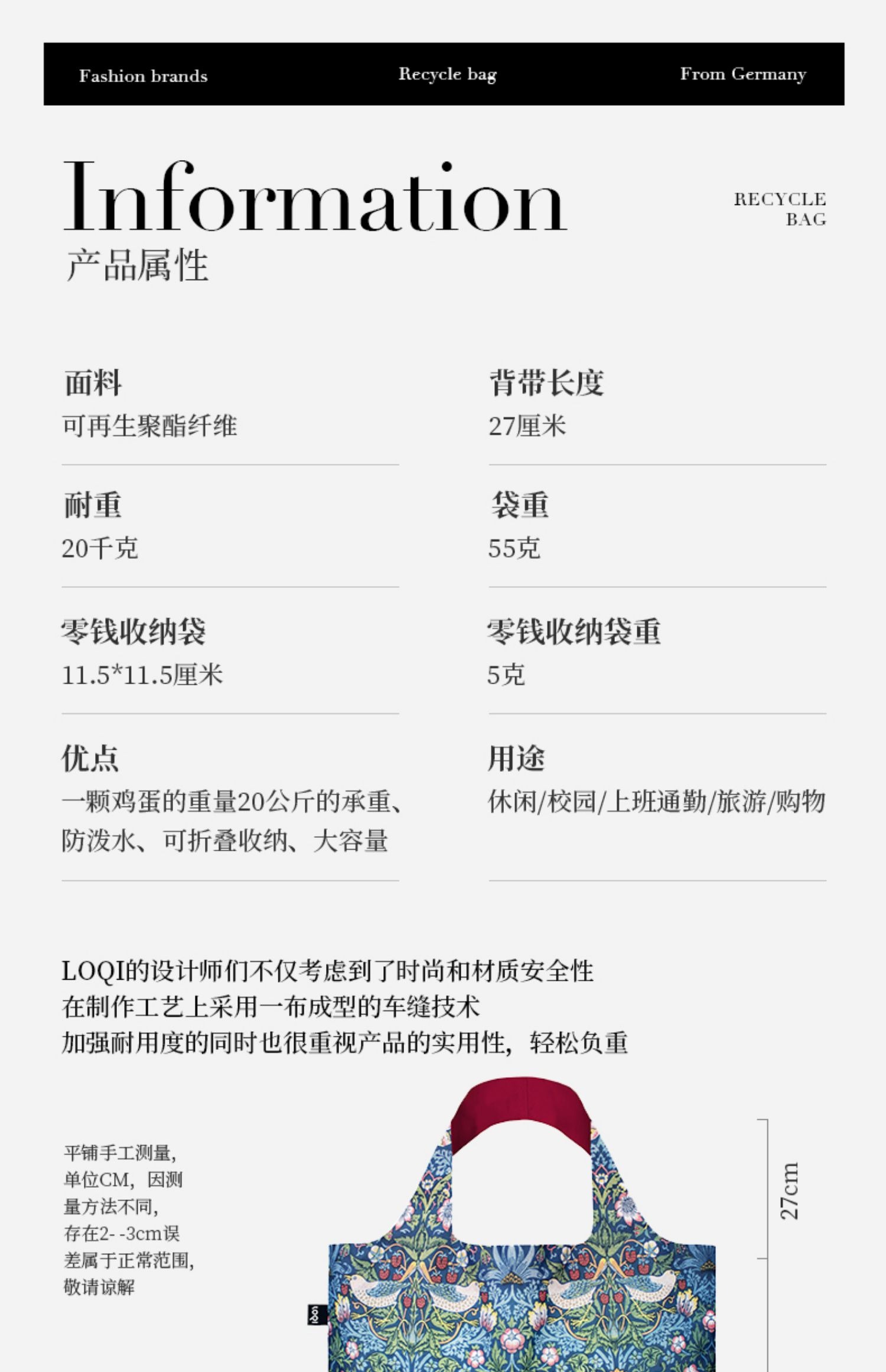 德国LOQI 博物馆系列 果园WM.OR 时尚艺术环保万用袋 折叠大容量单肩手提购物袋承重40斤防泼水 威廉·莫里斯