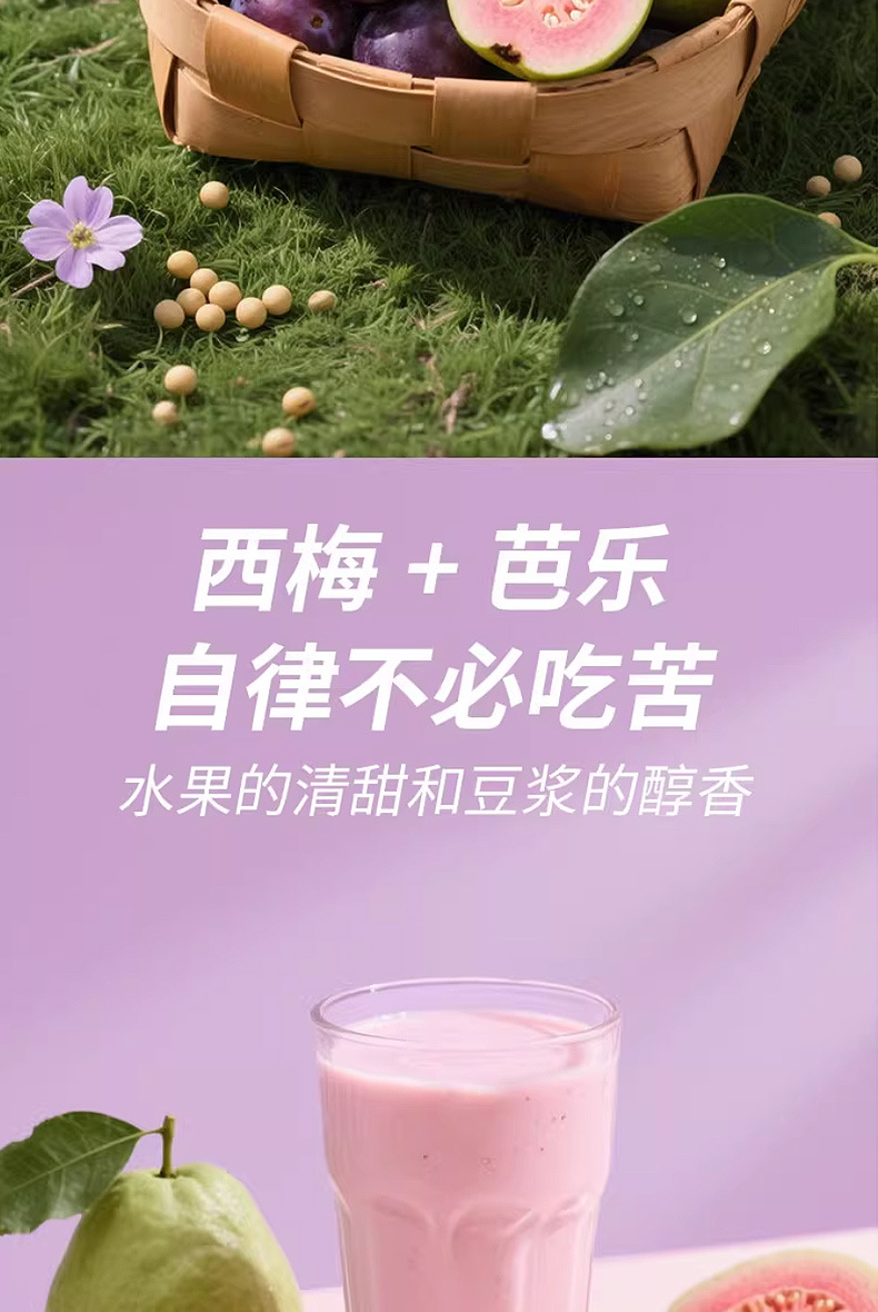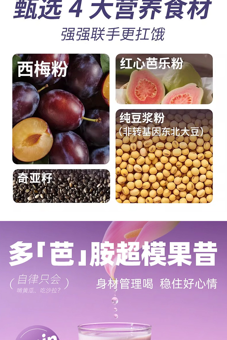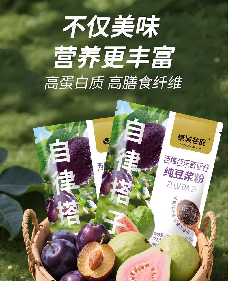 【健康轻食❗️西梅芭乐奇亚籽纯豆浆粉】甄选品质原料制作,纯豆浆粉(非转基因东北大豆)、西梅粉(固体饮料)红心乐粉 (固体饮料)奇亚籽自律代餐饱腹膳食纤维西莓粉L