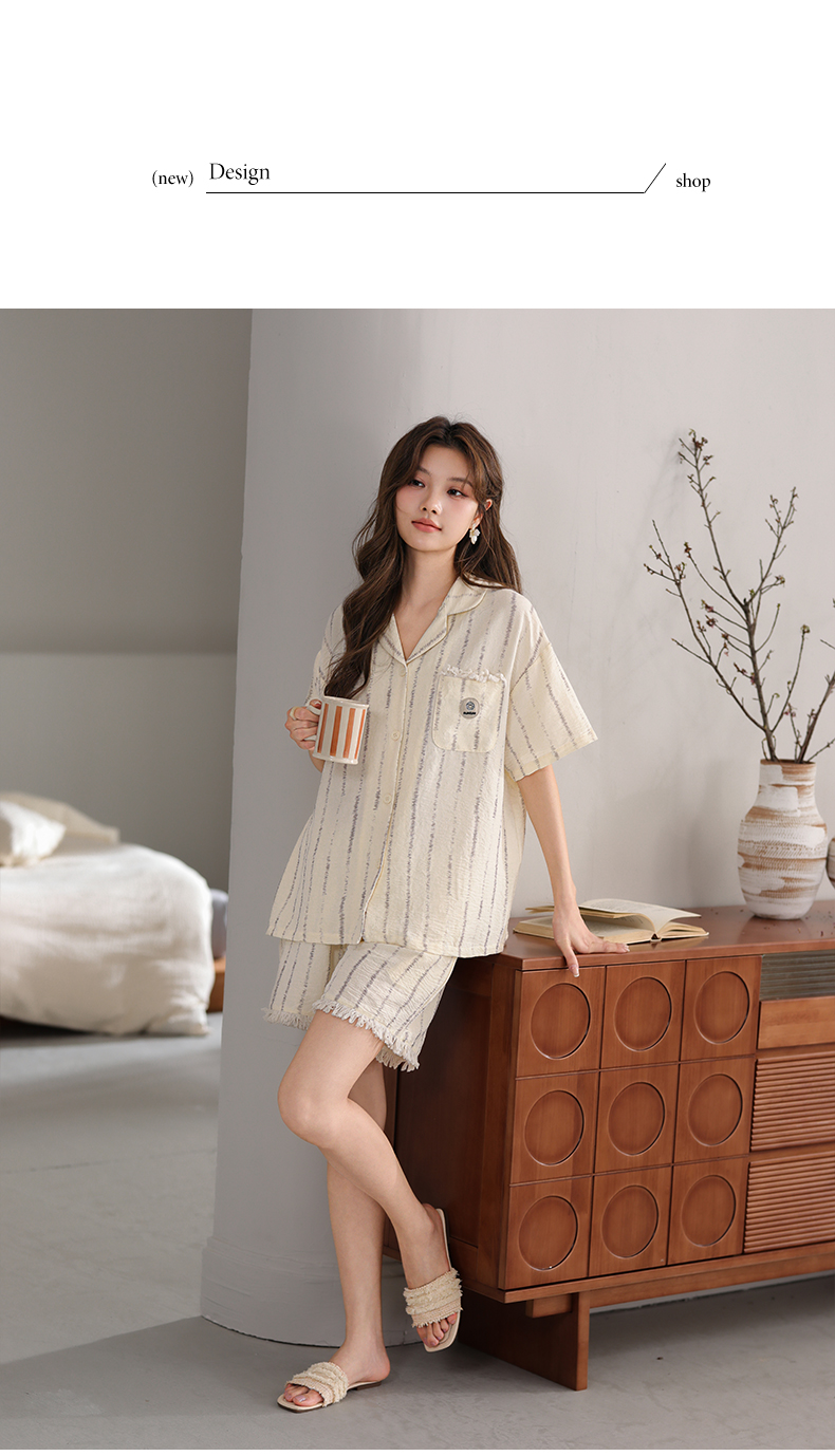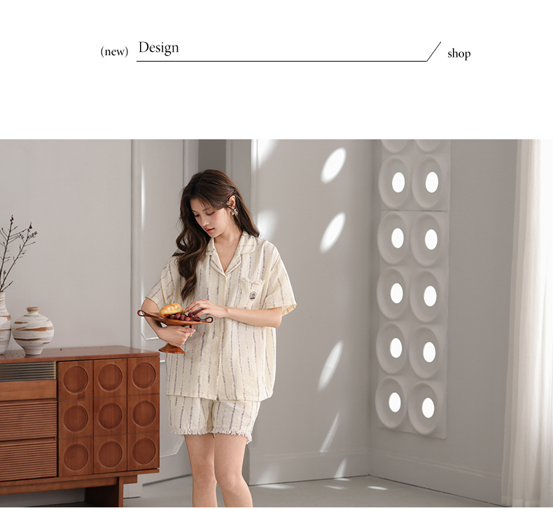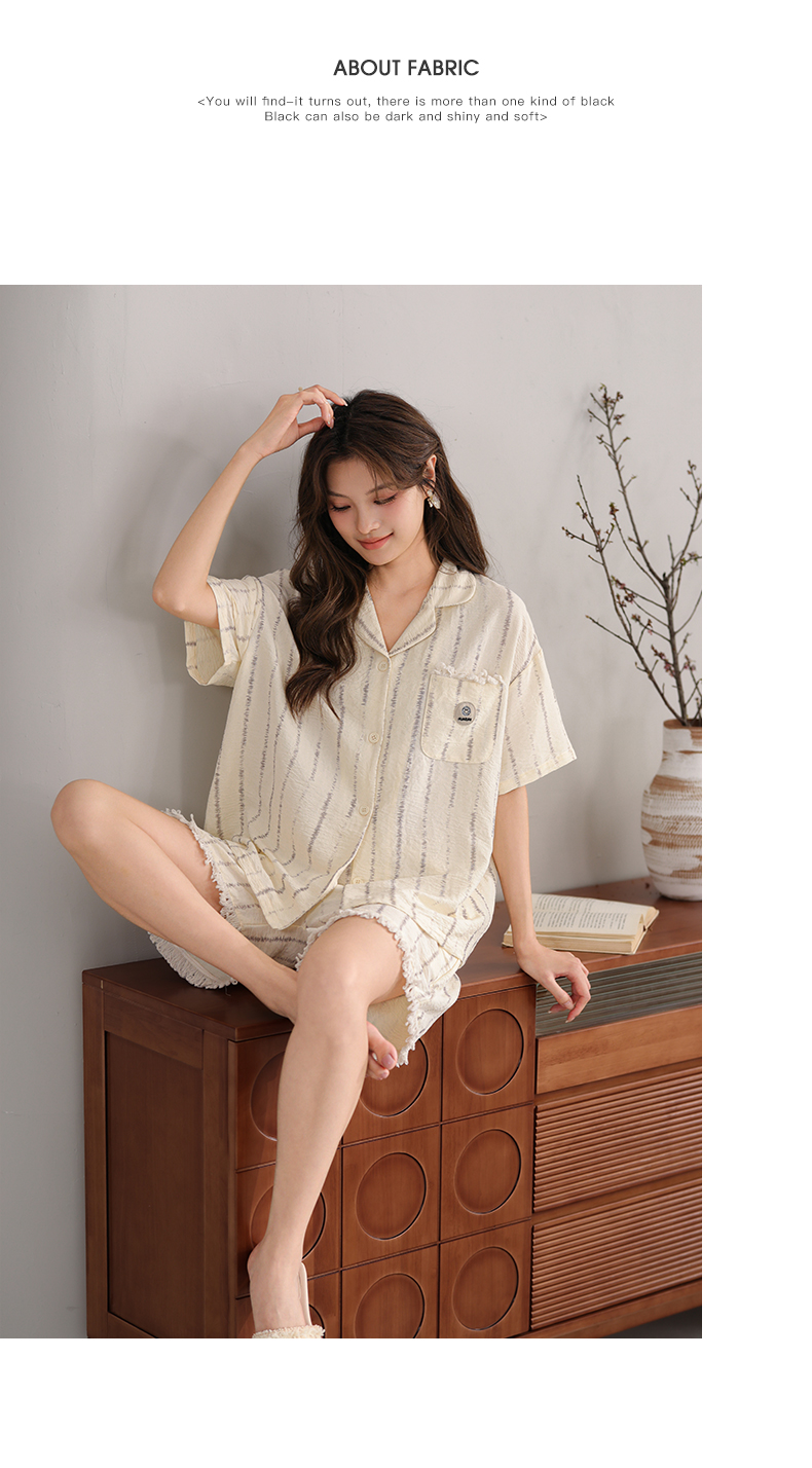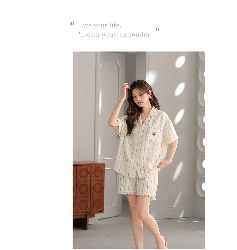 可人儿新款泡泡绵夏短袖带胸垫睡衣女网红爆款可外穿家居服三件套