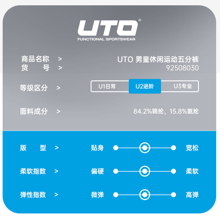 UTO悠途潜心于贴身运动装备的研发、设计和生产。从纤维到组织,从设计到工艺,在无缝贴身运动装备领域,树立国内标杆。 UTO着力于品牌互联网化,不断采集大量运动数据,为跑步、健身、滑雪等不同类型的运动爱