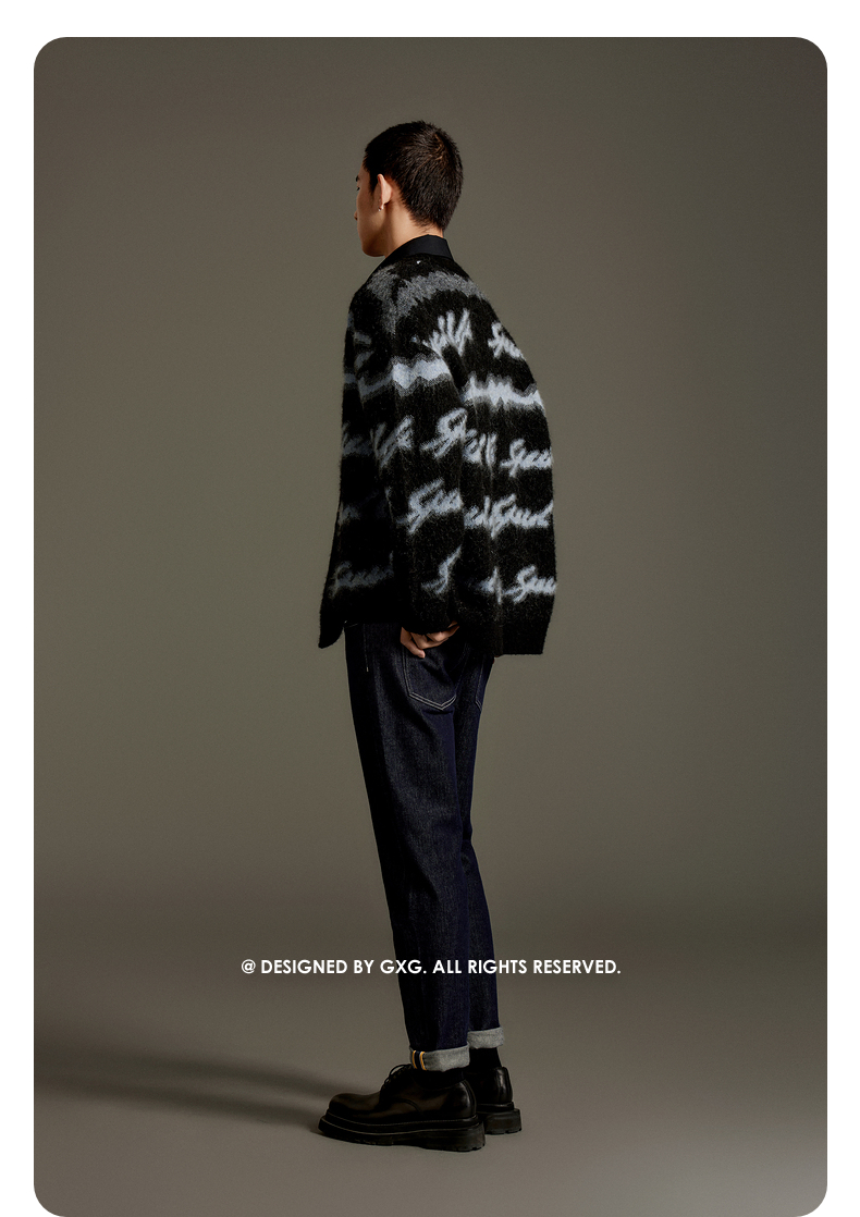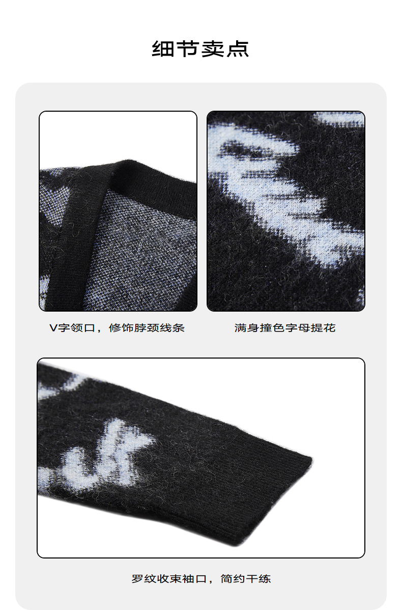 GXG男装 黑色提花撞色潮流毛衣针织开衫外套 热卖毛衫GEX13013853