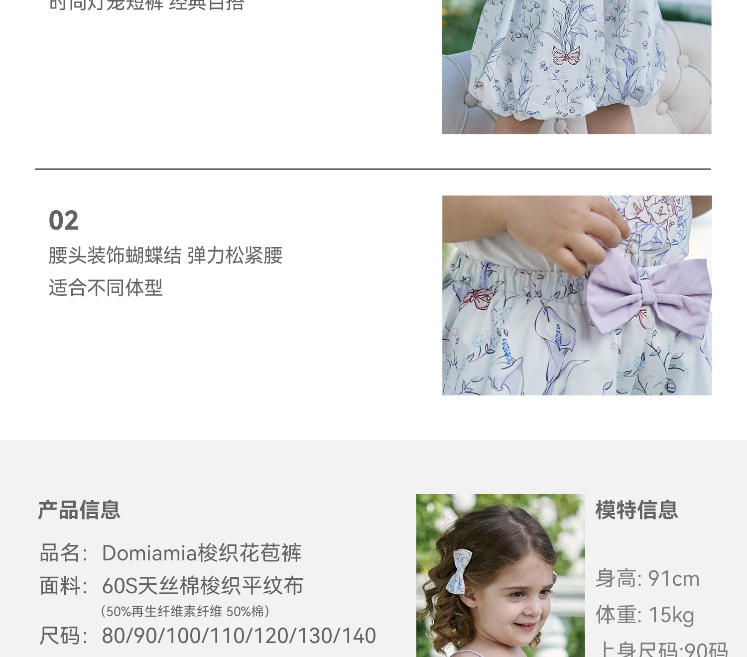 Domiamia 女宝宝梭织蝴蝶结花苞裤 纯棉夏季薄款洋气短裤