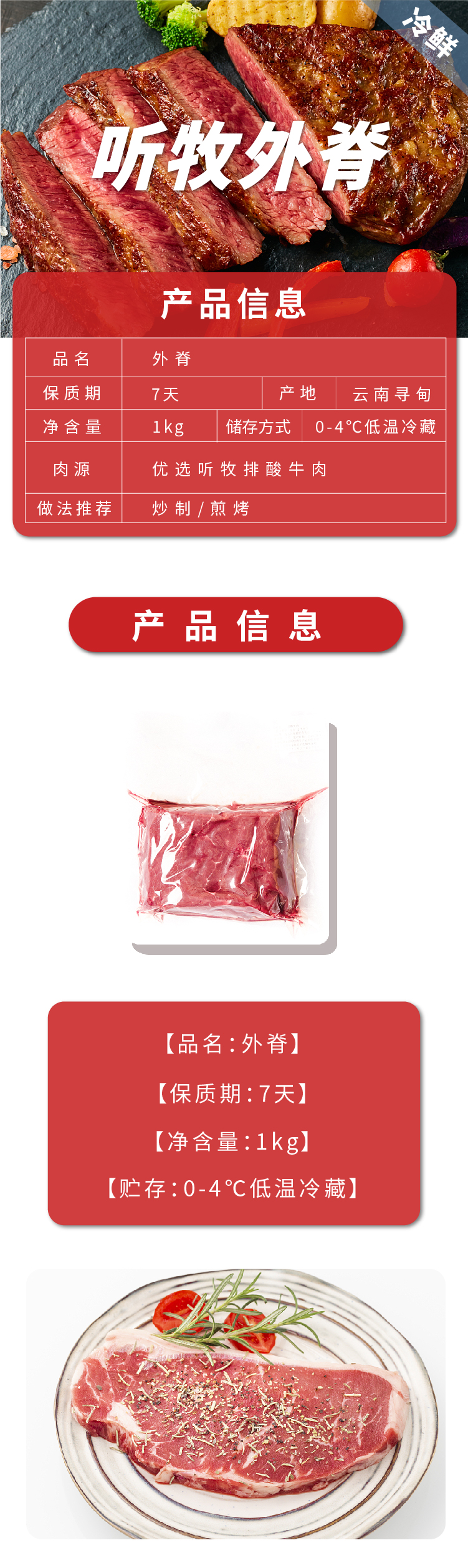 【冷鲜】听牧外脊 1kg/袋
