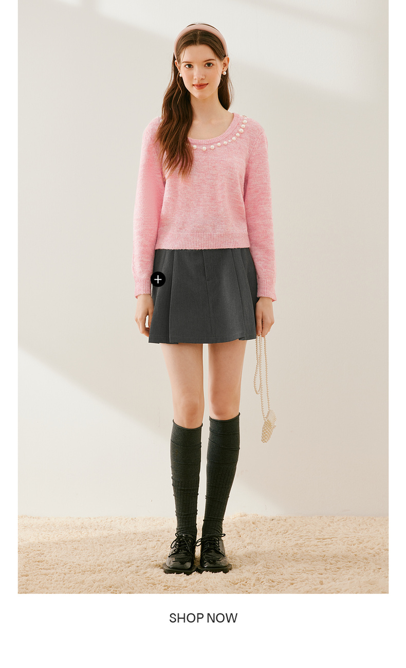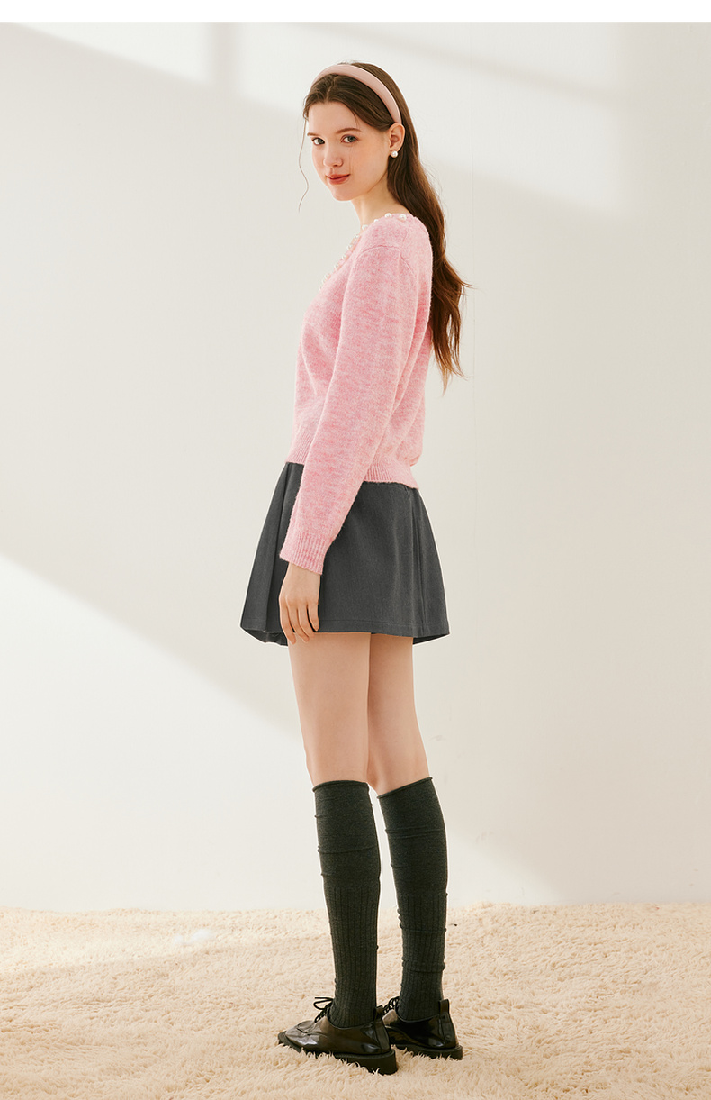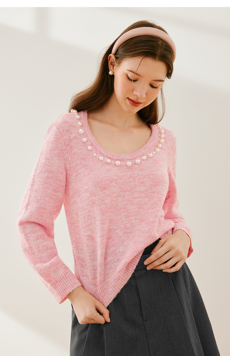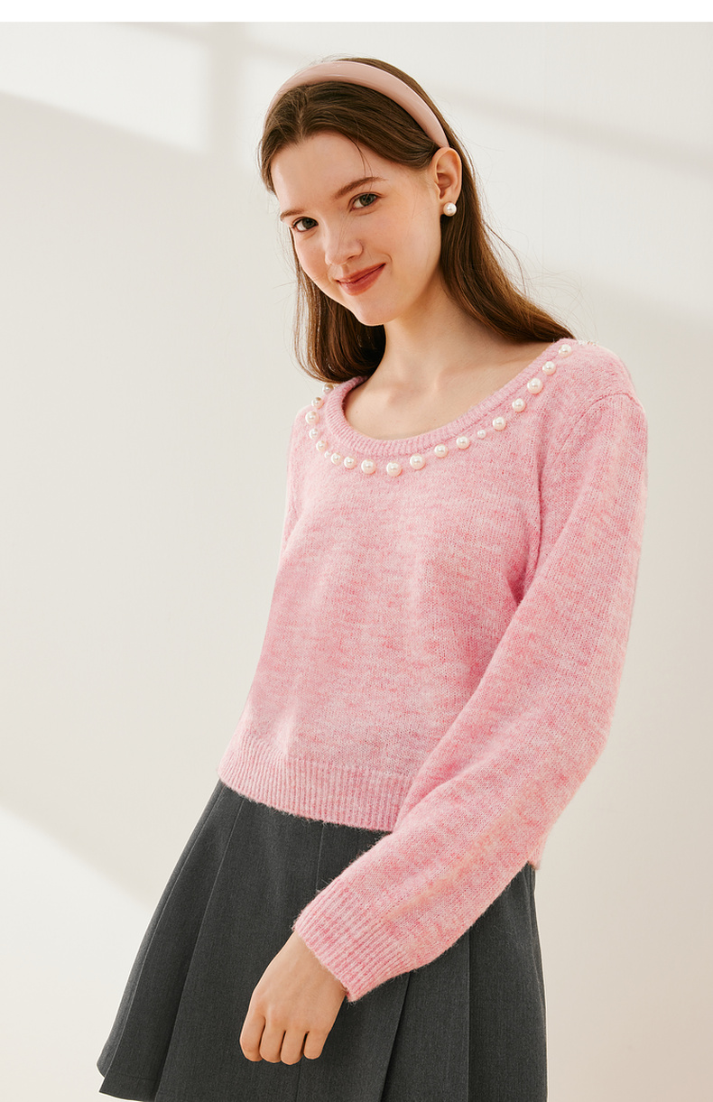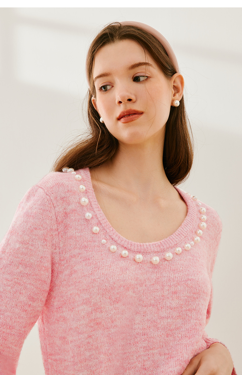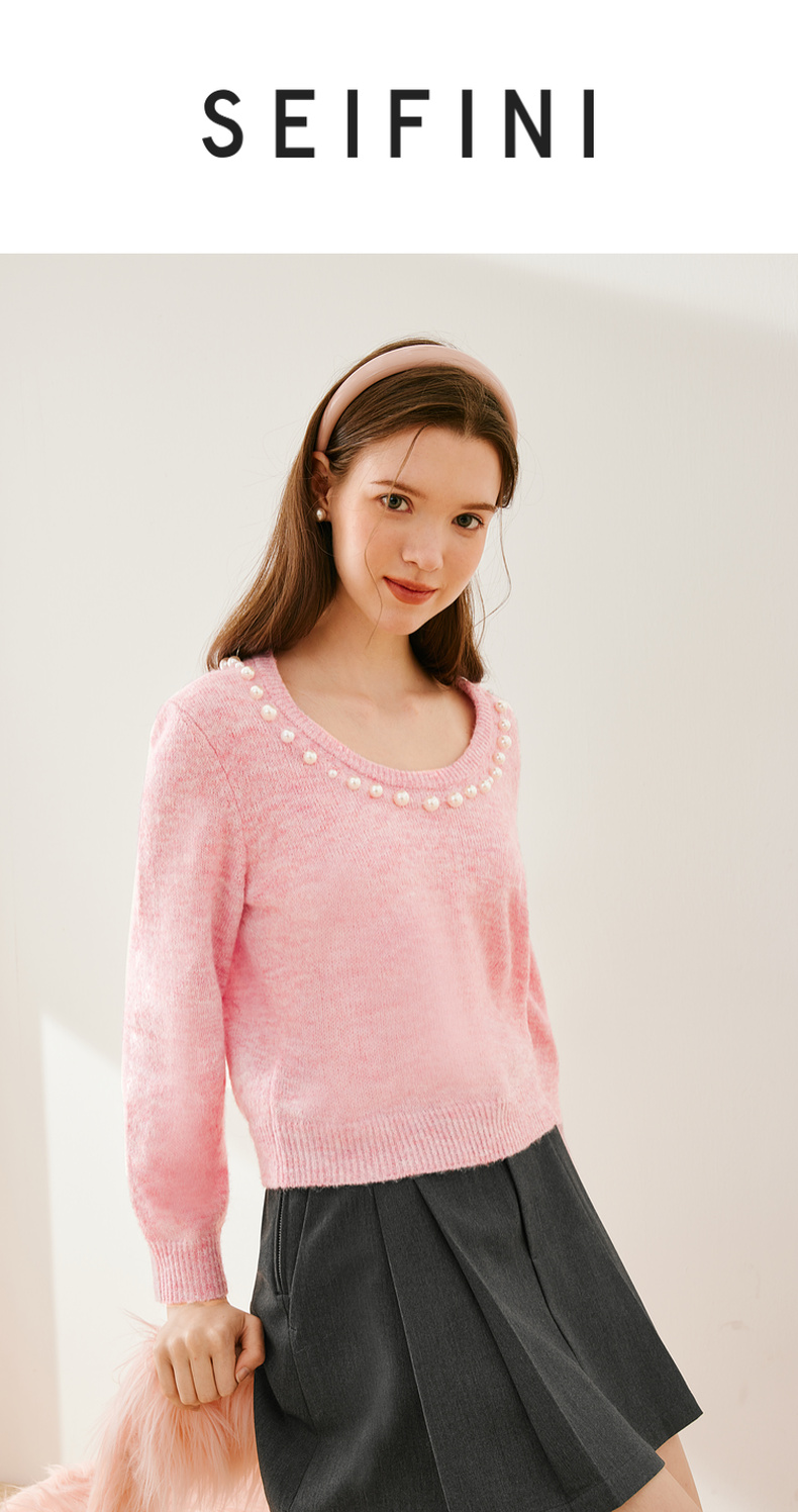 【严选】诗凡黎冬基础领口珍珠装饰针织衫SEC131521