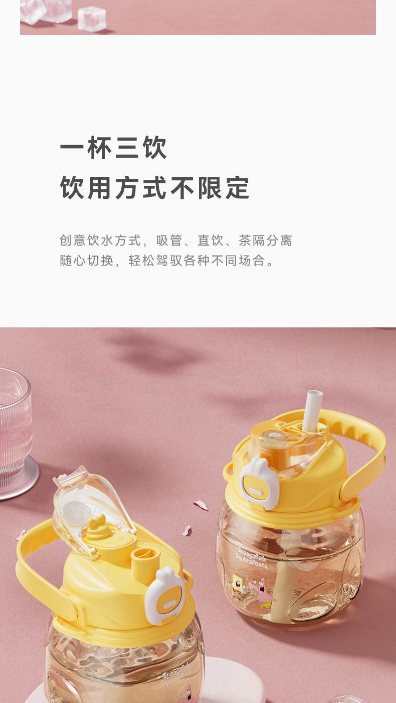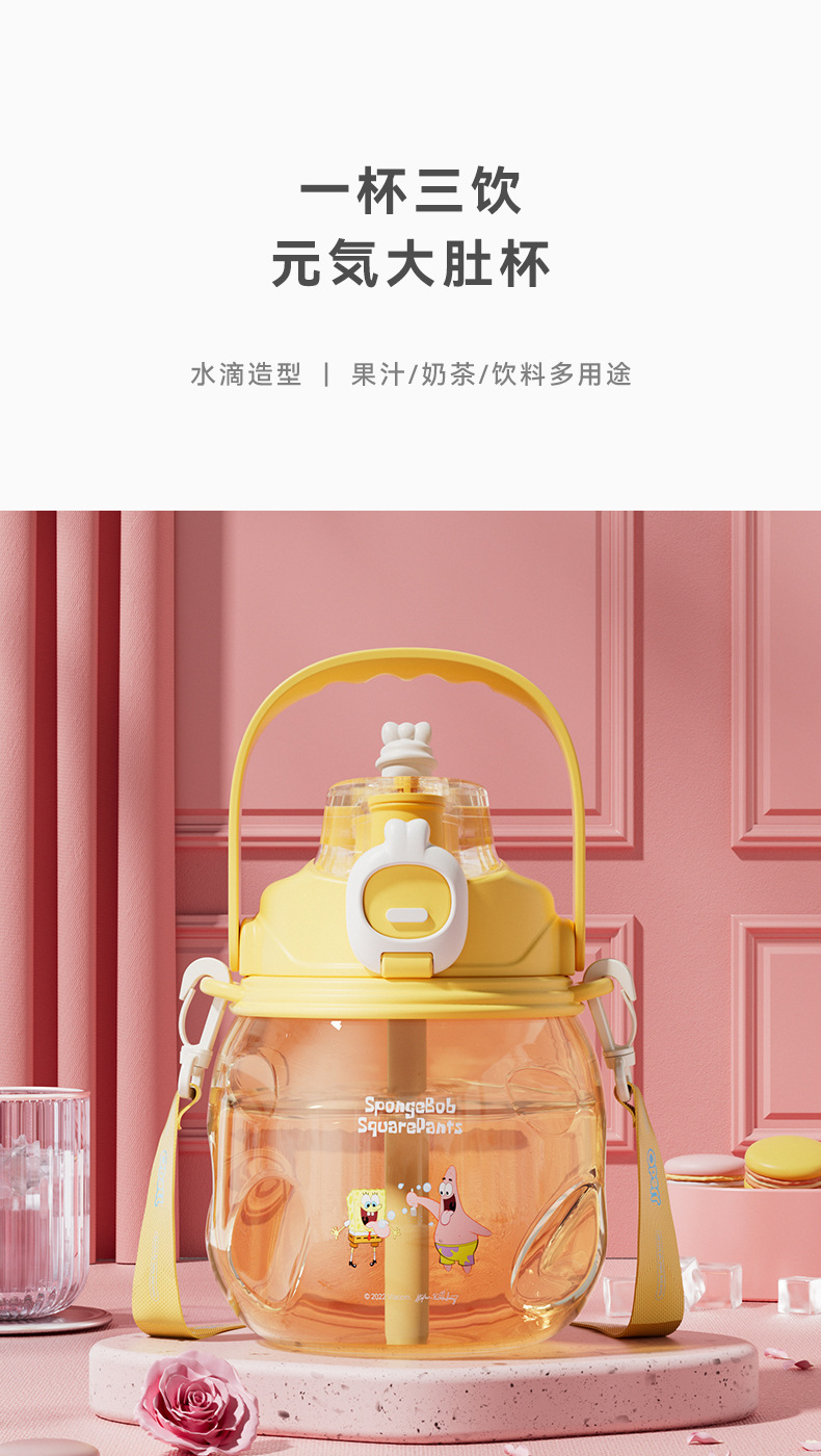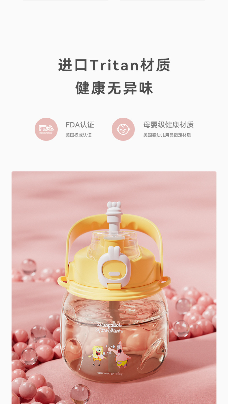 Oball海绵宝宝大容量tritan水杯夏季高颜值杯便携大肚杯儿童杯子