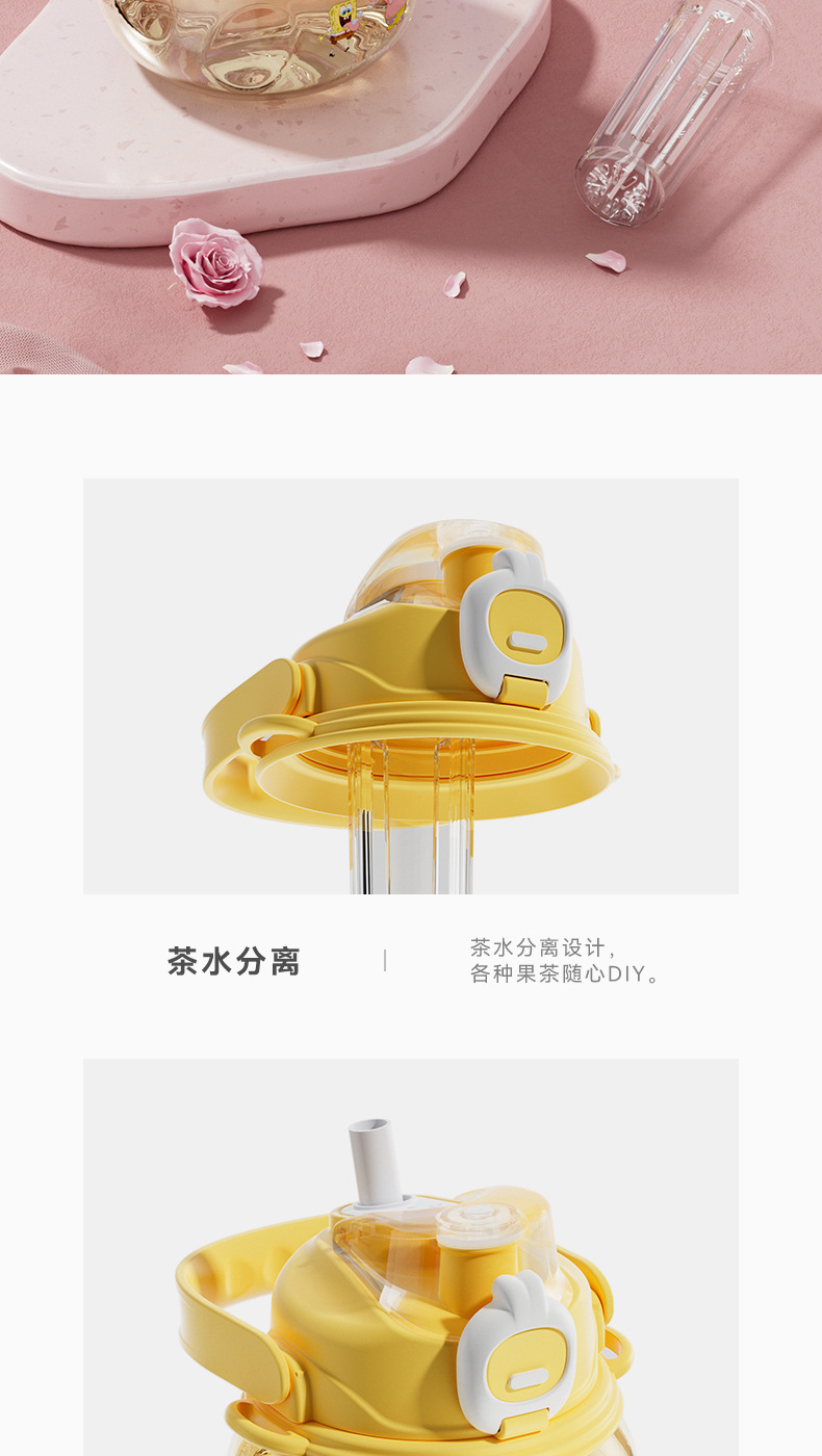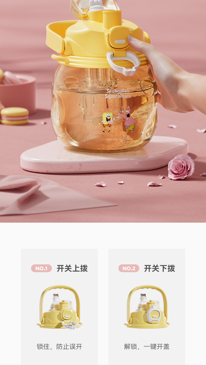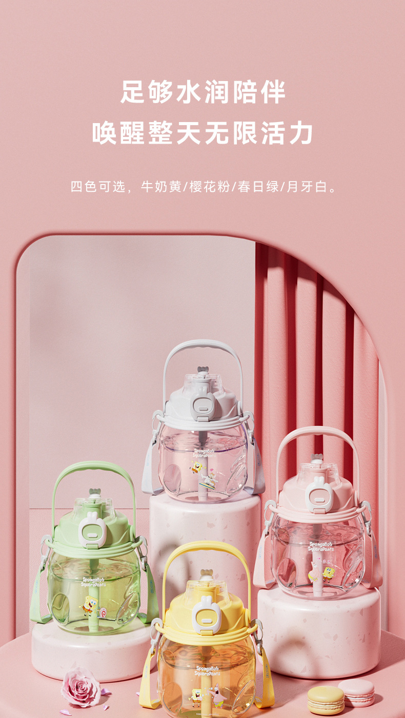 Oball海绵宝宝大容量tritan水杯夏季高颜值杯便携大肚杯儿童杯子