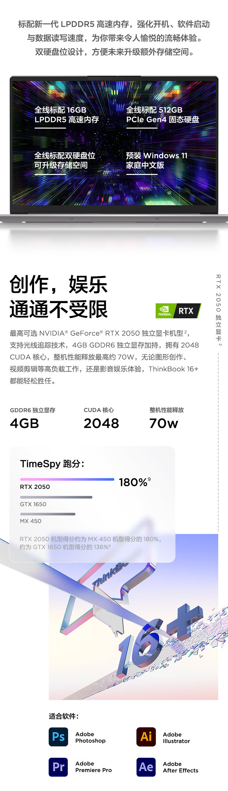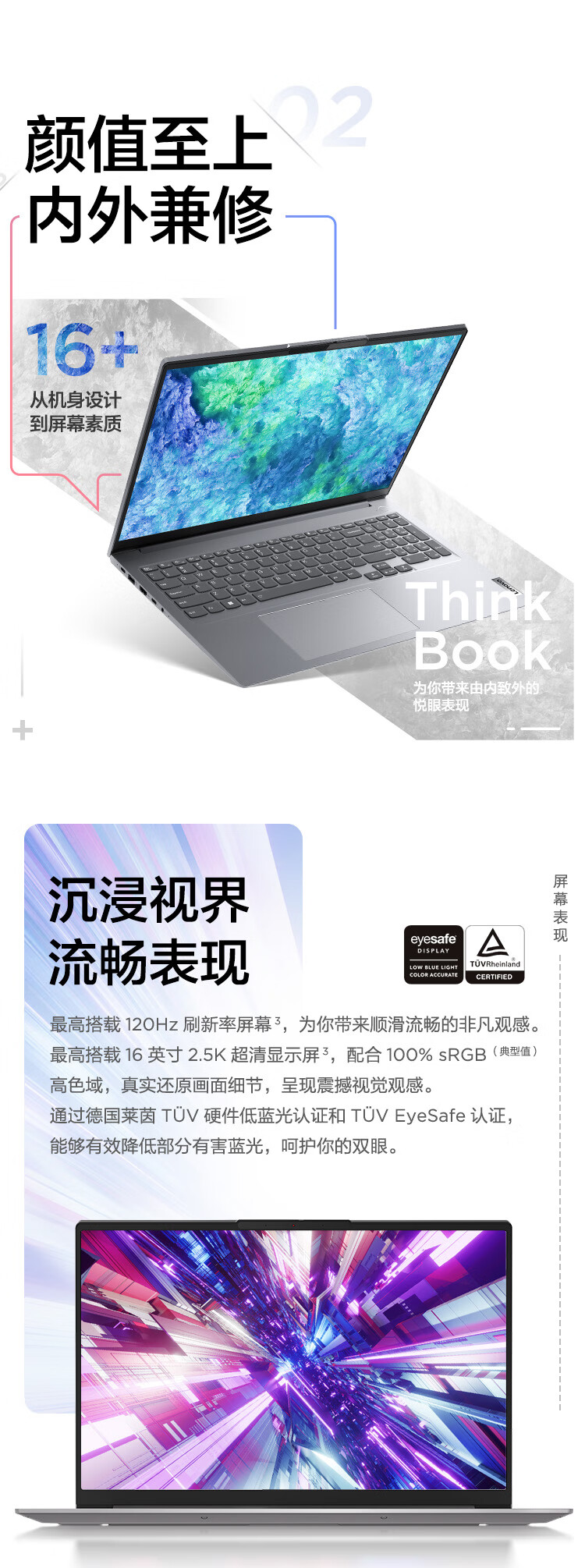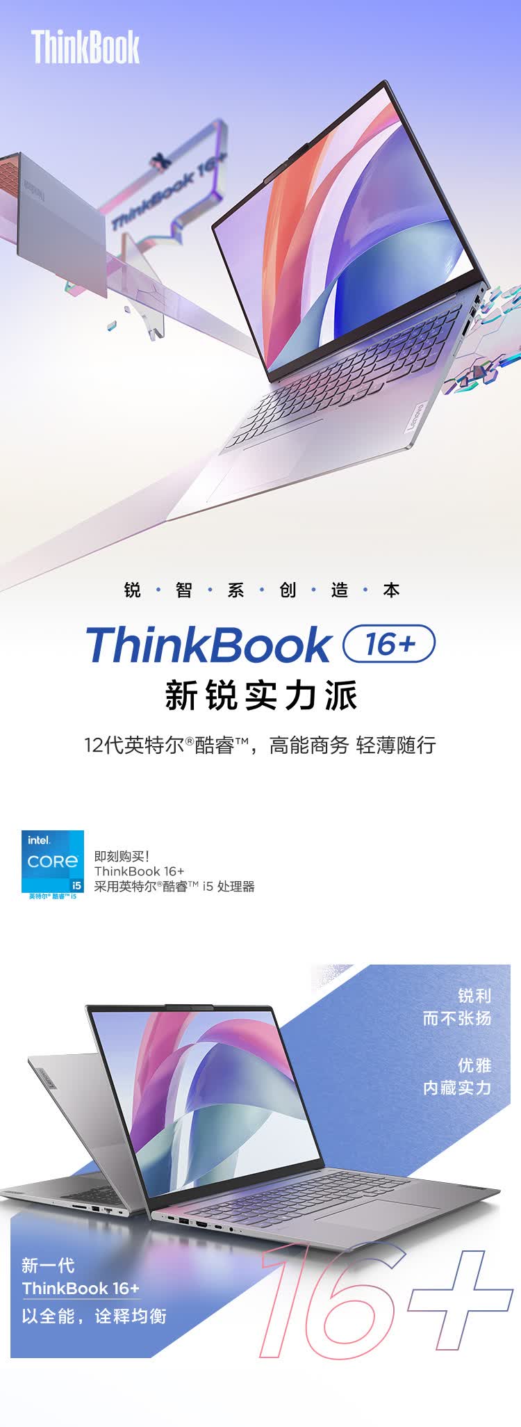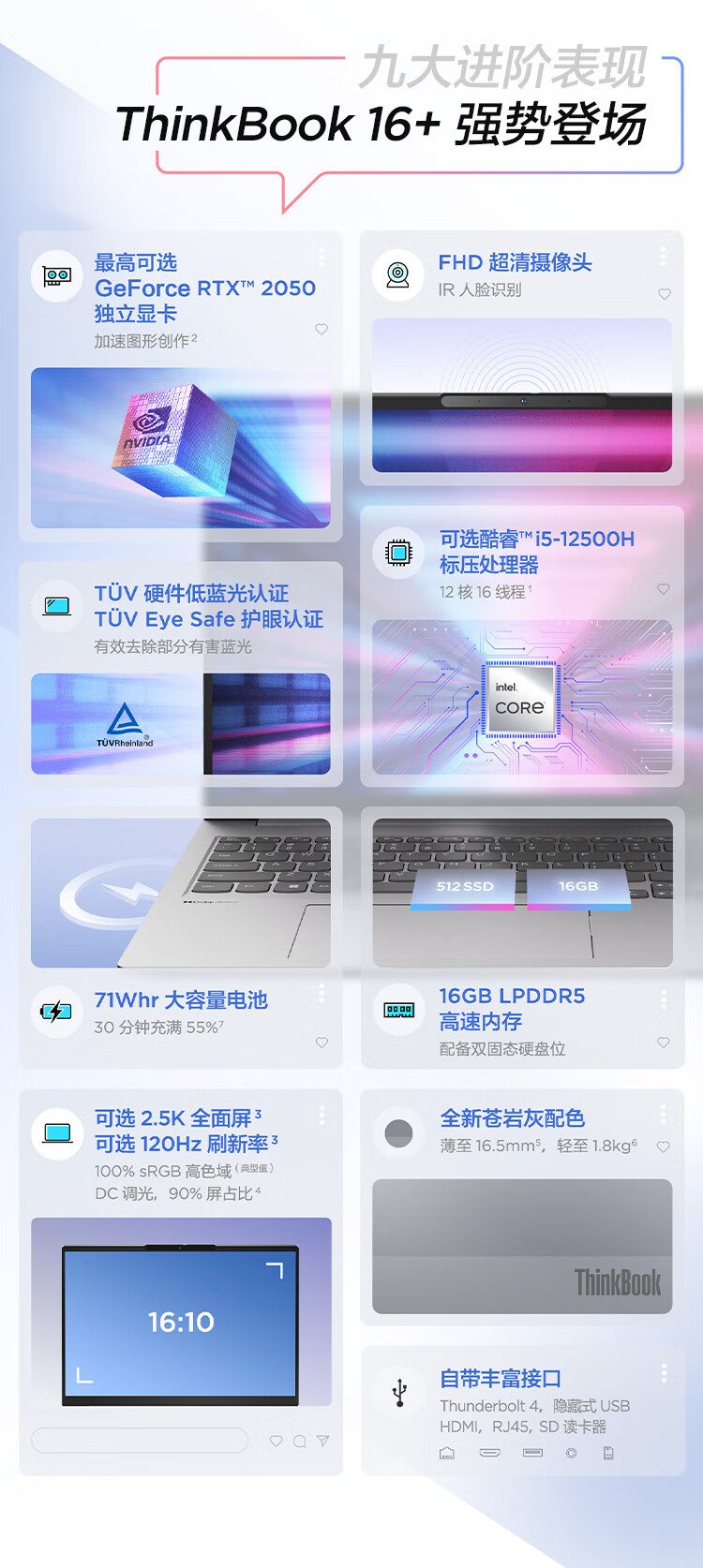 联想ThinkBook 16+ 笔记本电脑 全新2022款 酷睿i5 16英寸标压轻薄本i5-12500H 16G 512G RTX2050 2.5K 120Hz