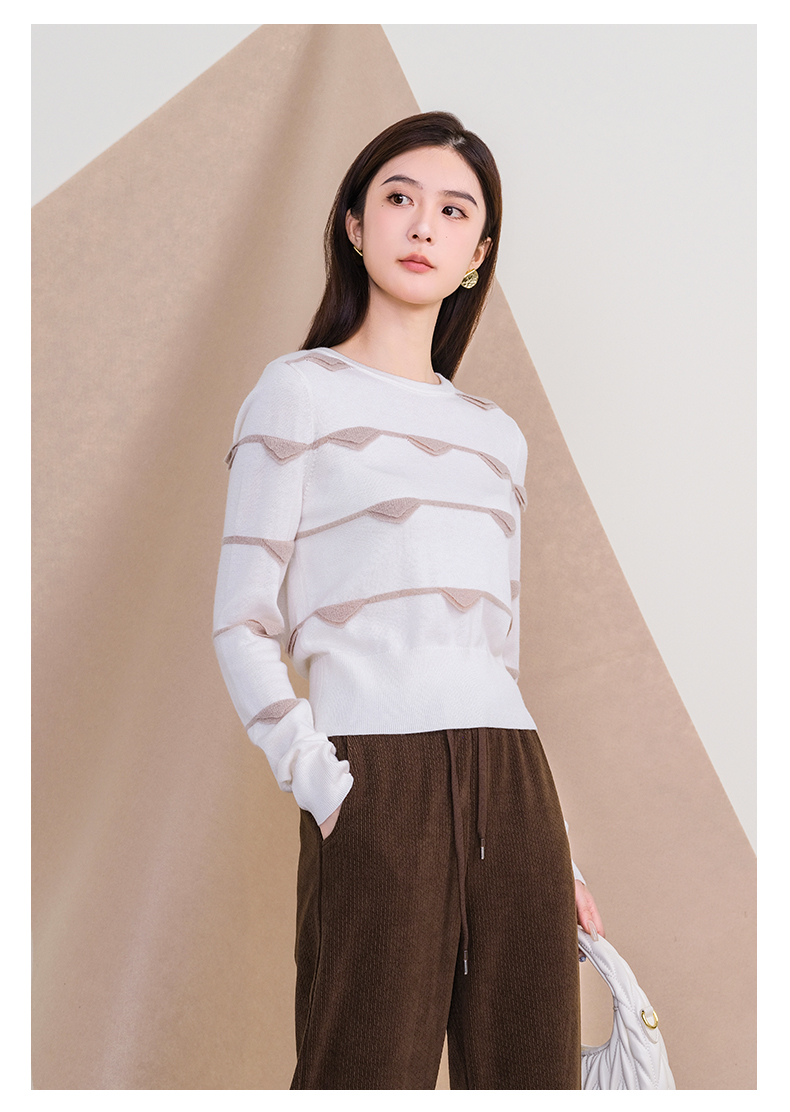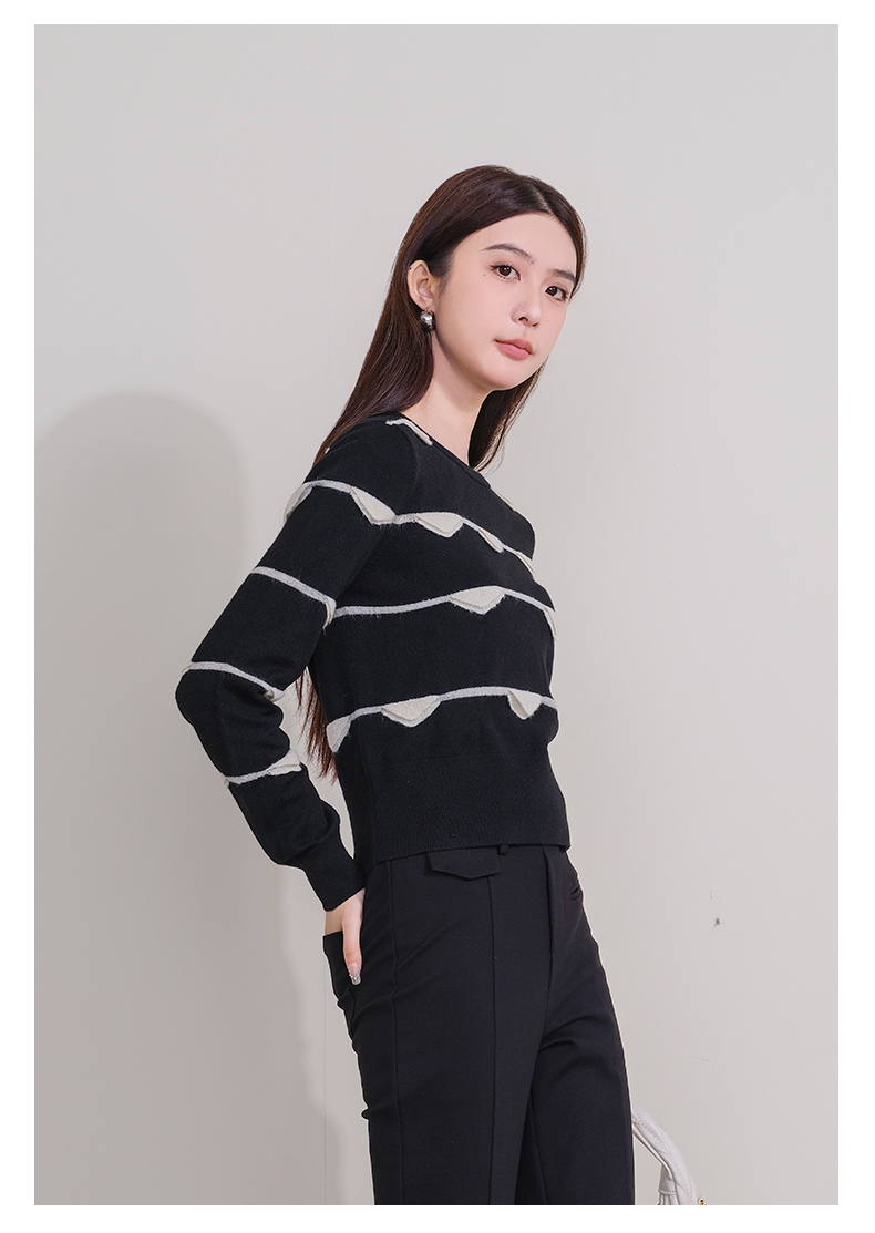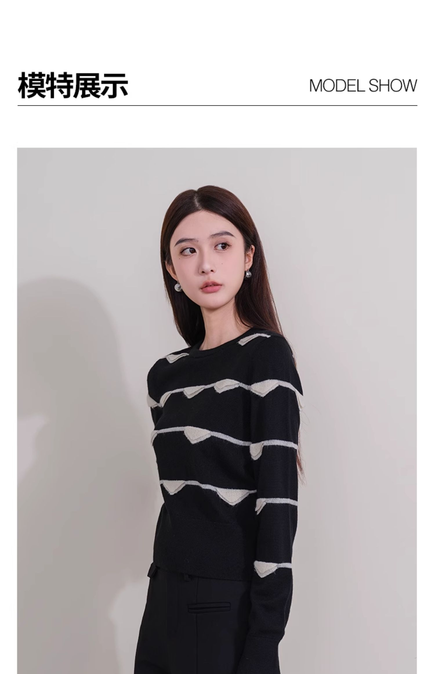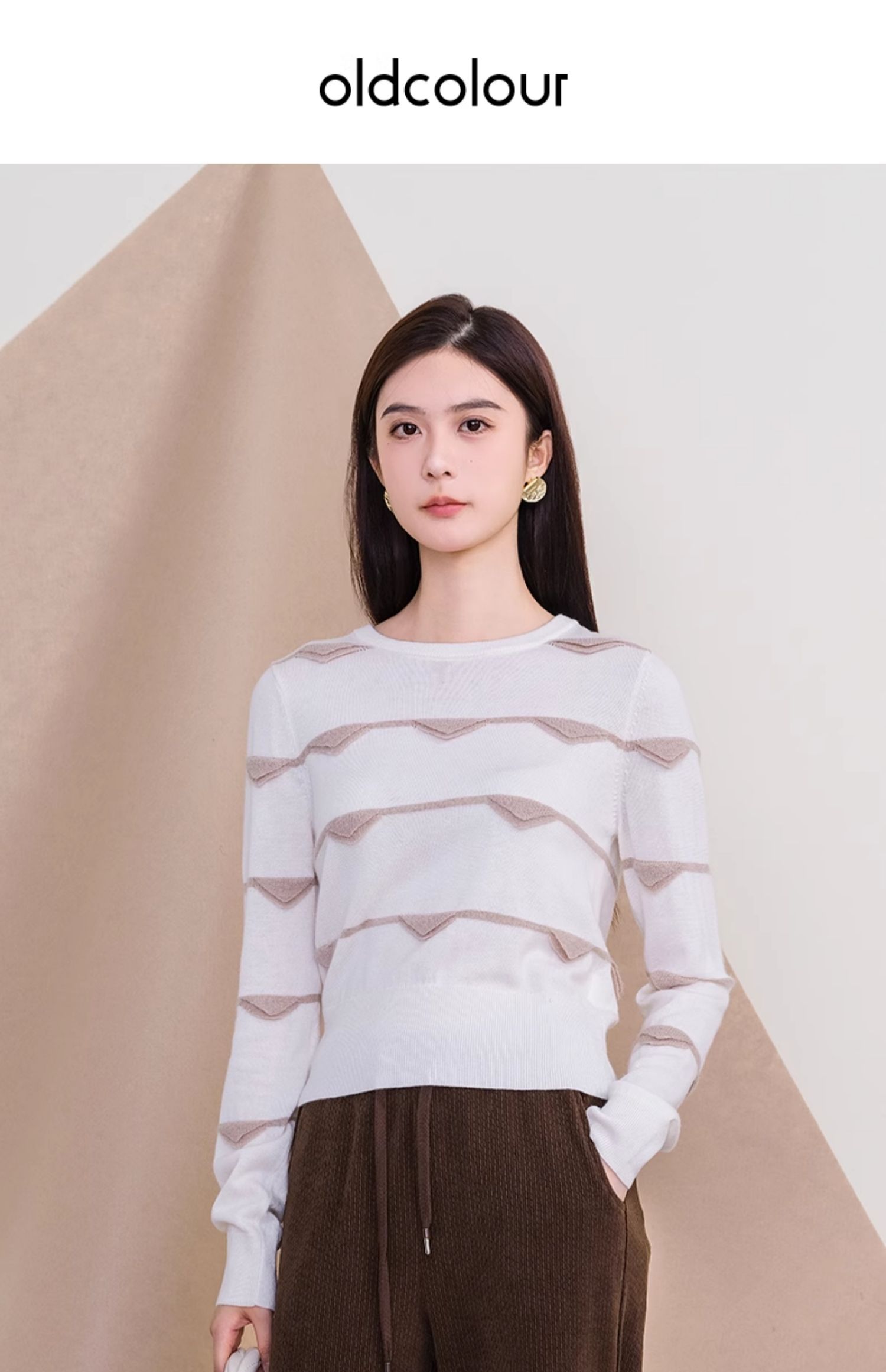 oldcolour欧珂新款圆领长袖不规则横纹毛织套头衫女P440508A1