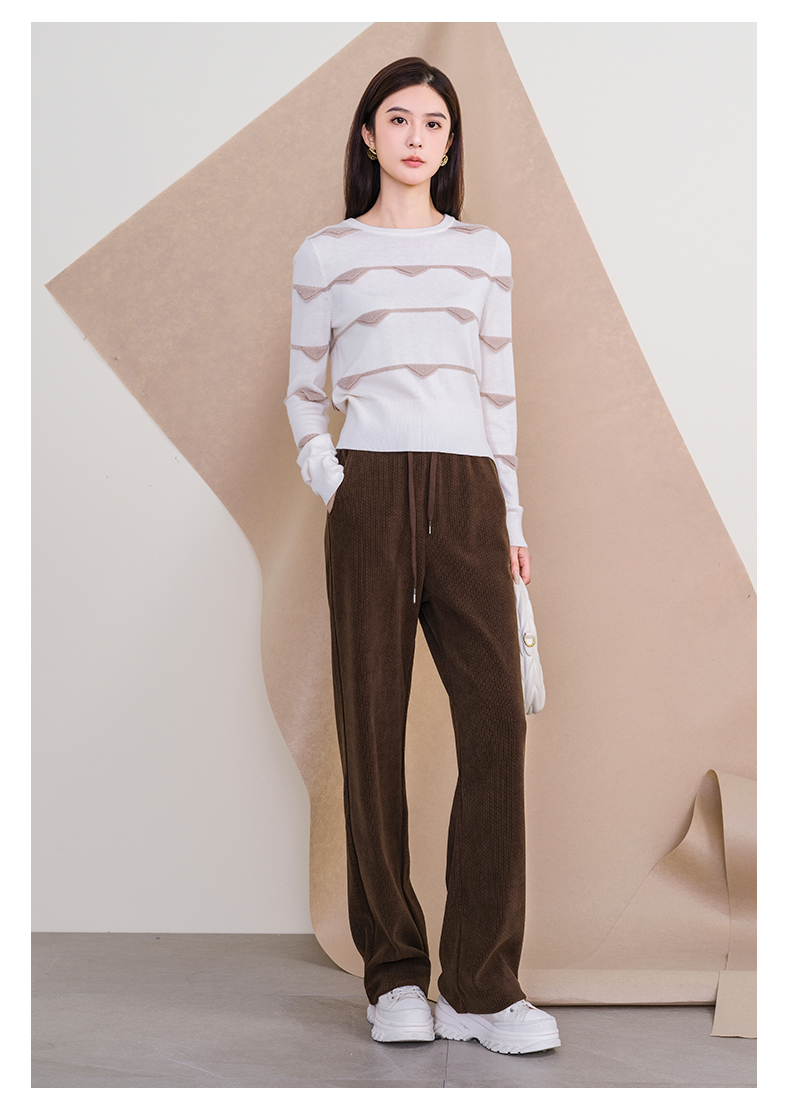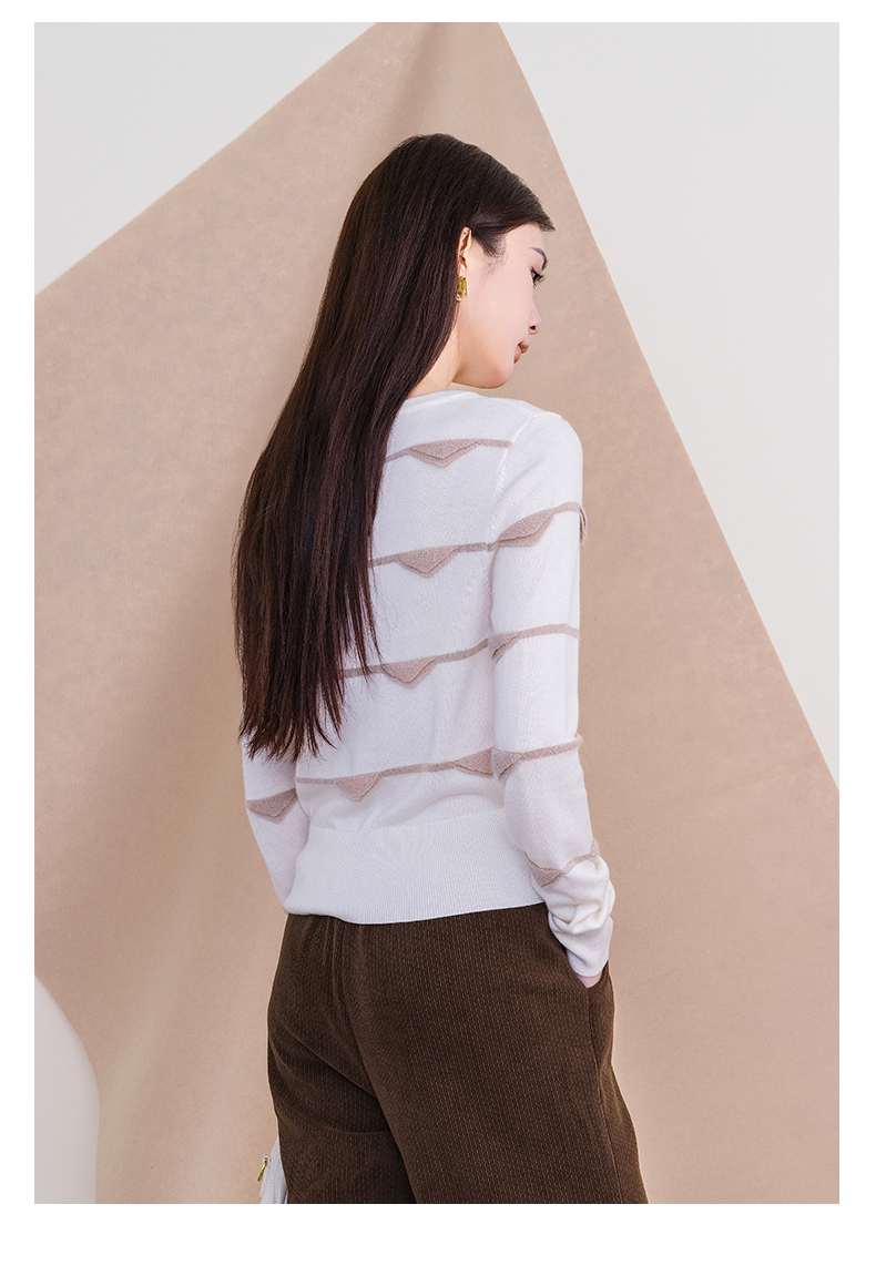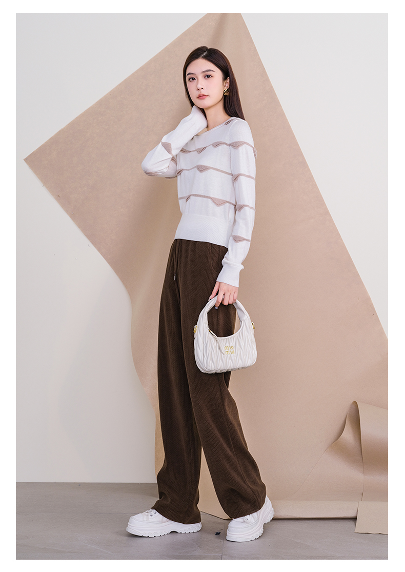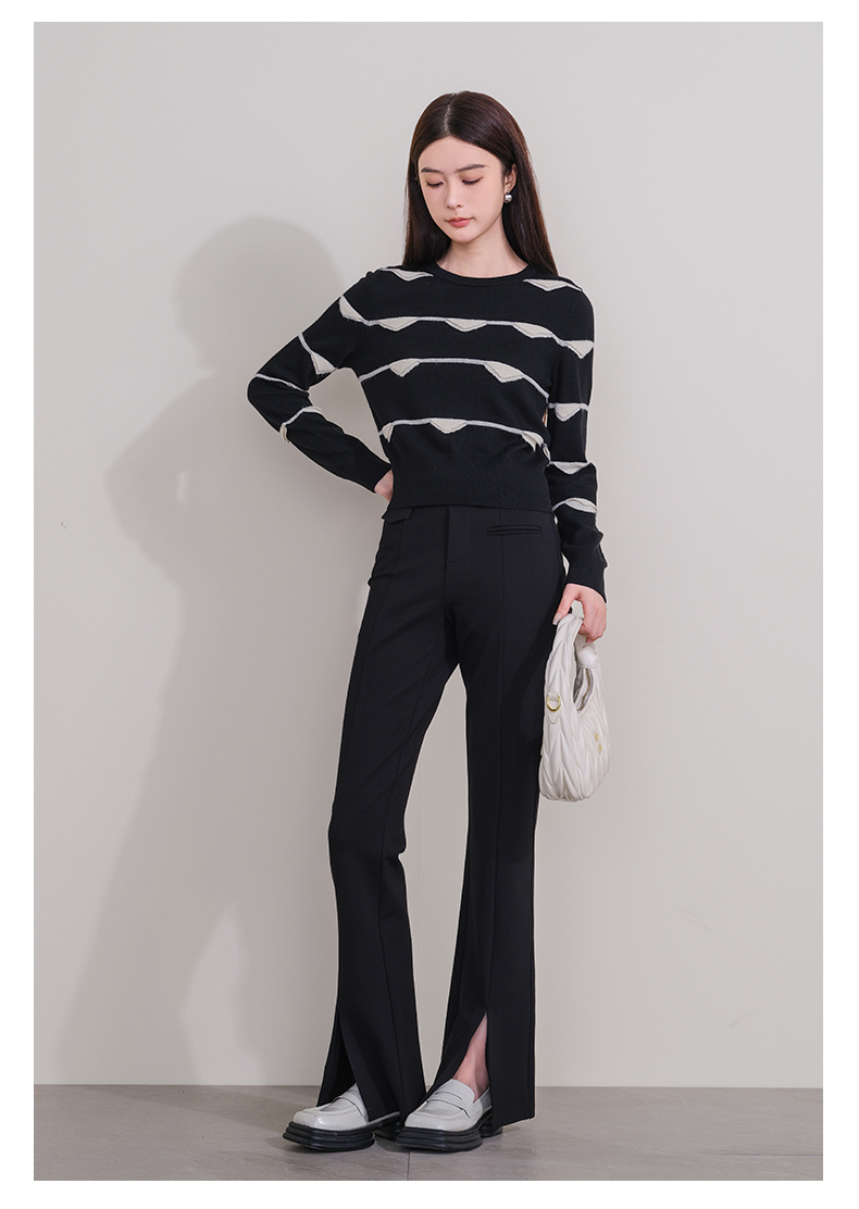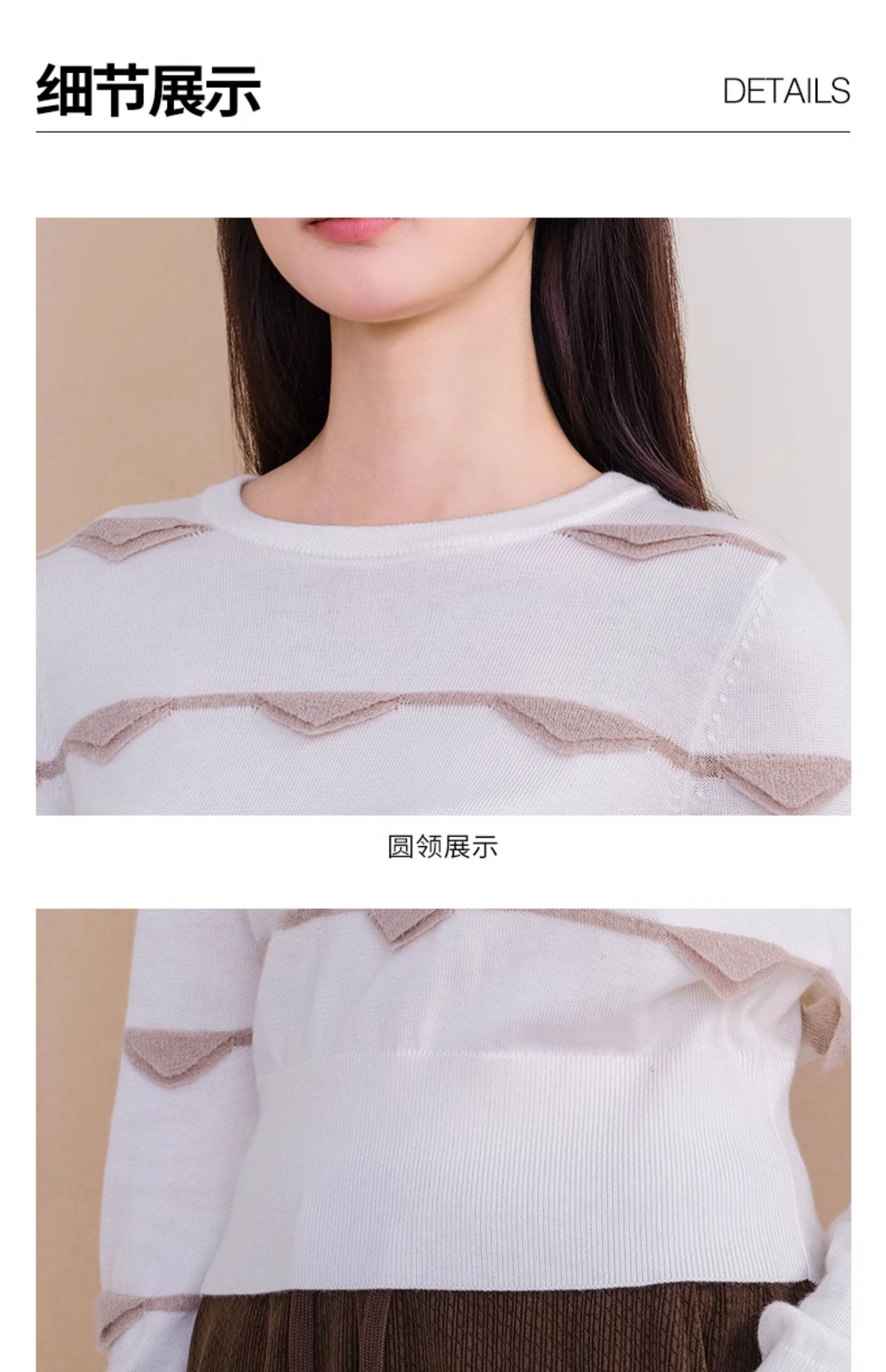 oldcolour欧珂新款圆领长袖不规则横纹毛织套头衫女P440508A1