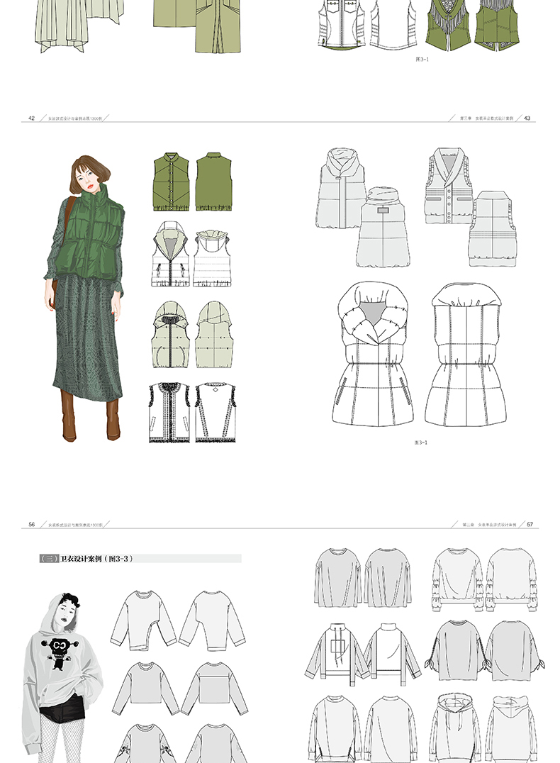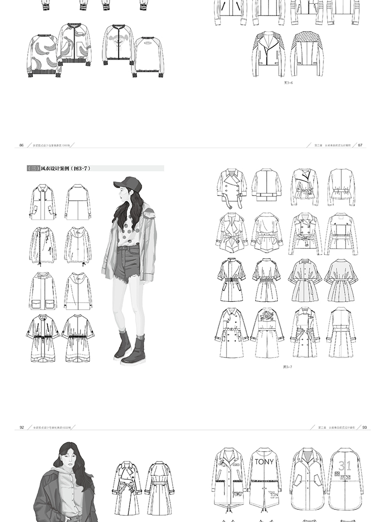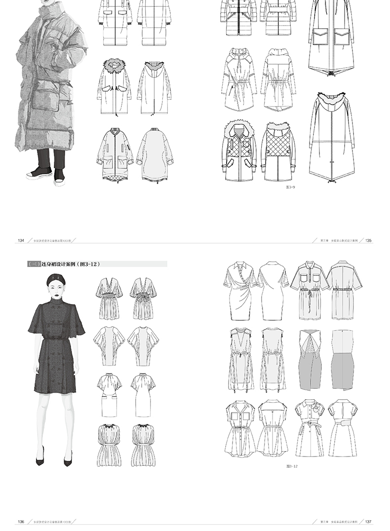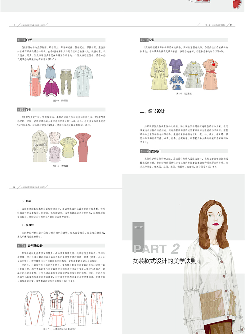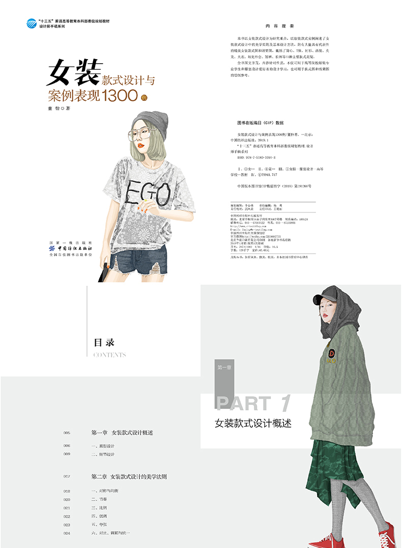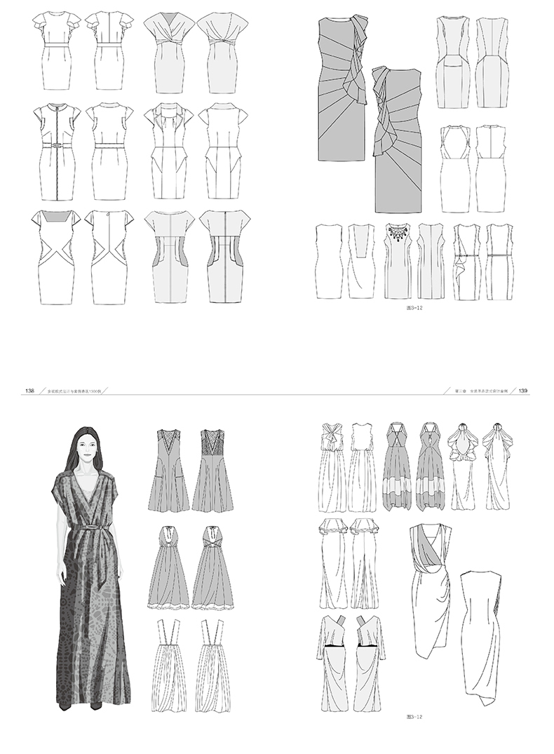《女装款式设计与案例表现1300例》一书图文并茂,内容针对性强,不仅可用于高等院校服装专业学生和服装设计爱好者的设计学习,也可用于款式图和效果图的绘制参考。
