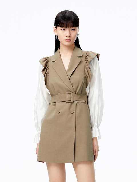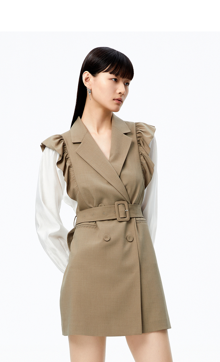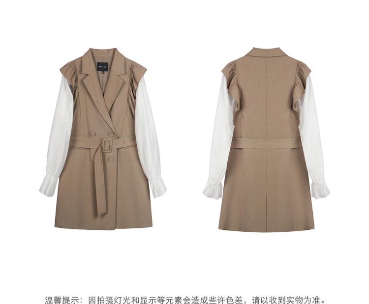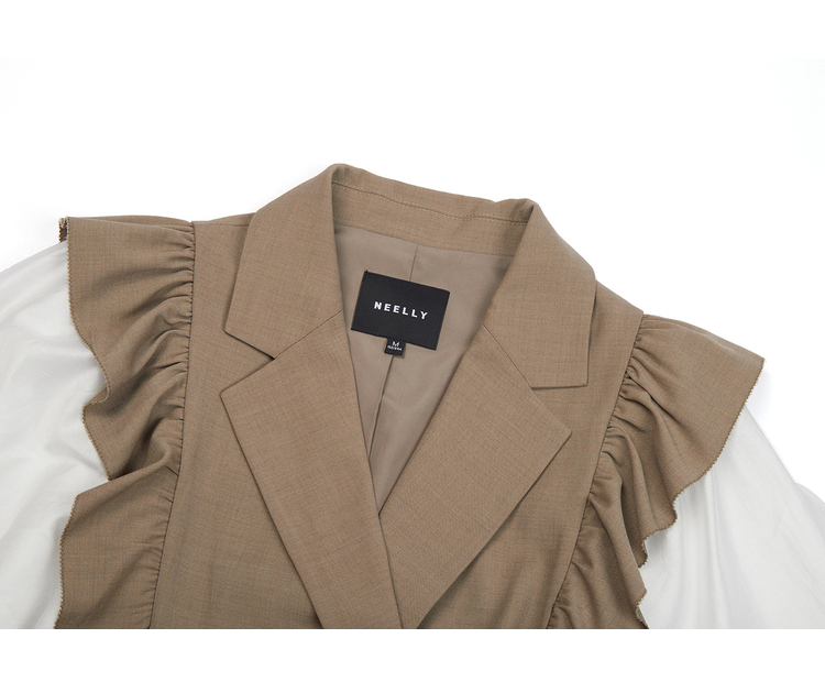 NEELLY纳俪商场同款连衣裙女2022秋季新品拼接袖西装领A字裙收腰N22082Y01095