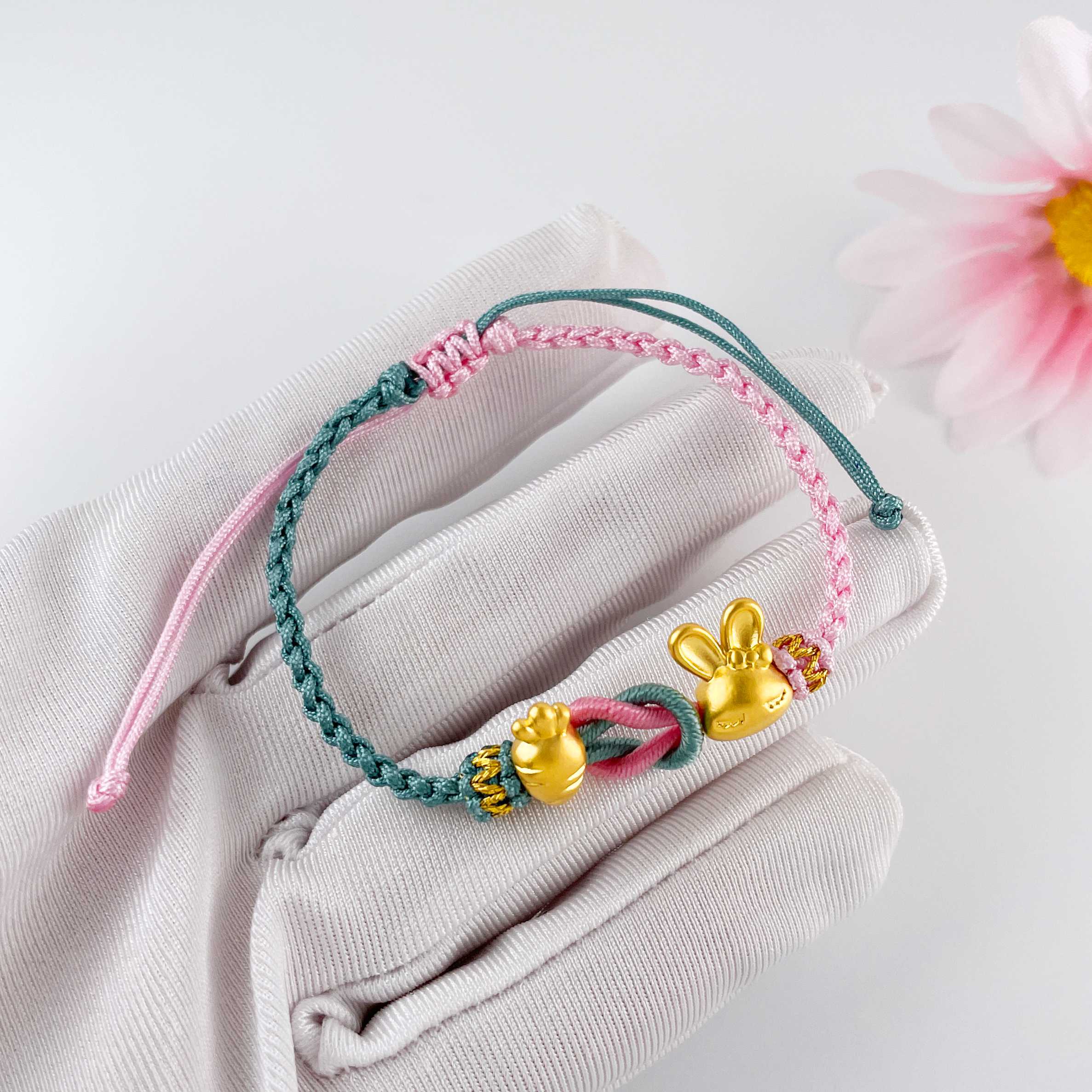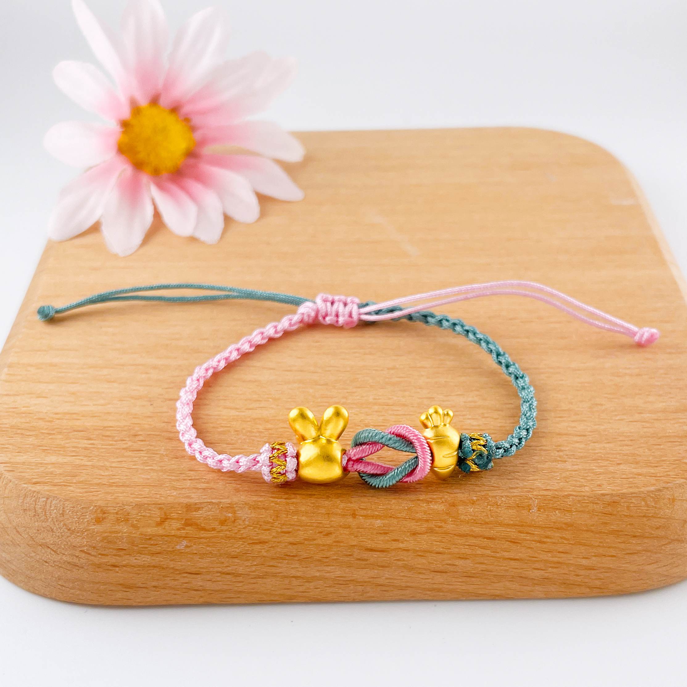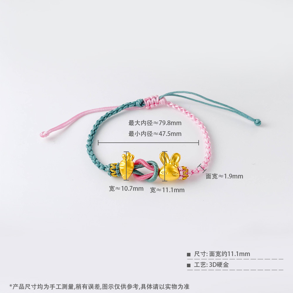 【限时7.5折】【定价黄金】足金 #生肖 无氰5D硬金兔年生肖手串兔子爱萝卜莫相离绳结调节彩绳手链成品手串(AA5DSC00520)【补手工费可以换新的绳子】预售产品下单后不退款不退货不换货不补差价