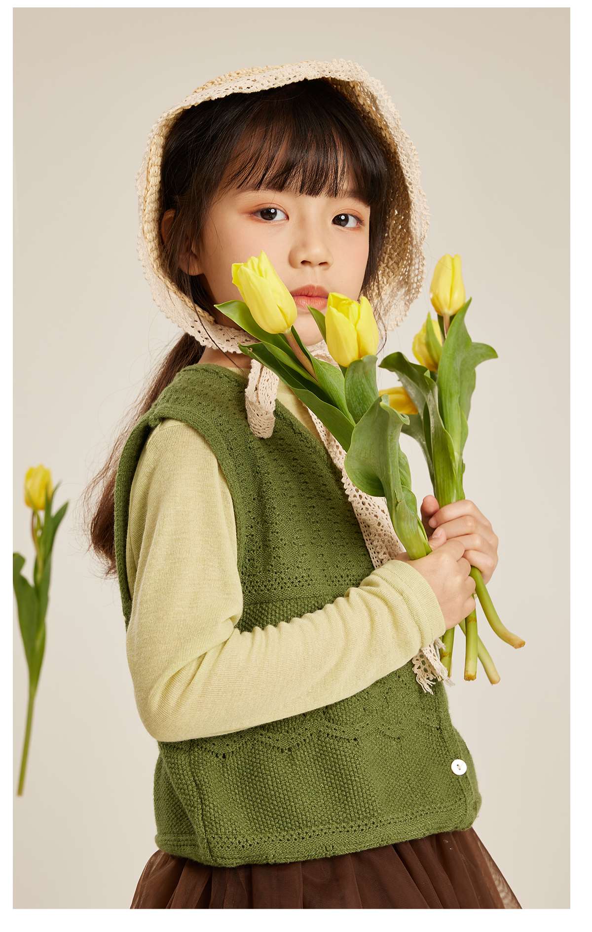 littletime女童打底衫加绒半高领2023秋冬新款儿童套头长袖针织衫