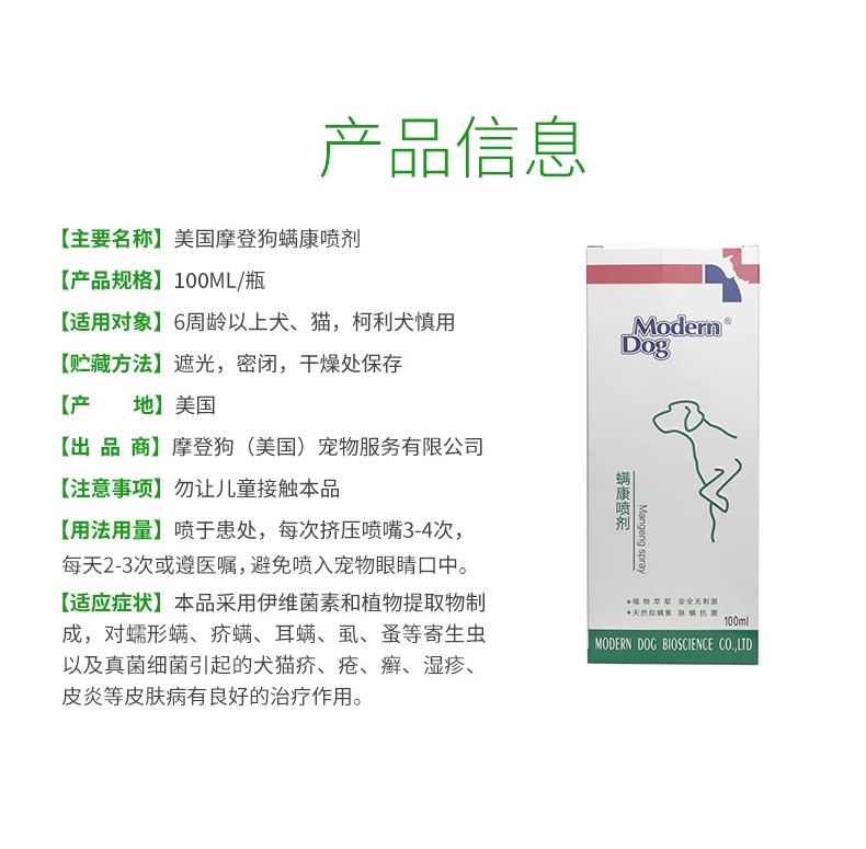 摩登狗,螨康喷剂犬猫螨虫清/疥螨/蠕形螨狗狗除螨虫皮肤病真菌克星