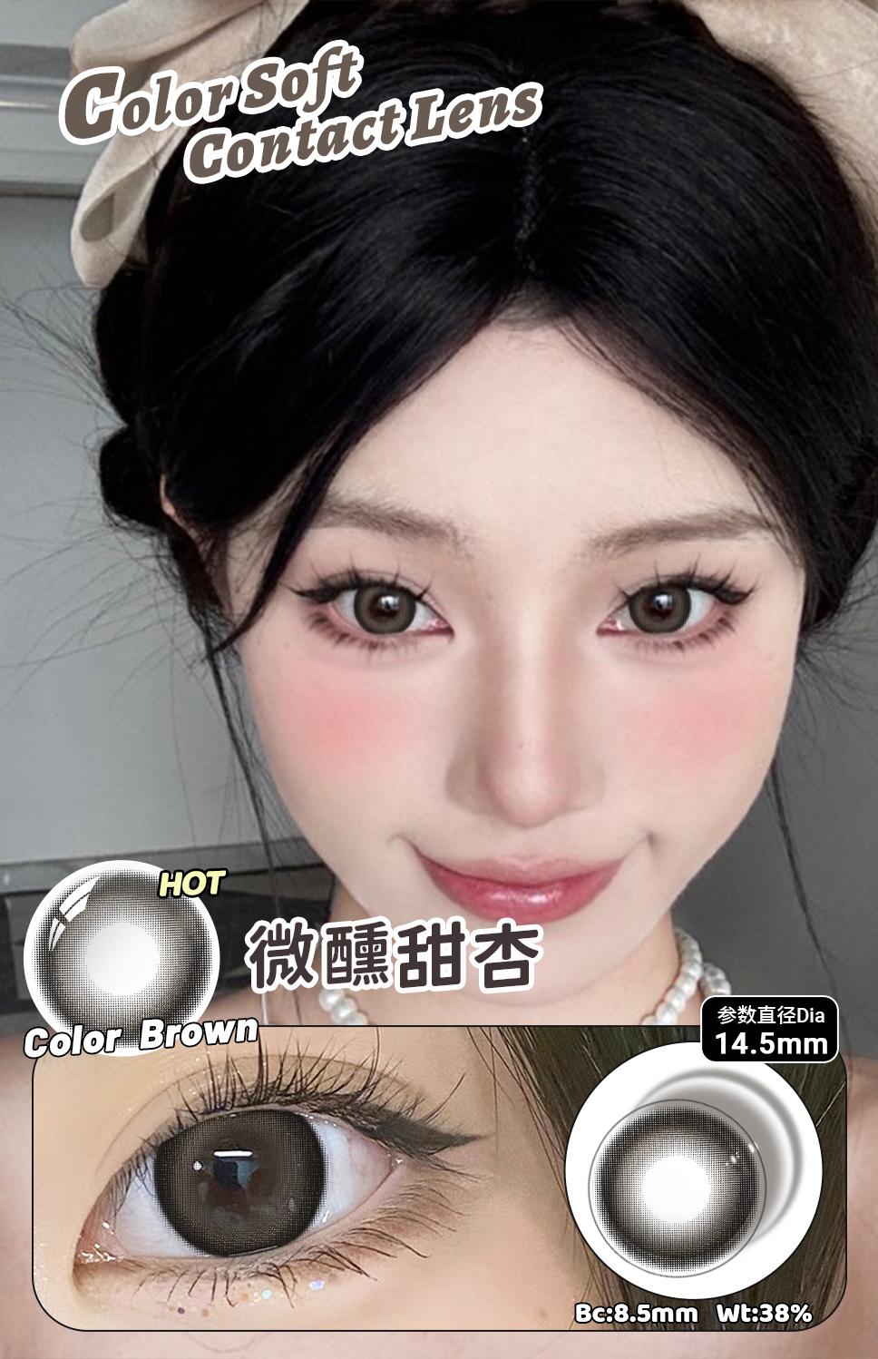 【新】(0~800度)奥德利黑糖黑~美瞳彩色近视隐形眼镜年抛