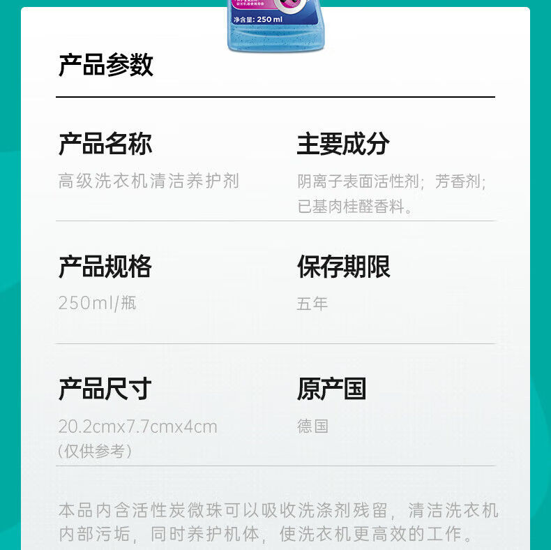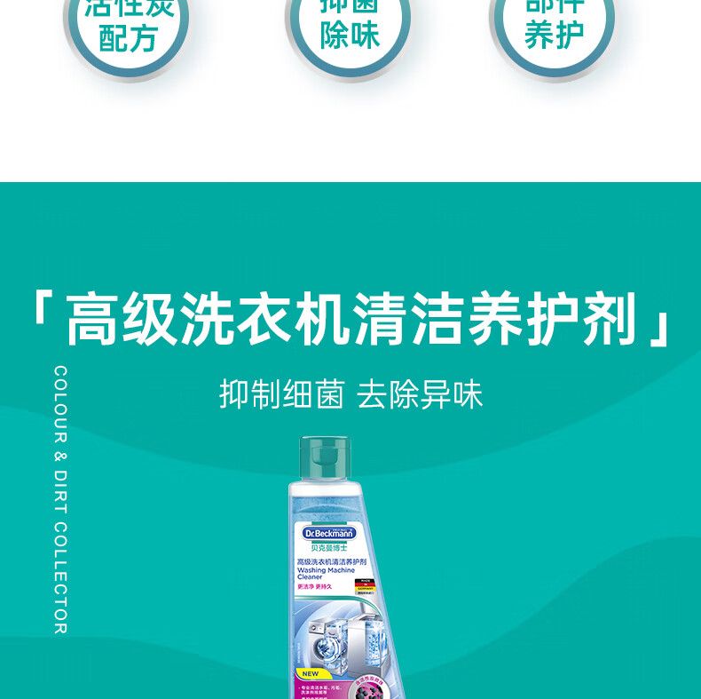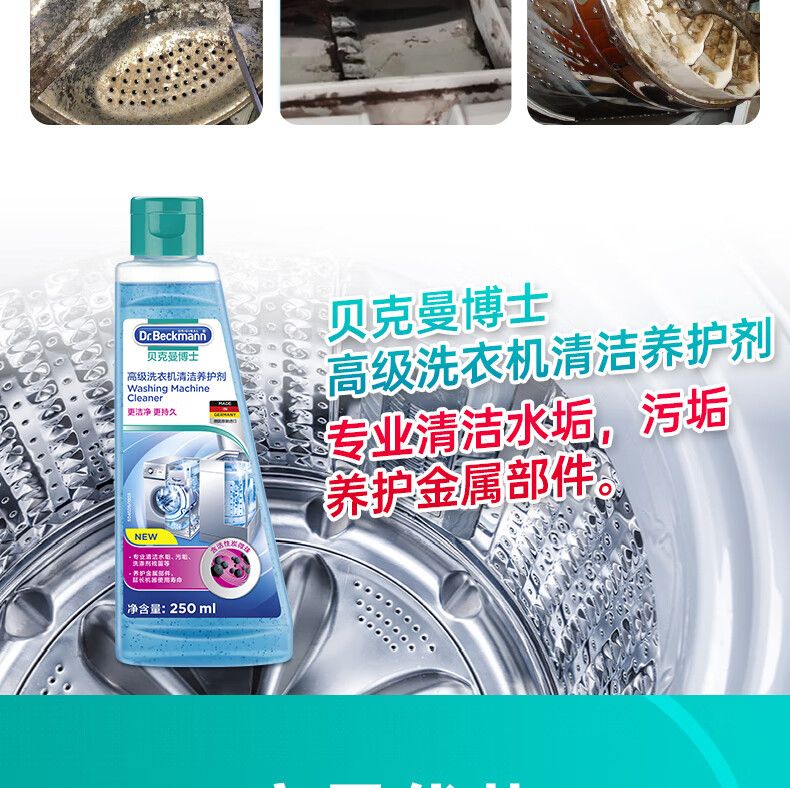 贝克曼博士高级洗衣机清洁养护剂250ml/101694 全自动滚筒洗衣机除垢剂有效抑菌