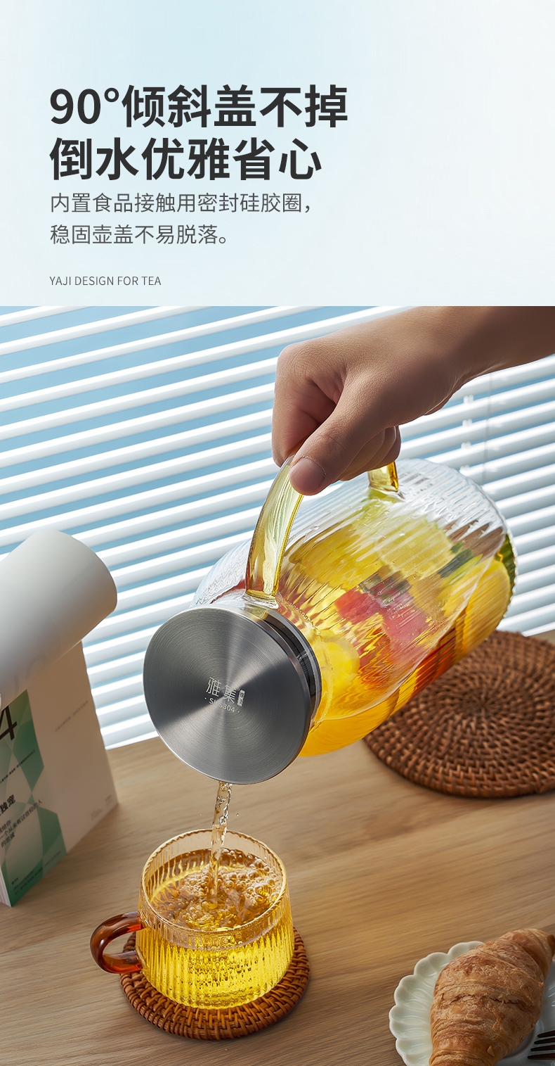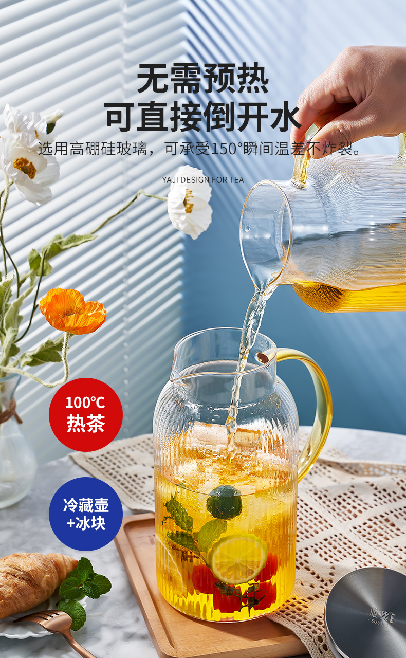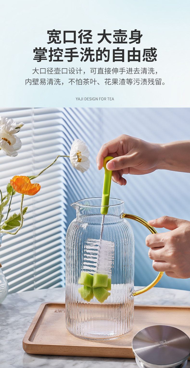 雅集玻璃壶棱影冷水壶2000ml(琥珀把)送杯刷