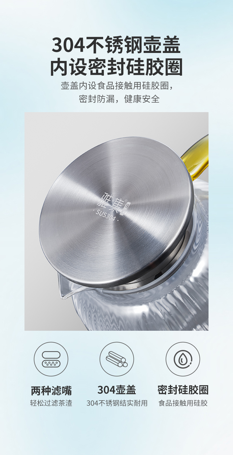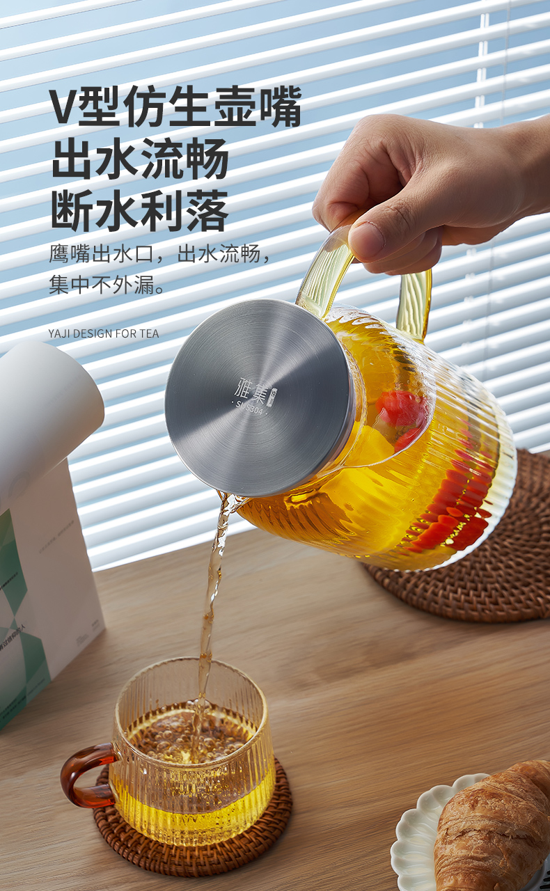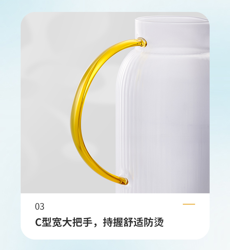 雅集玻璃壶棱影冷水壶2000ml(琥珀把)送杯刷