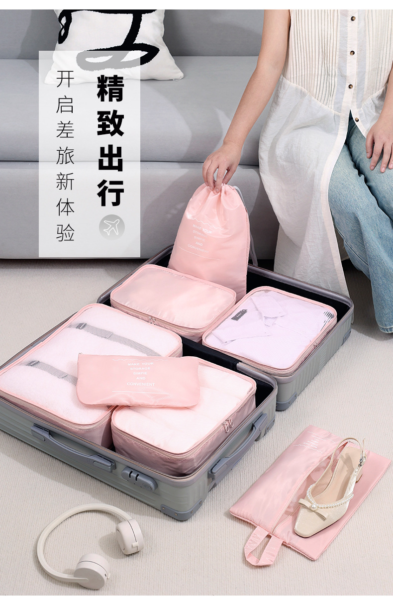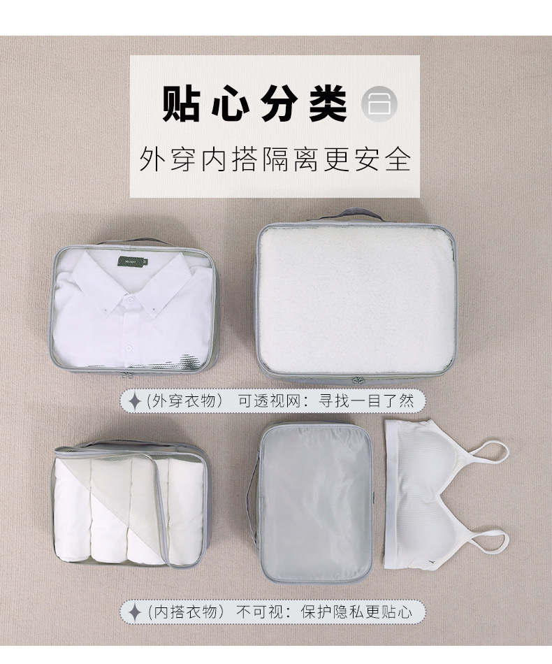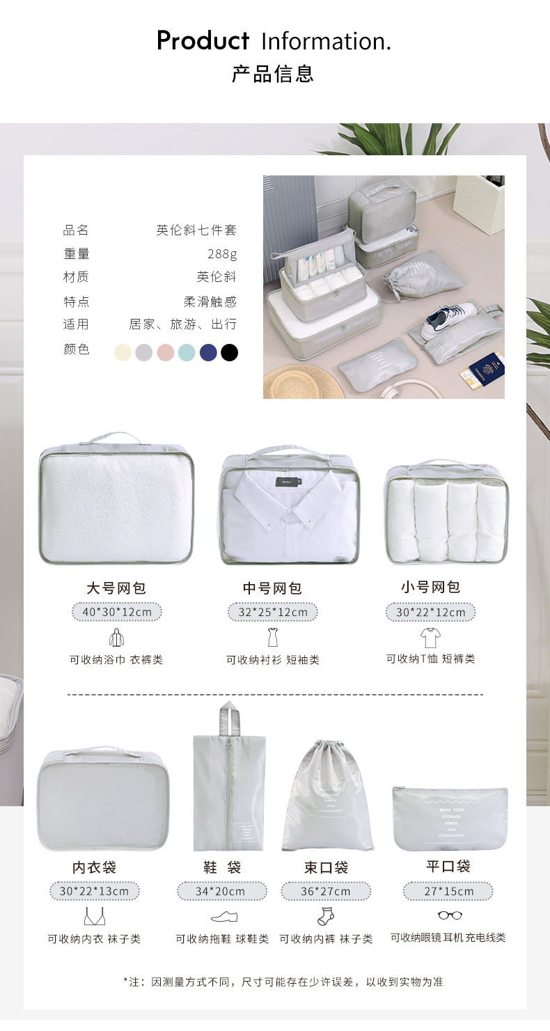 【旅行收纳套装!精致出行】蓓恋英伦斜旅行收纳袋,出差衣服七件收纳包,精美拉链 网格设计 轻巧携带 衣服收纳分类的必备好物