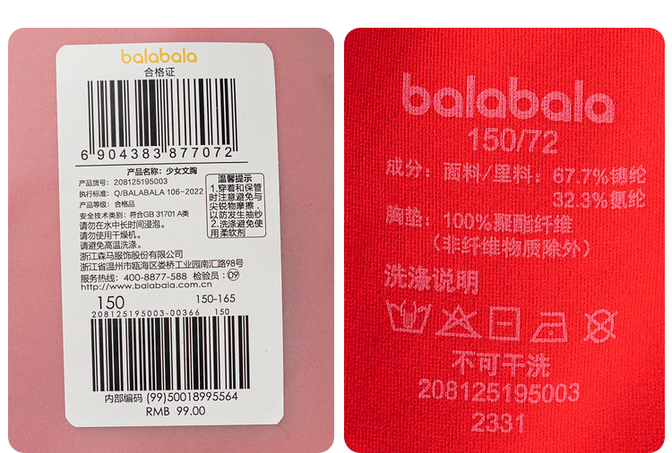 巴拉巴拉女童内衣发育期儿童小背心随心裁防走光文胸红色本命蛇年
