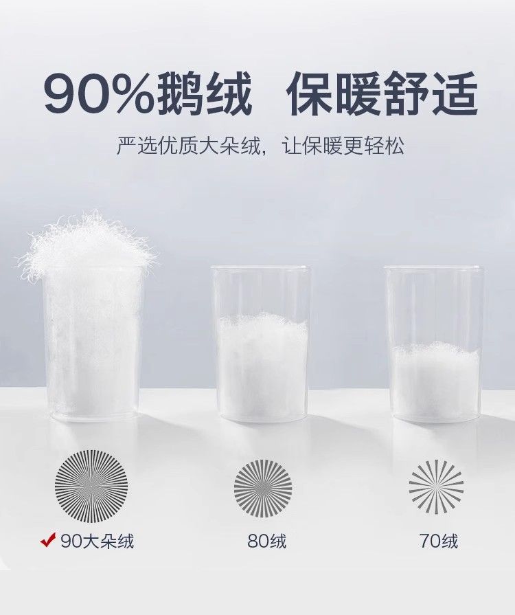 (服饰必填)材质成分:聚酯纤维70.2%棉25.5%氨纶4.3%,里层填充 90白鹅绒