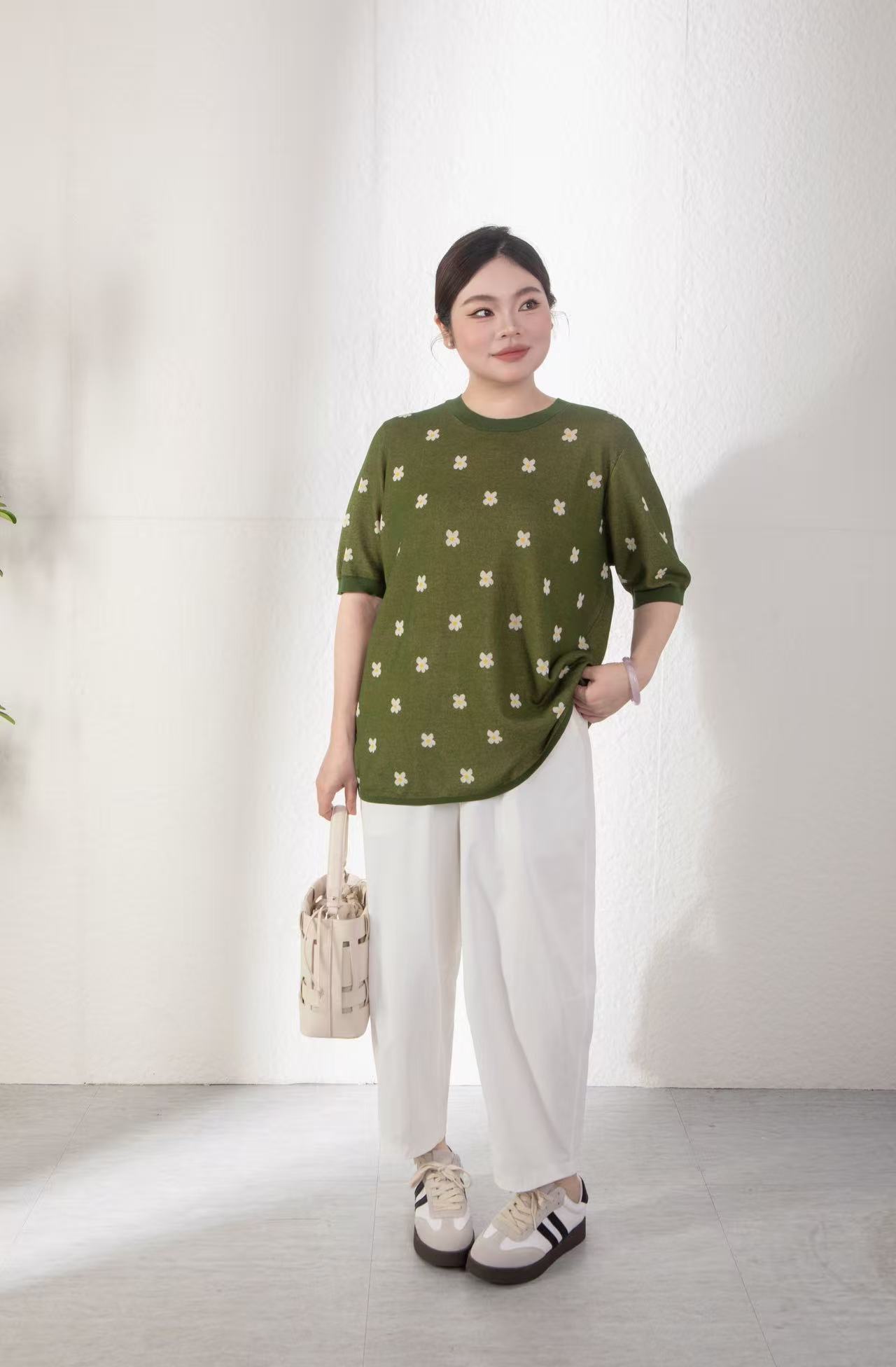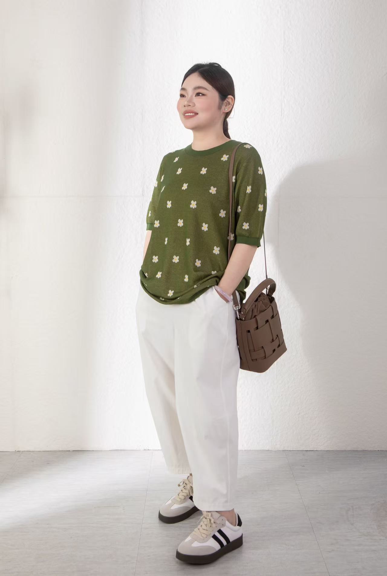 48小时发货【浮光针织衫】🌱穿出清爽感!法式提花点缀,薄款针织,宽松版型,舒适透气,松弛简约风,套头针织衫
