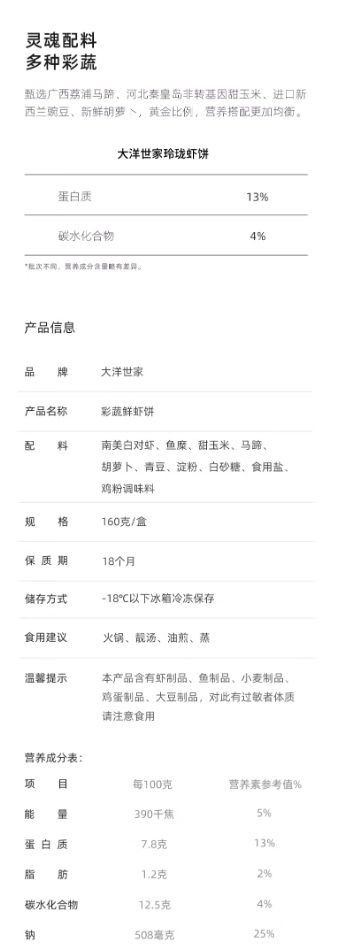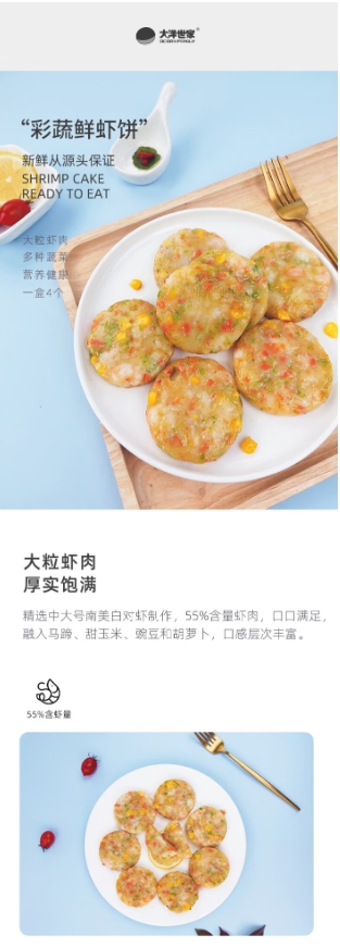 大洋世家果蔬鲜虾饼160g/袋方便营养蔬菜虾排早餐