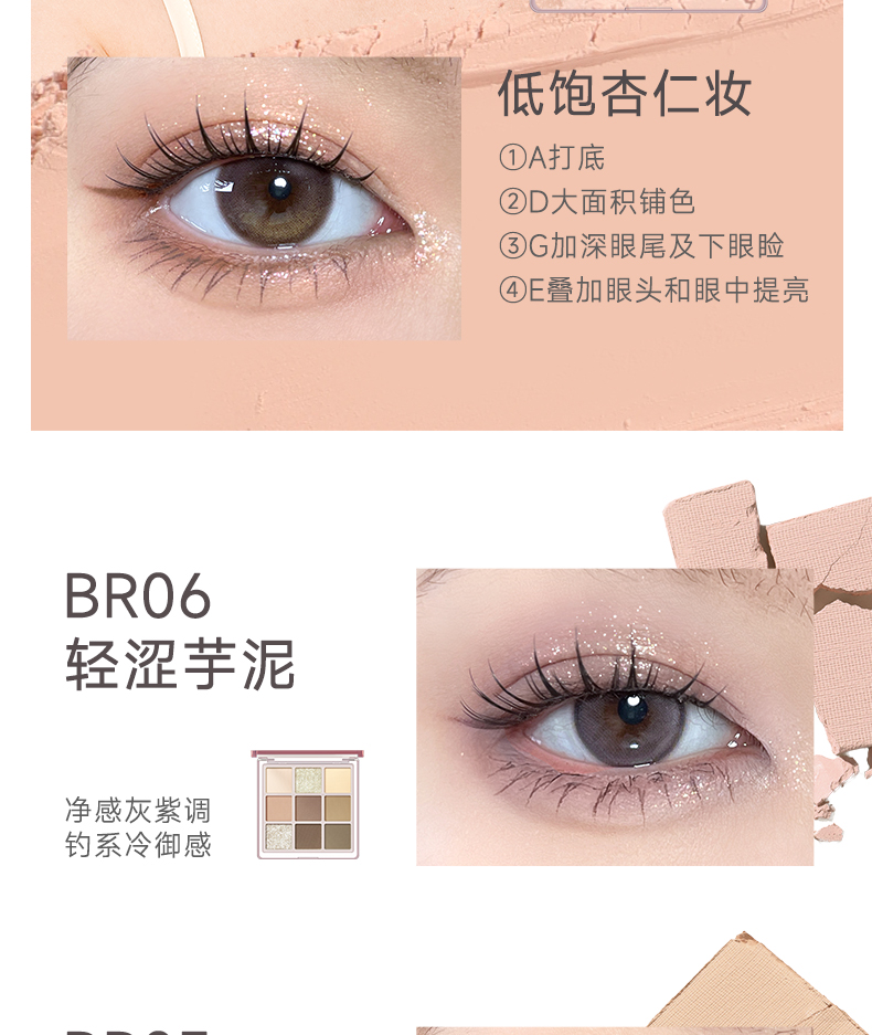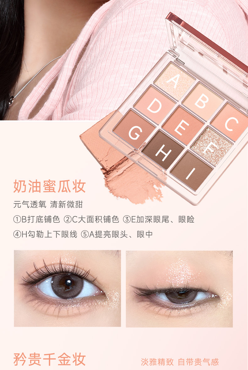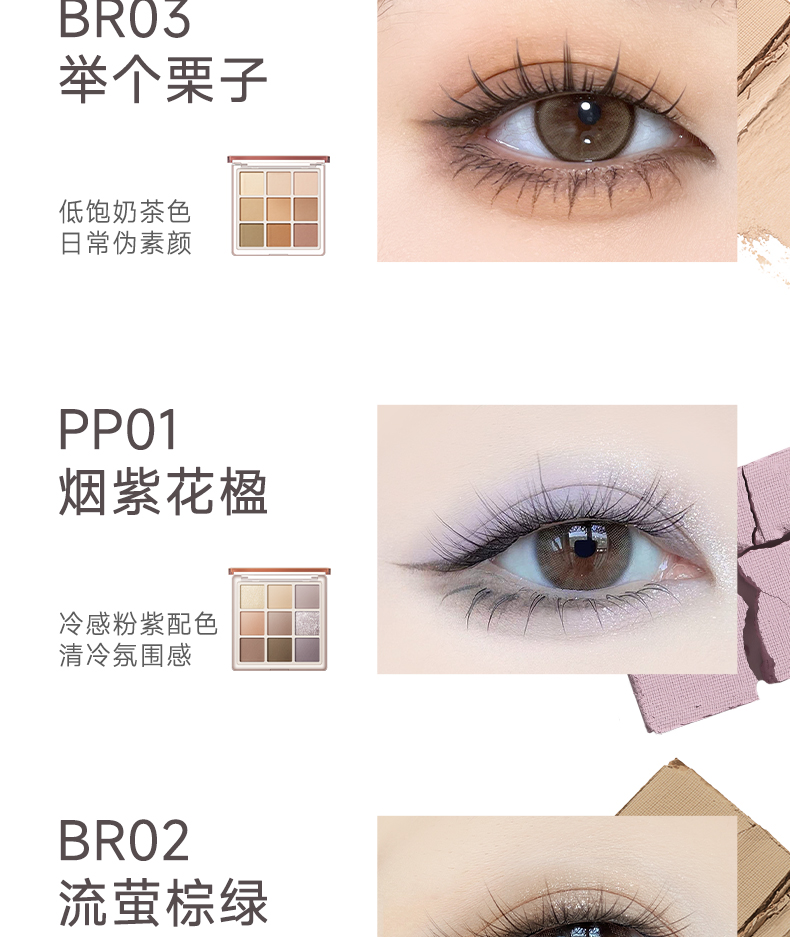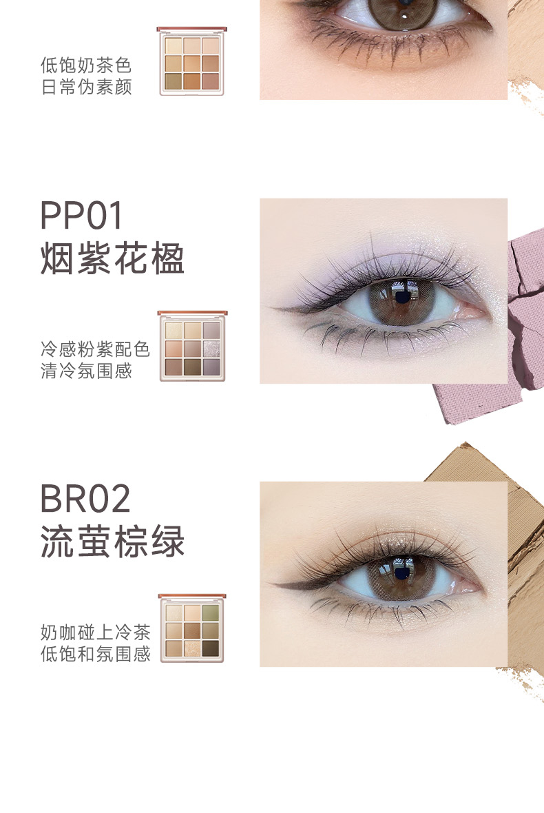 【热卖爆款】菲鹿儿柔彩九色眼影盘哑光大地色珠光细闪粉亮片新手日常妆